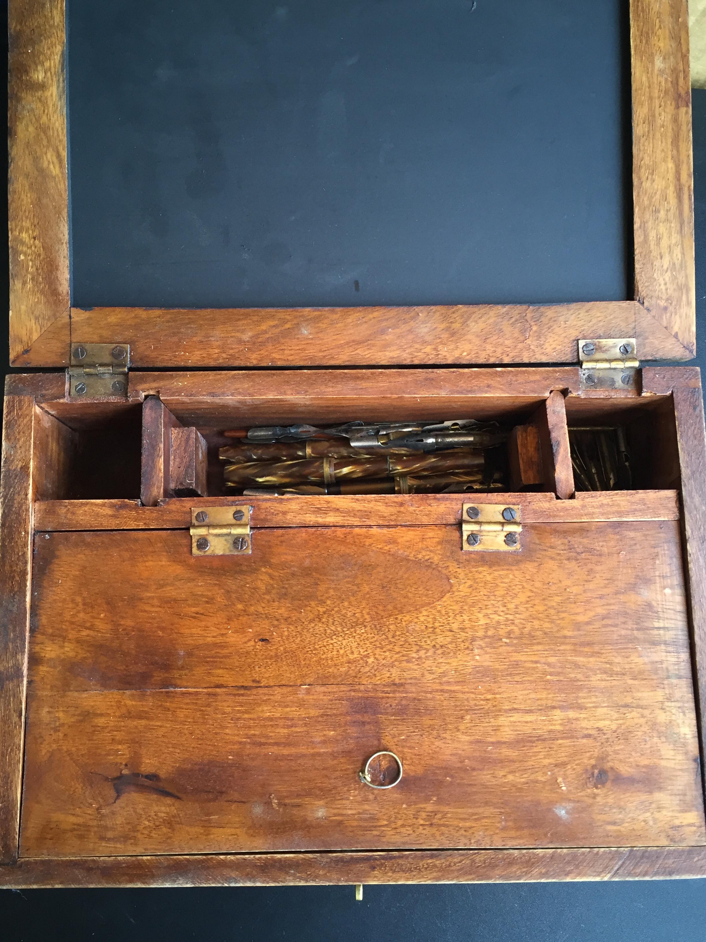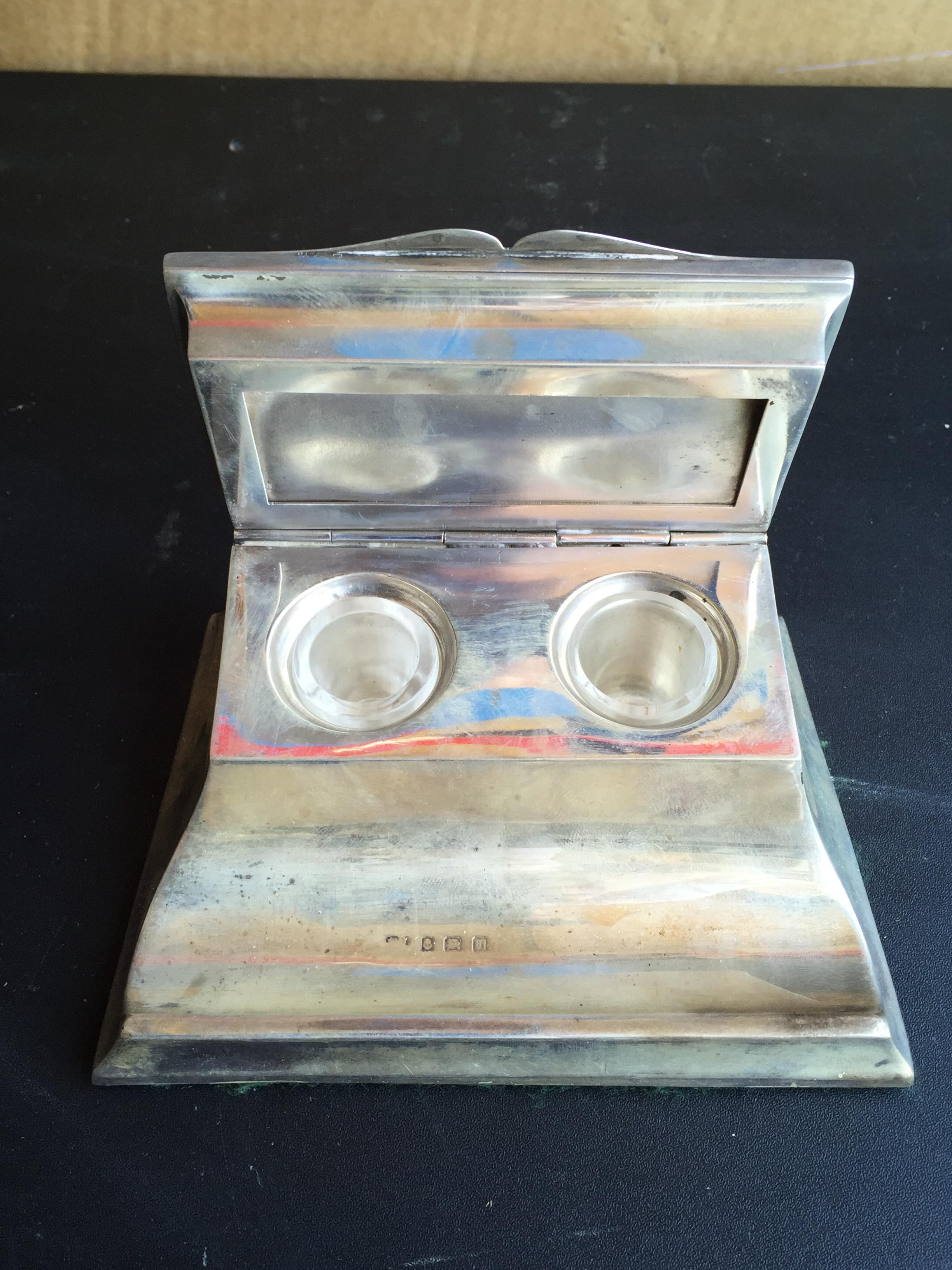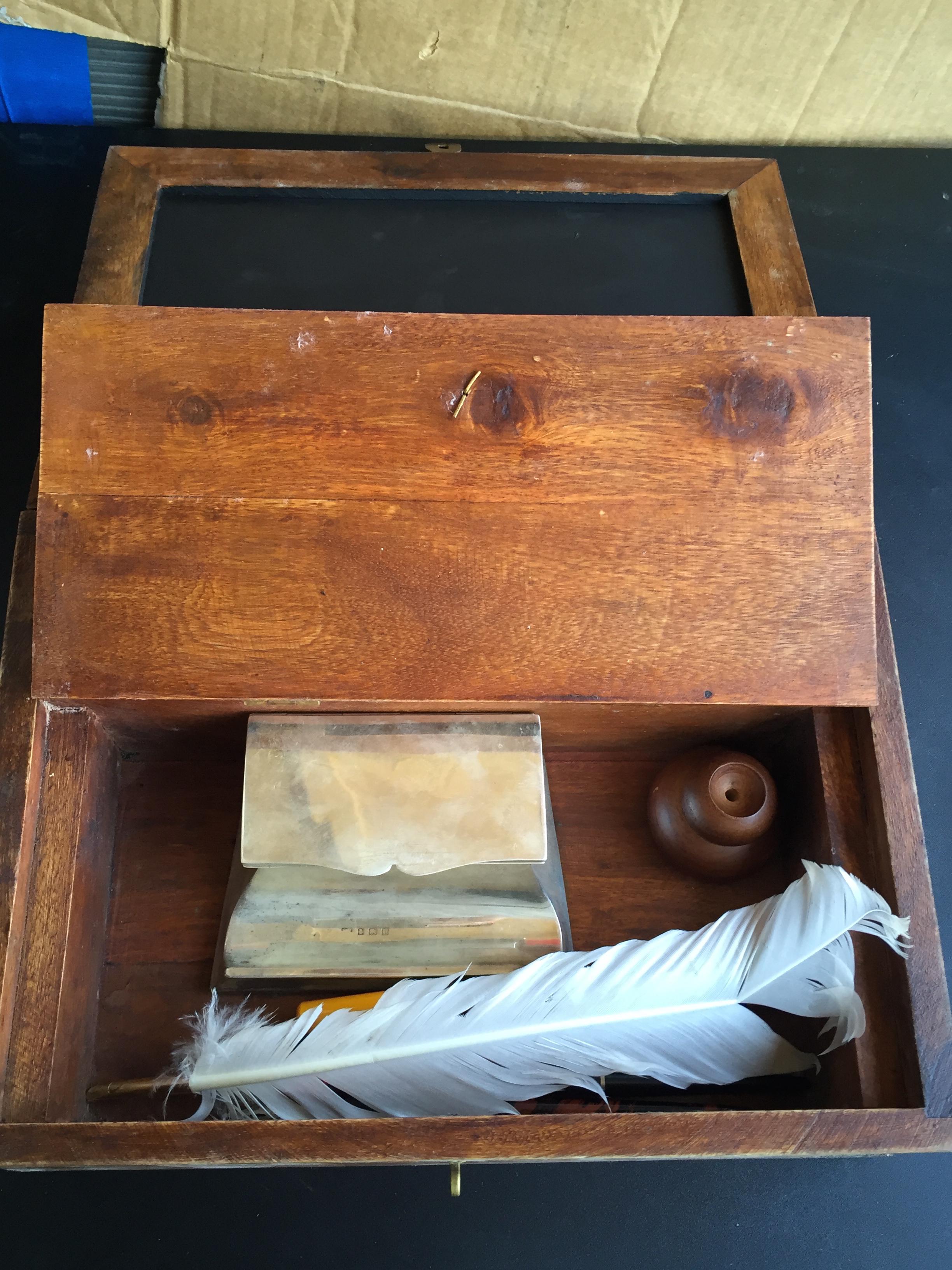Mary's Finds Antique Fountain Pen Box Set with pens and hallmarked inkwell.