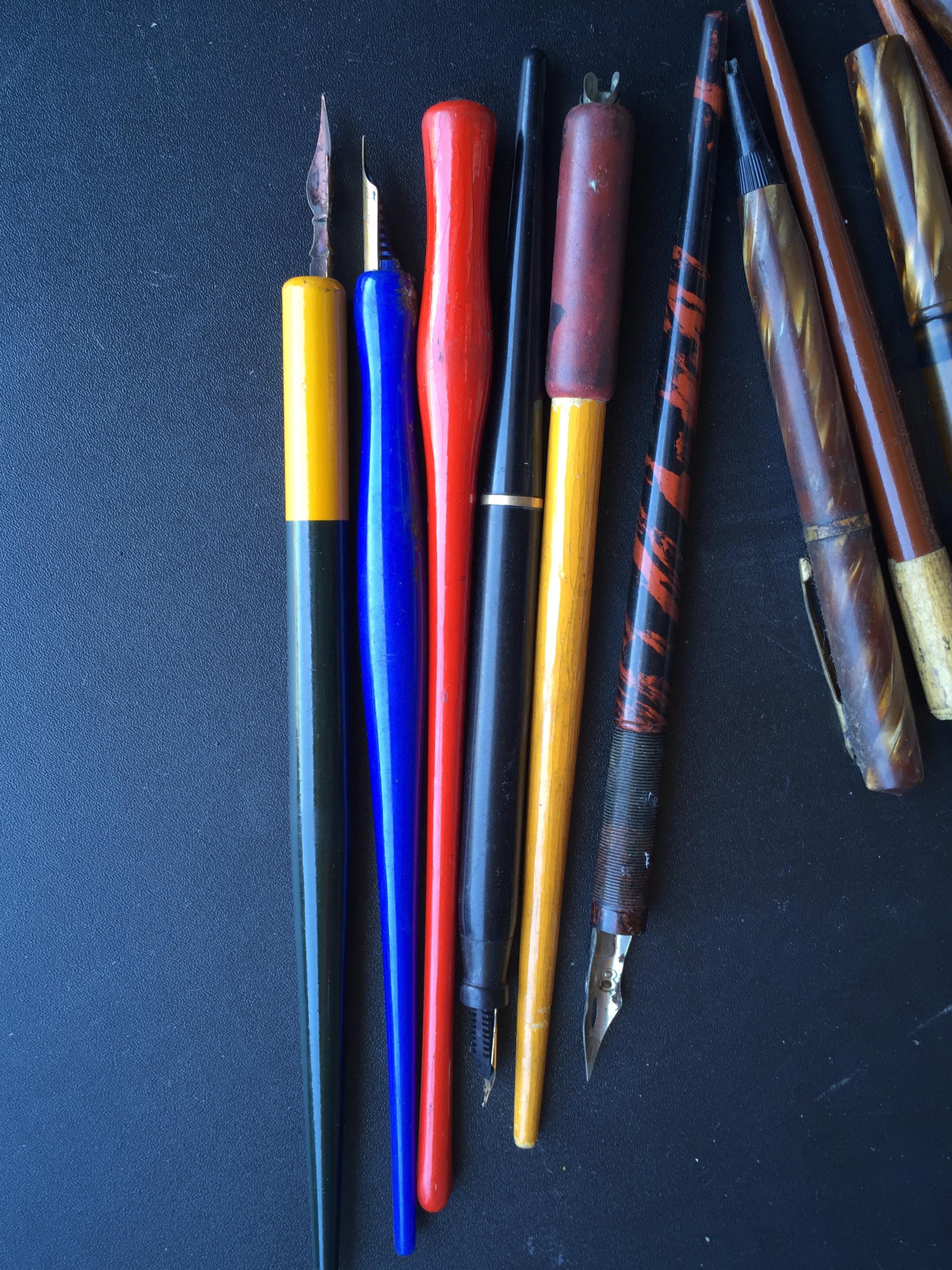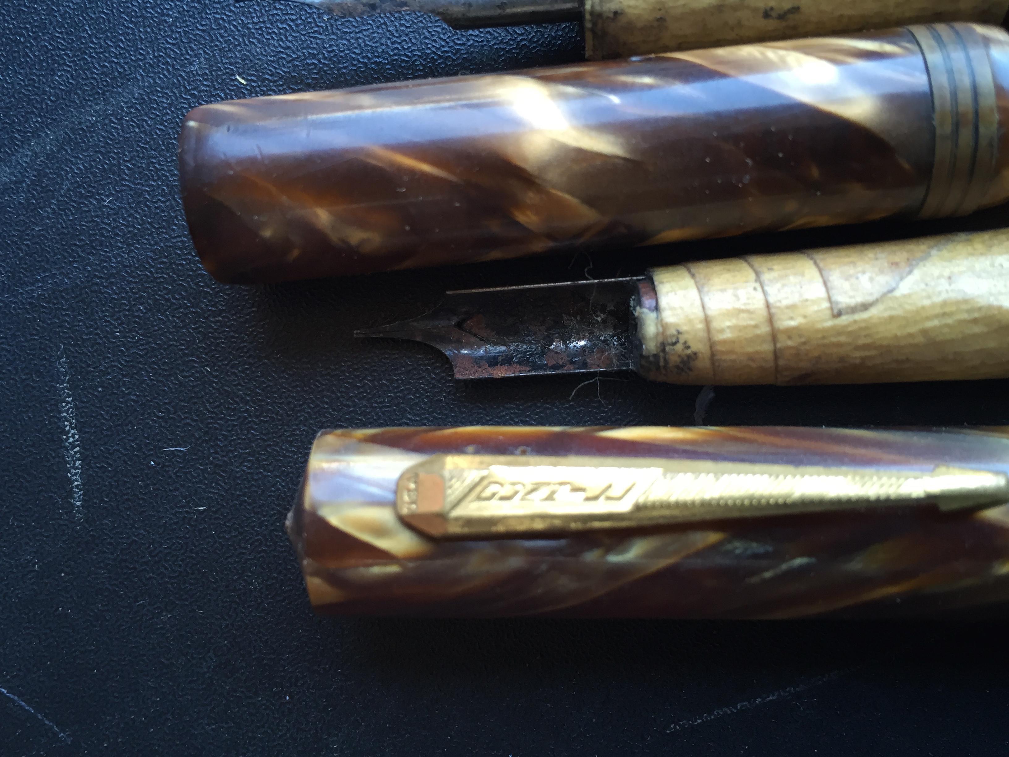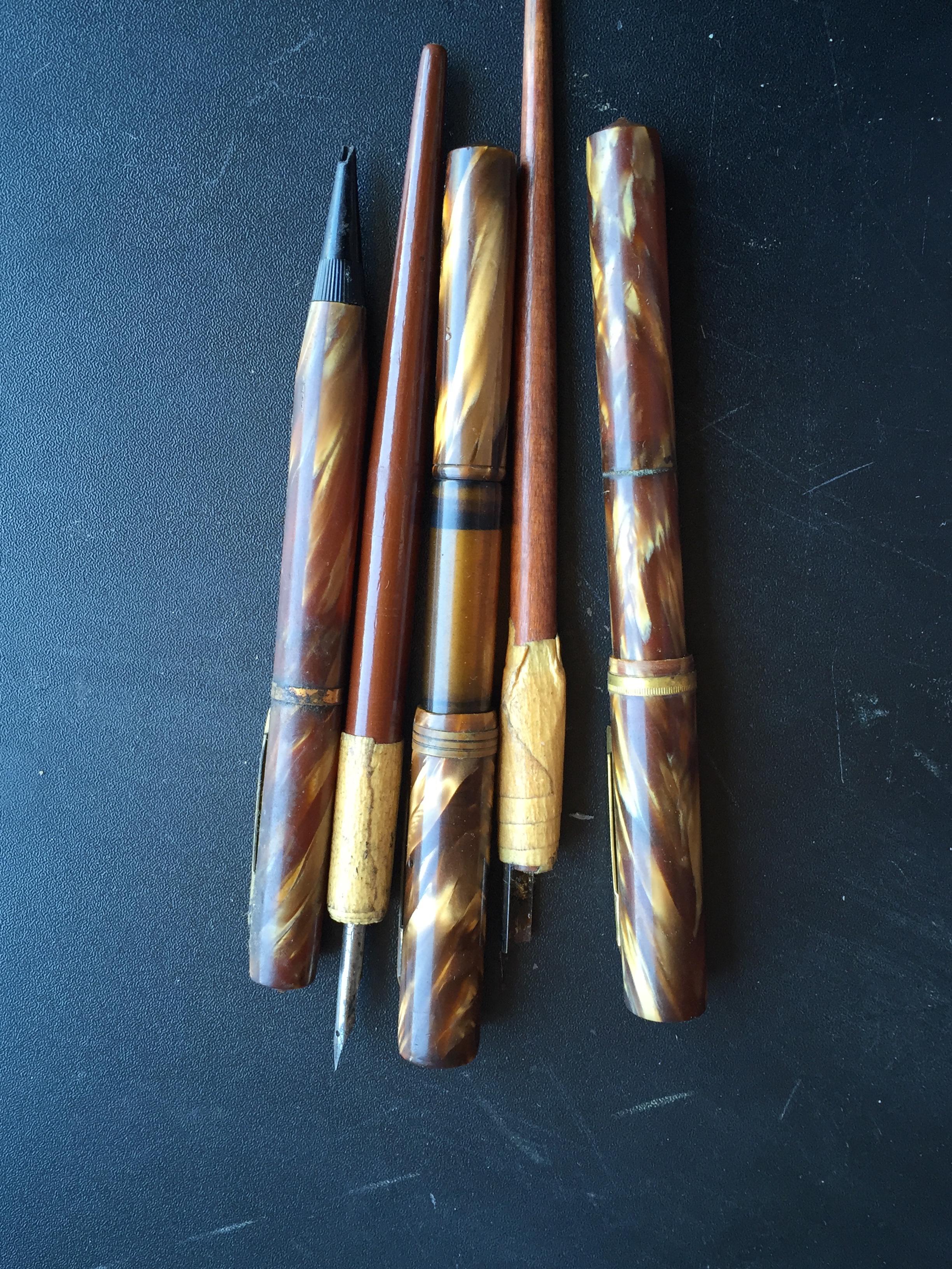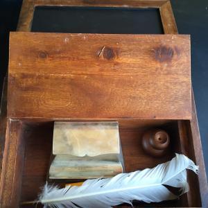 Mary's Finds Antique Fountain Pen Box Set with pens and hallmarked inkwell.