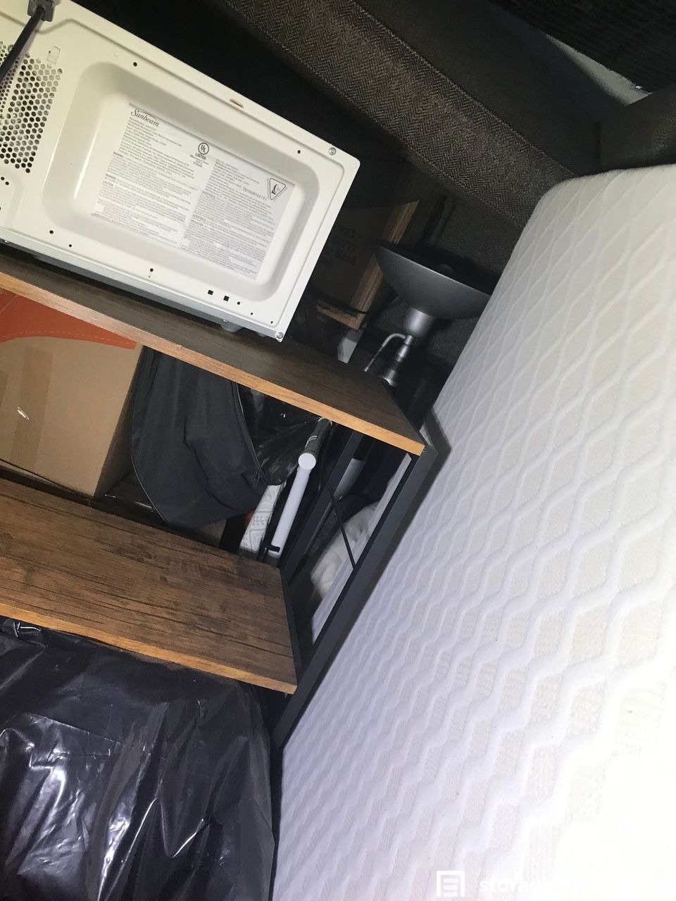 microwave, floor lamp, office chiars, computer desk, mattress, box spring, art