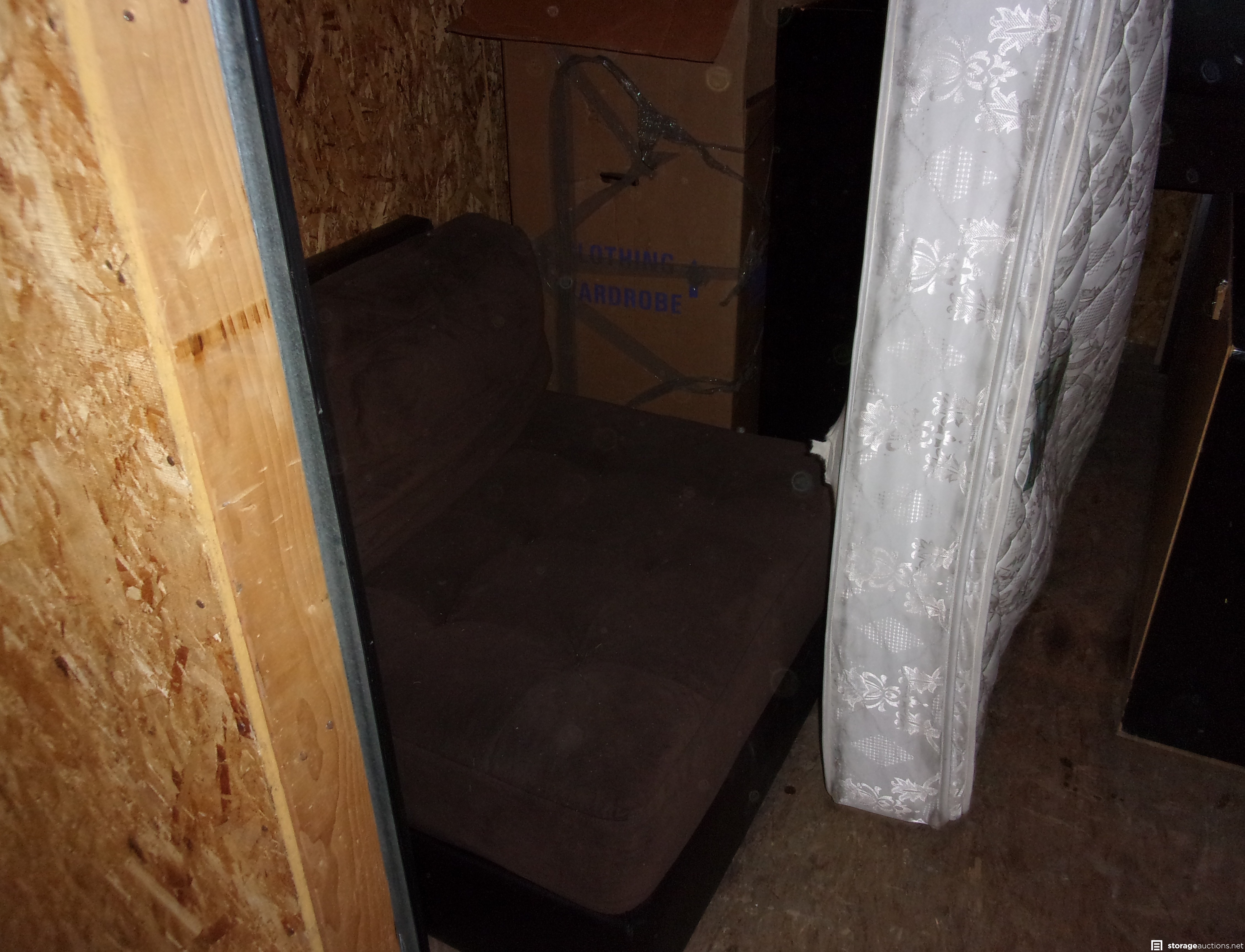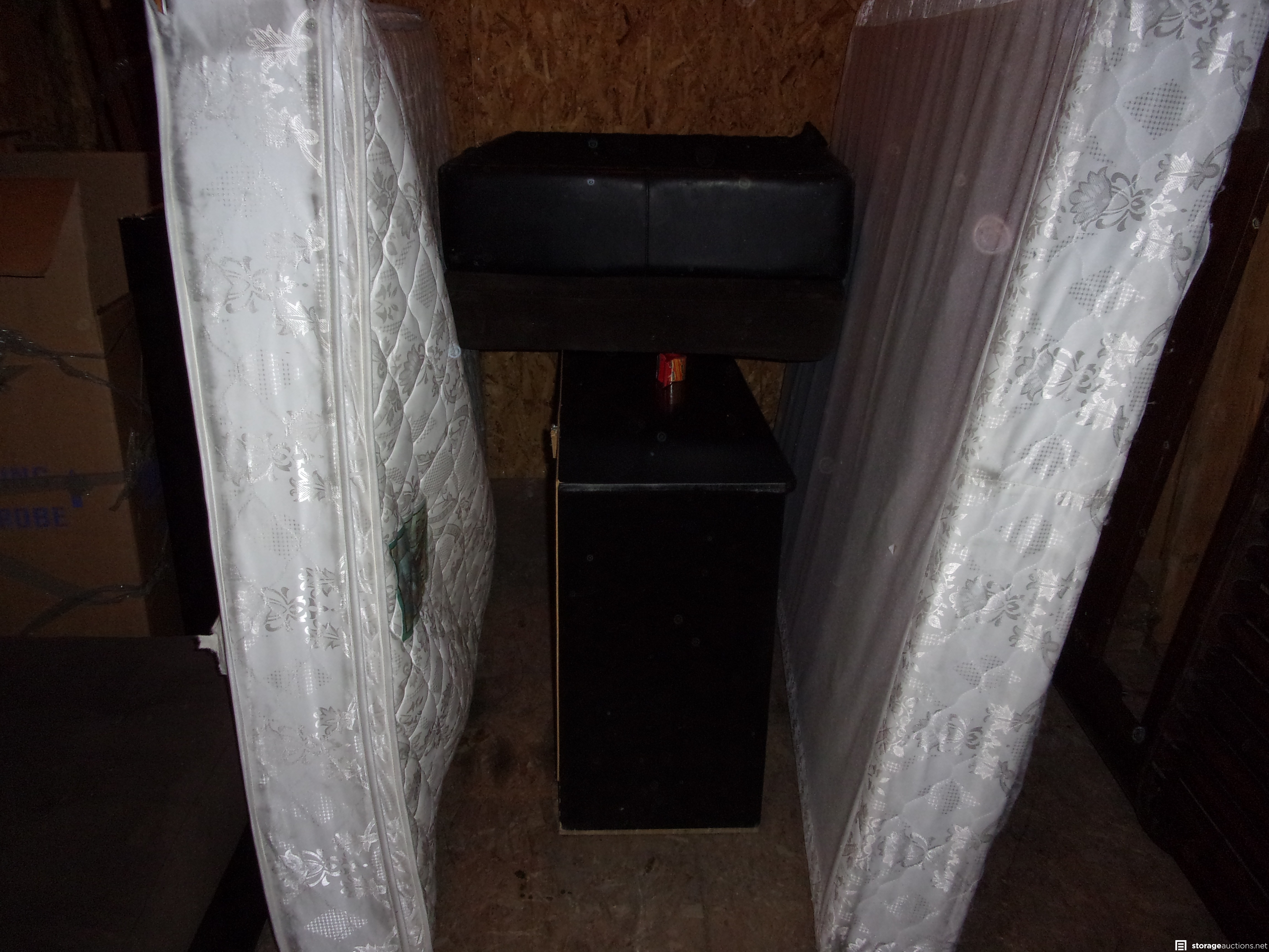 Unit appears to contacint Boxes, furniture, mattress