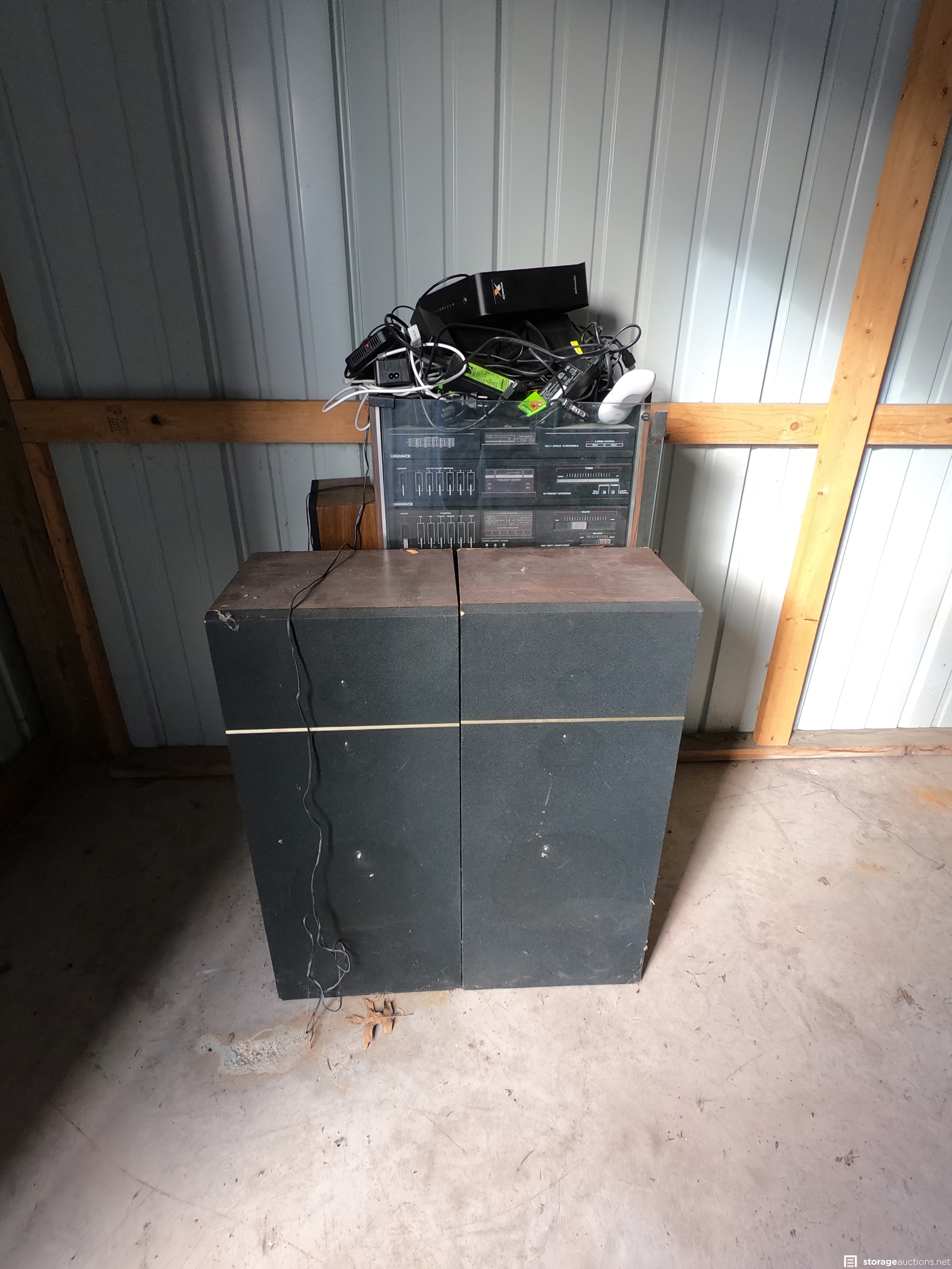 stereo, speakers, TV stand