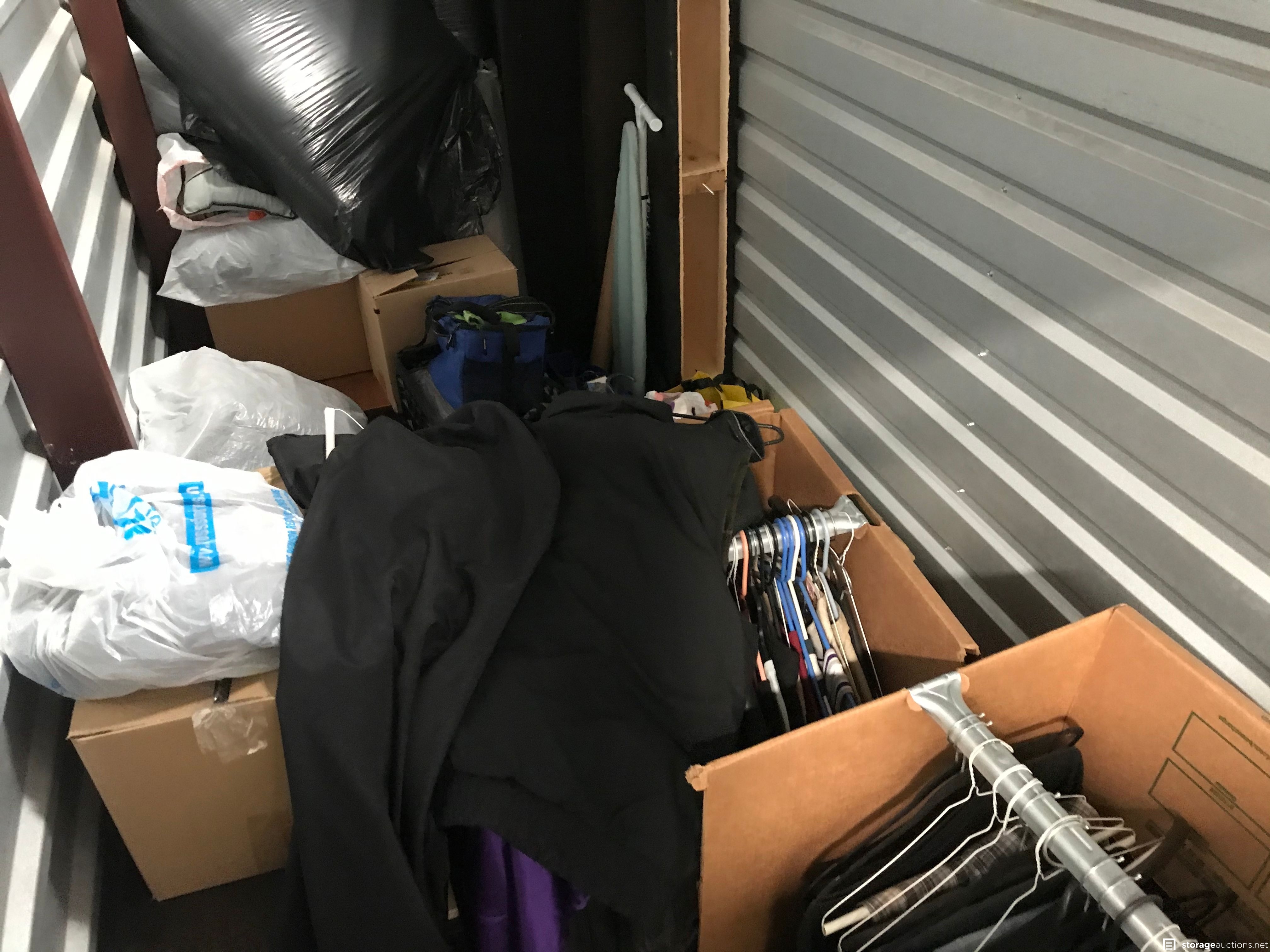 Unit appears to contain clothing and kisses. Unit appears to contain clothing and cases. Household and unknown items