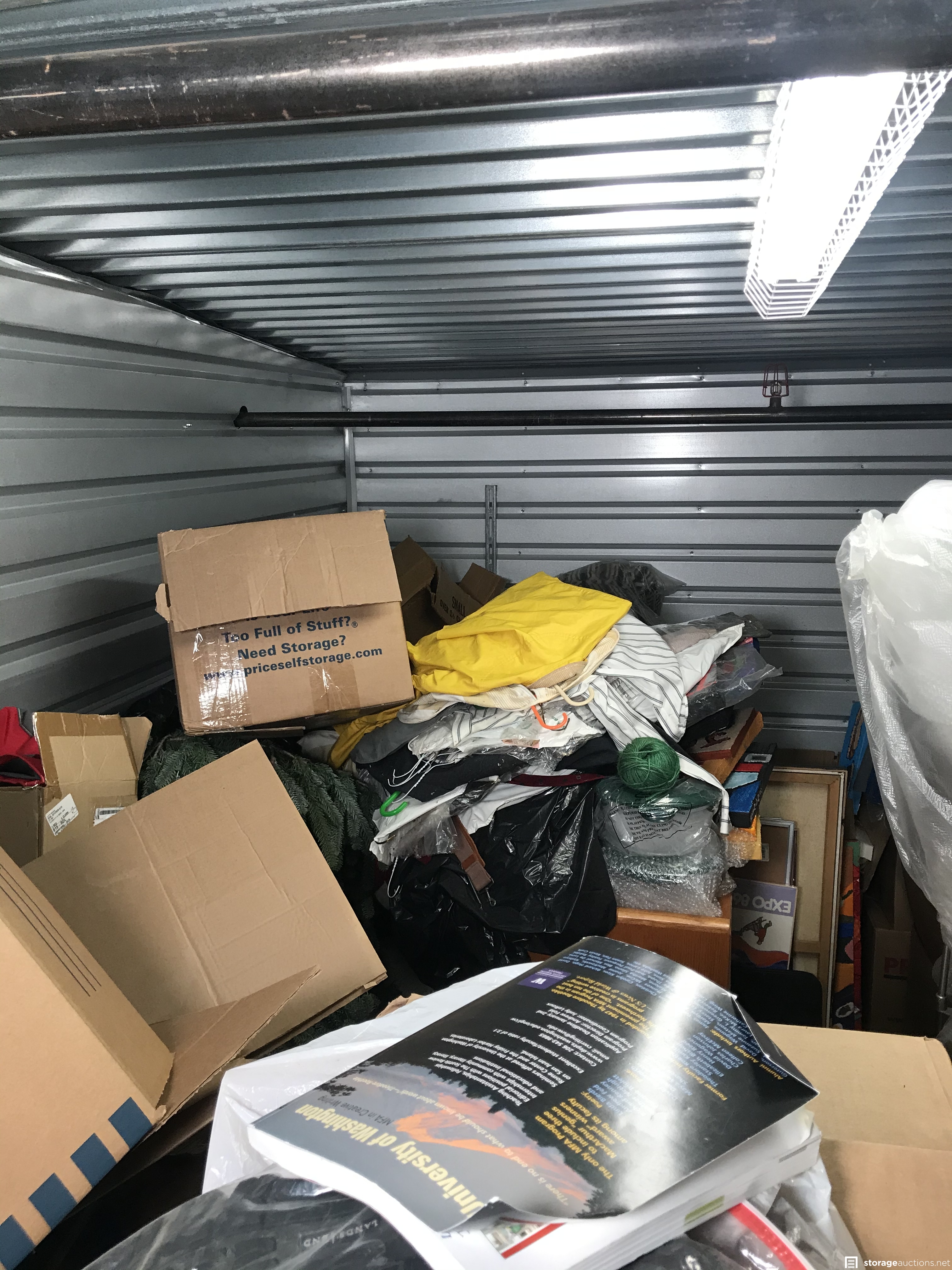 Additional Terms: Everything is sold as is where is. This is an online pre-bid auction that will close 15 minutes prior to the live auction. The live auction will take place at 10151 National Blvd., Los Angeles 90034 on Wednesday, December 2 at 11 AM The online high bidder and that maximum bid will be used at the live auction as a proxy bid against live bidders. Unsuccessful online bidders will be notified after the auction on how much the unit sold for and that it sold to the live audience. Successful online bidders will be notified via email and immediately be charged 10% of the winning bid. Once you???re notified that you have won the unit you must show up within 24 hours to pay cash for the unit along with a $100 refundable cleaning deposit which will be refunded to you by the manager after the unit has been confirmed cleaned out. **Tenants bidding on their own unit do not alleviate their debt obligation and will still owe the full balance due on the unit.** 1. Auction units must be paid in Cash Only at the facility where the unit is located. 2. Cleaning Deposit paid in Cash and only returned after approved inspection of unit. 3. Auction Buyer needs to fill out facility buyer's agreement. 4. Auction buyer must show ID or have letter stating buyer's representative name and they must show ID to gain access to unit. 5. Auction Buyers must contact the storage facility office where the unit is located and pay cash plus cleaning deposit no later than 24 hours after the auction ends. 6. Buyer must clean unit out during office hours only. No gate access code will be given out. * Contact facility immediately when auction ends, to make arrangements to pay for and pick up the unit. * You must have a Paid Invoice with a matching unique number in order to pick up unit. * You must be 18 years old to bid. *** You must provide a valid photo I.D. to the Site Manager. *** You must bring your own lock to secure the unit. *** You will not be allowed to enter the storage unit or touch any items prior to bidding or paying. *** Sales are final and bids are for the entire unit. *** The Auctioneer has final say on all issues, including whether to refuse a bid if a bidder has disrupted an auction or violated any rules. *** Immediate cash payment is required when you purchase a unit. *** Sales tax may apply. If you have a resale license, bring a copy and present before payment. *** You have 48 hours to remove the contents entirely and ***broom sweep*** the unit. *** A $100 refundable cleaning deposit is charged on every unit you buy. *** You must remove all of the contents and trash from the unit and facility grounds. *** You are not allowed to use the dumpsters on the facility property. *** Please advise the manager once you have completely emptied the unit. The manager will inspect that the unit is clean and then refund your cleaning deposit. *** Smoking is prohibited on storage facility properties. *** No Pets allowed at facility *** Respect the Property, Managers, Tenants and other Buyers at all times. *** PERSONAL ITEMS FOUND WITHIN THE UNIT SHOULD BE RETURNED TO THE SITE MANAGER IMMEDIATELY. Covid 19 For everyone safety we require social distancing, a mask and please wash your hands during your time at the storage facility Thank you! Winning bidder will need to immediately contact the storage facility and pay for their units In cash within 24 hours after auction. All buyers will be required to pay $100 refundable cleaning deposit to Manager to ensure that the entire unit is cleaned out free of all trash and debris and broom swept. Buyer will have 48 hours to clean out their unit. A question should be directed to the manager at Price self storage national 310 837 7700. If there are any titled vehicles hidden within the storage units those Vehicles are not included in any auction as storage location has no right or title to sell those and may be retained by the management. There???s no smoking on the property, you cannot use the dumpsters on the property.