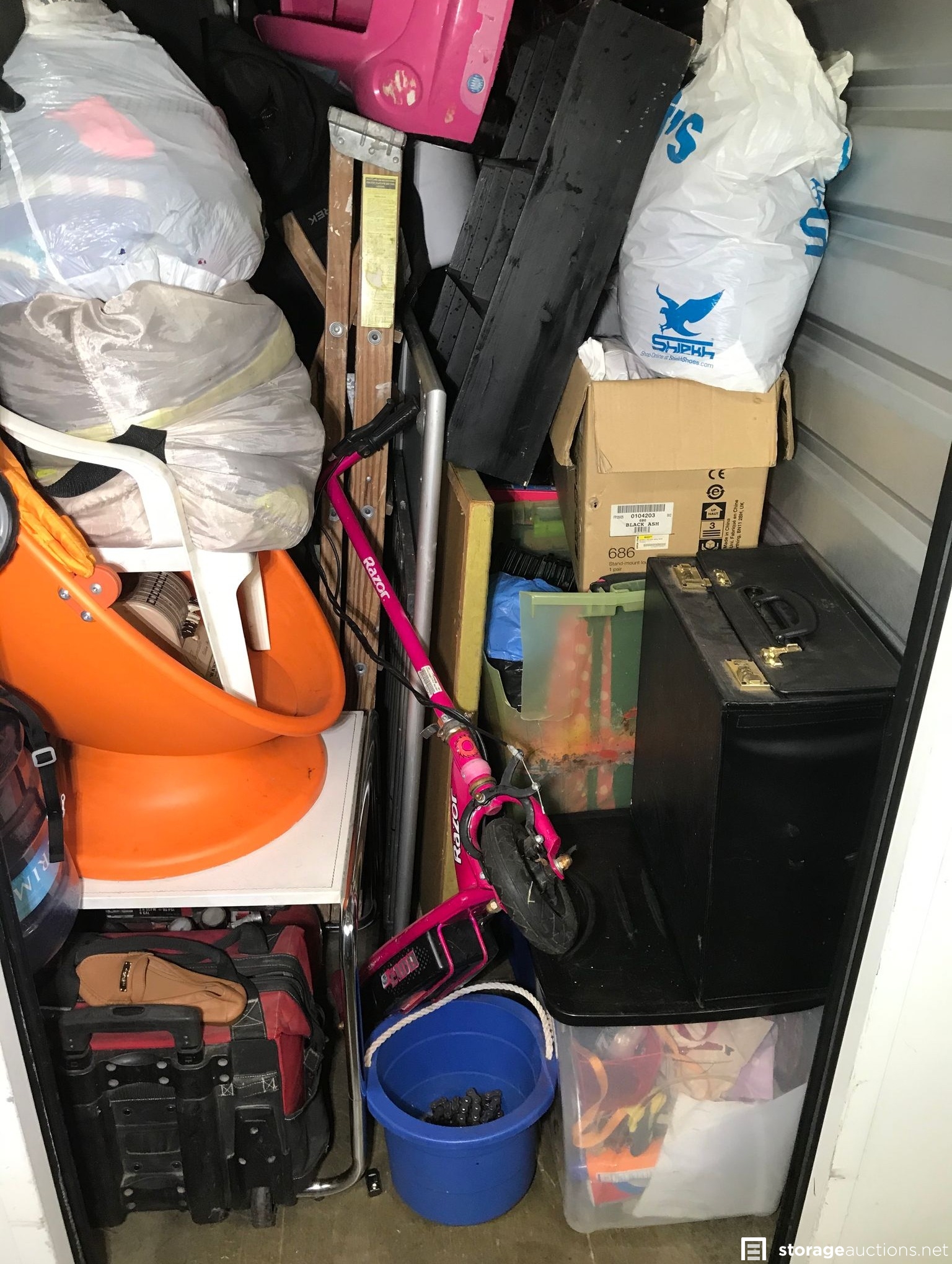 Additional Terms: Everything is sold as is where is. This is a cash only sale. This is an online pre-bid auction that will close 15 minutes prior to the live auction. The live auction will take place at 3430 S La Brea Ave, Los Angeles Ca. on Friday, December 11 at 10AM The online high bidder and that maximum bid will be used at the live auction as a proxy bid against live bidders. Unsuccessful online bidders will be notified after the auction on how much the unit sold for and that it sold to the live audience. Successful online bidders will be notified via email and immediately be charged 10% of the winning bid. Once you're notified that you have won the unit you must show up within 24 hours to pay cash for the unit along with a $100 refundable cleaning deposit which will be refunded to you by the manager after the unit has been confirmed cleaned out. **Tenants bidding on their own unit do not alleviate their debt obligation and will still owe the full balance due on the unit.** 1. Auction units must be paid in Cash Only at the facility where the unit is located. 2. Cleaning Deposit paid in Cash and only returned after approved inspection of unit. 3. Auction Buyer needs to fill out facility buyer's agreement. 4. Auction buyer must show ID or have letter stating buyer's representative name and they must show ID to gain access to unit. 5. Auction Buyers must contact the storage facility office where the unit is located and pay cash plus cleaning deposit no later than 24 hours after the auction ends. 6. Buyer must clean unit out during office hours only. No gate access code will be given out. * Contact facility immediately when auction ends, to make arrangements to pay for and pick up the unit. * You must have a Paid Invoice with a matching unique number in order to pick up unit. * You must be 18 years old to bid. *** You must provide a valid photo I.D. to the Site Manager. *** You must bring your own lock to secure the unit. *** You will not be allowed to enter the storage unit or touch any items prior to bidding or paying. *** Sales are final and bids are for the entire unit. *** The Auctioneer has final say on all issues, including whether to refuse a bid if a bidder has disrupted an auction or violated any rules. *** Immediate cash payment is required when you purchase a unit. *** Sales tax may apply. If you have a resale license, bring a copy and present before payment. *** You have 48 hours to remove the contents entirely and ***broom sweep*** the unit. *** A $100 refundable cleaning deposit is charged on every unit you buy. *** You must remove all of the contents and trash from the unit and facility grounds. *** You are not allowed to use the dumpsters on the facility property. *** Please advise the manager once you have completely emptied the unit. The manager will inspect that the unit is clean and then refund your cleaning deposit. *** Smoking is prohibited on storage facility properties. *** No Pets allowed at facility *** Respect the Property, Managers, Tenants and other Buyers at all times. *** PERSONAL ITEMS FOUND WITHIN THE UNIT SHOULD BE RETURNED TO THE SITE MANAGER IMMEDIATELY. Covid 19 For everyone safety we require social distancing, a mask and please wash your hands during your time at the storage facility Thank you! Winning bidder will need to immediately contact the storage facility and pay for their units In cash within 24 hours after auction. All buyers will be required to pay $100 refundable cleaning deposit to Manager to ensure that the entire unit is cleaned out free of all trash and debris and broom swept. Buyer will have 48 hours to clean out their unit. A question should be directed to the manager at Price self storage national 310 837 7700. If there are any titled vehicles hidden within the storage units those Vehicles are not included in any auction as storage location has no right or title to sell those and may be retained by the management. There???s no smoking on the property, you cannot use the dumpsters on the property.