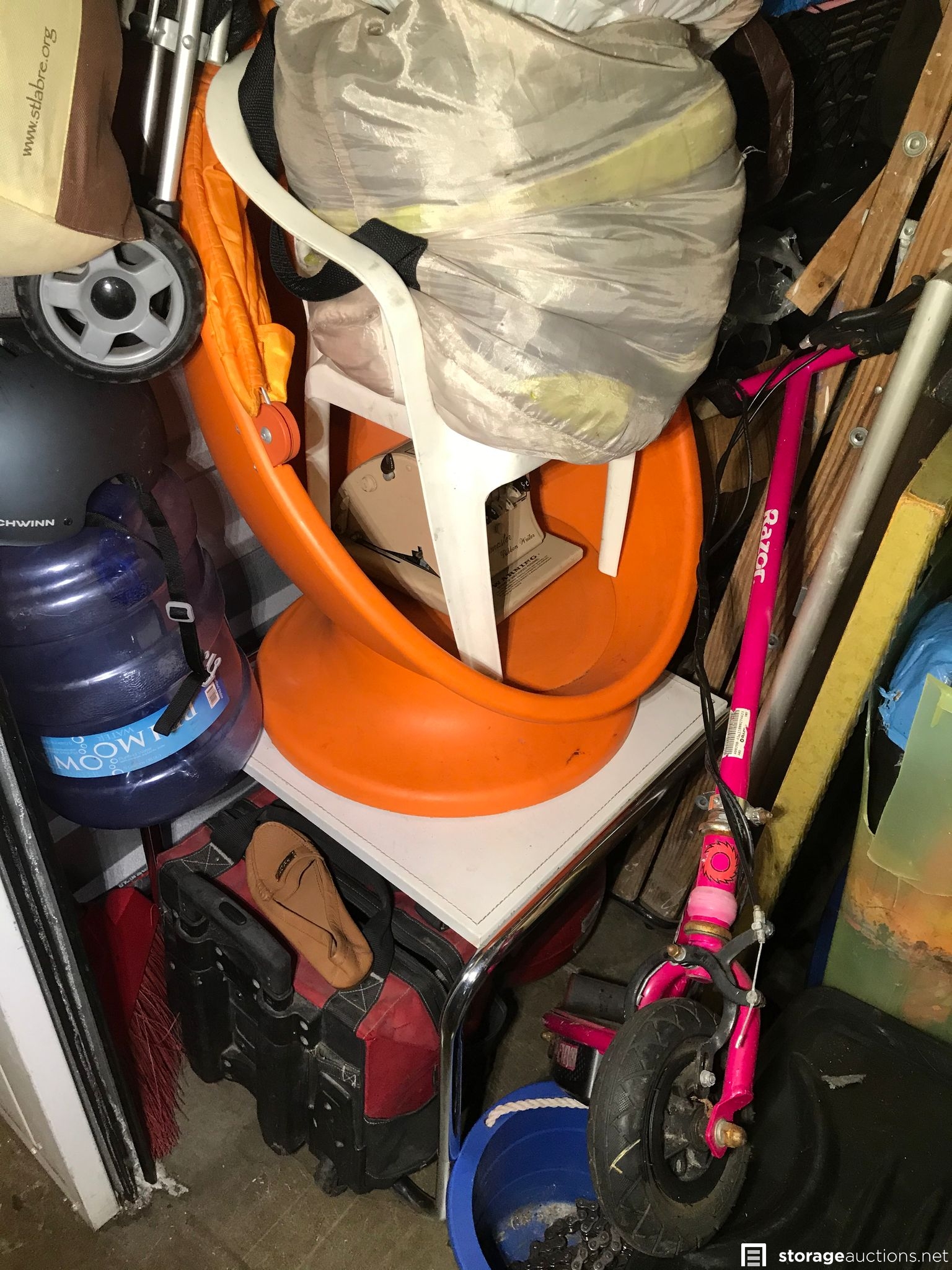 Air compressor, Electric Scooter, Schwin Helmet, Paymaster Ribbon Writer, Ladder, Stroller, Bicycles, Husky tool bag on wheels