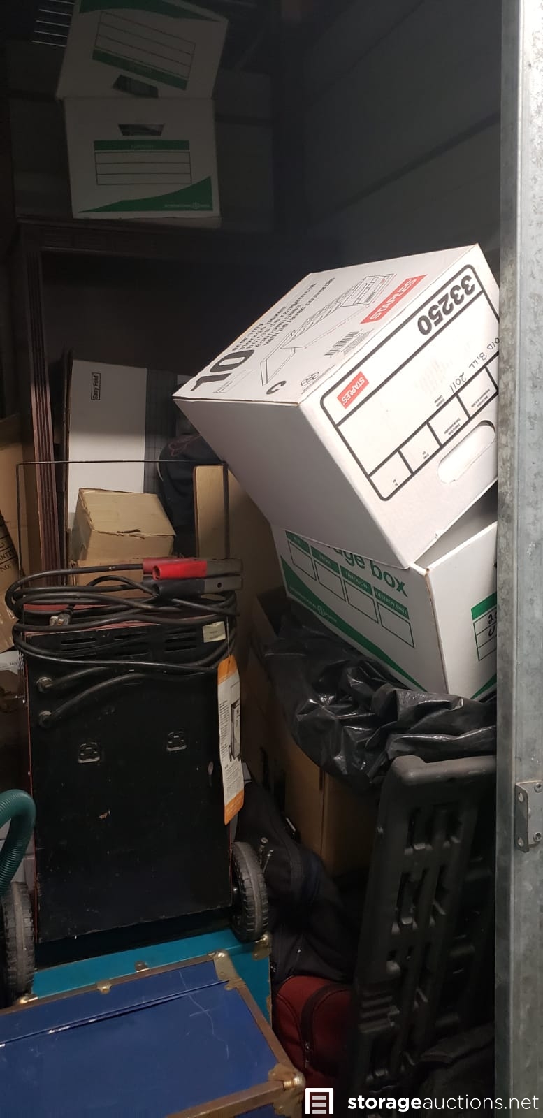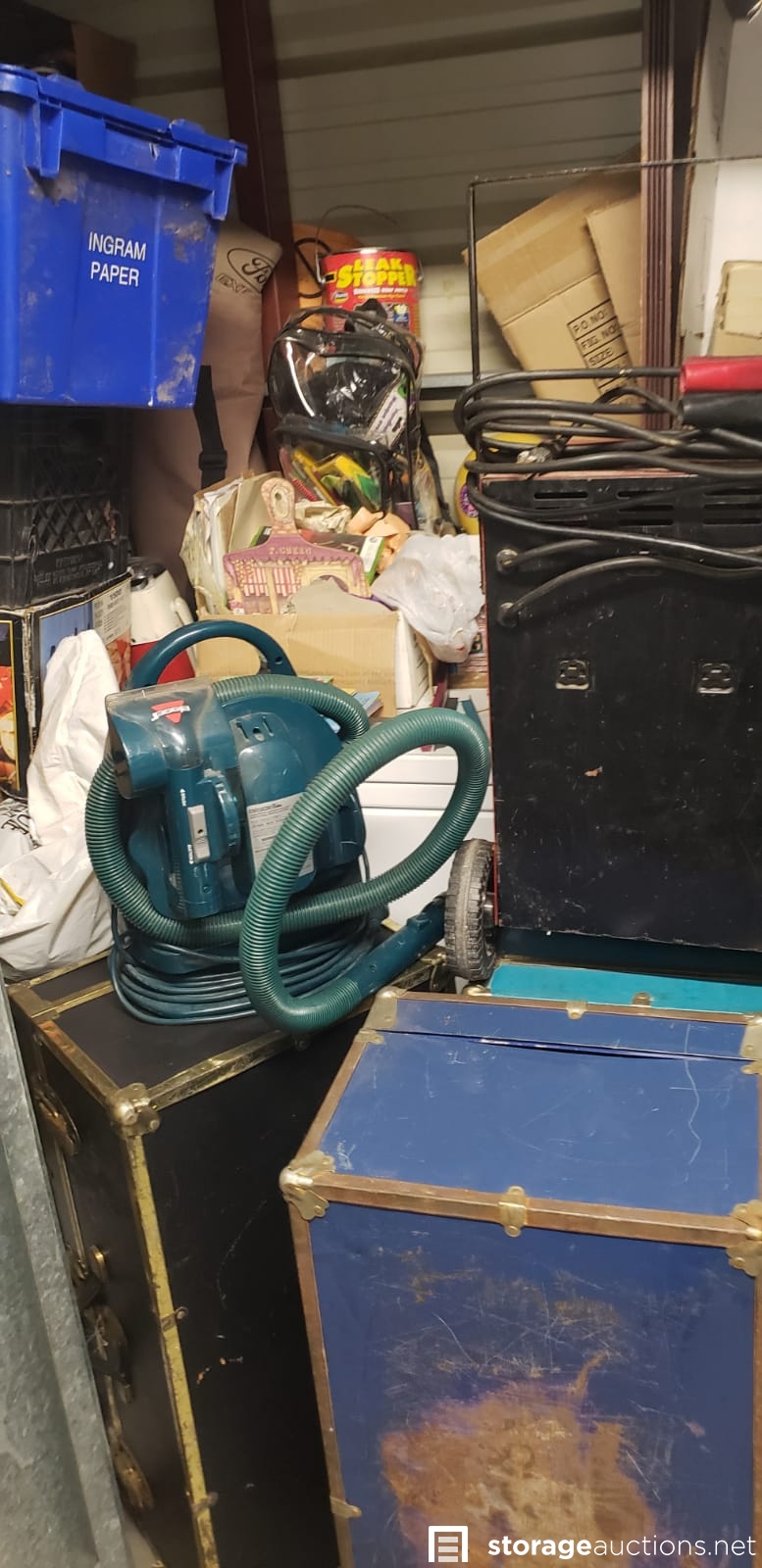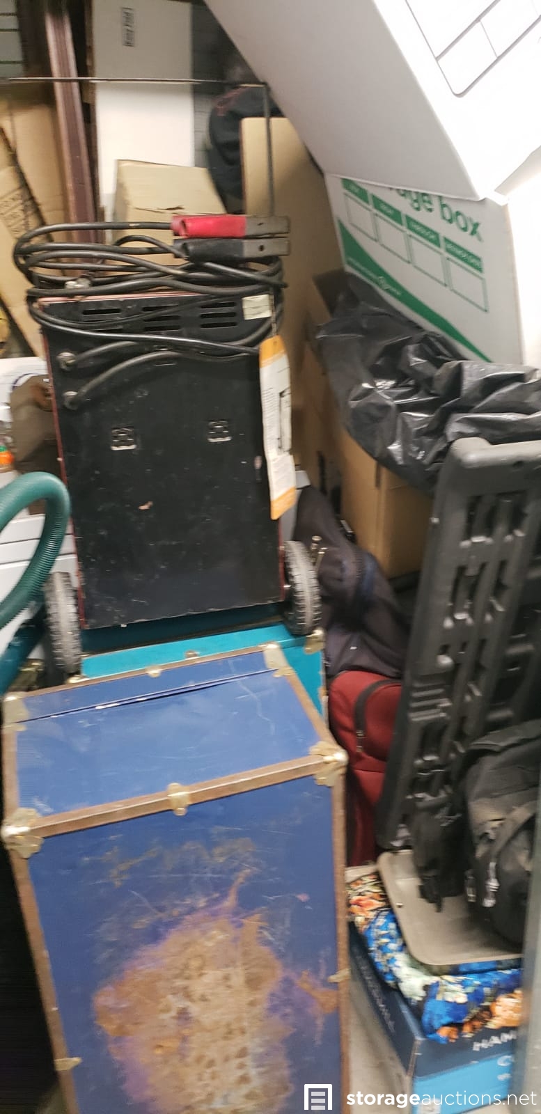 3 trunks, car battery charger, shop vac, duffel bag.