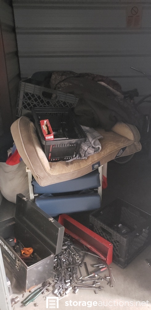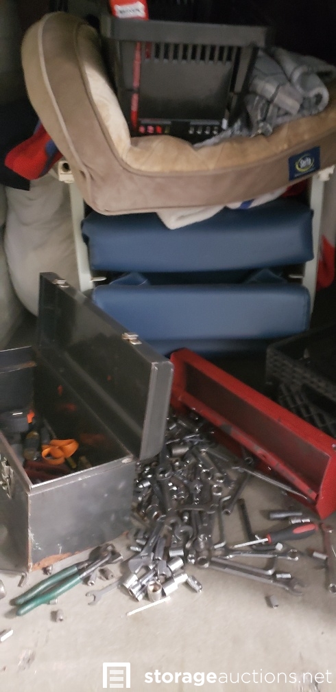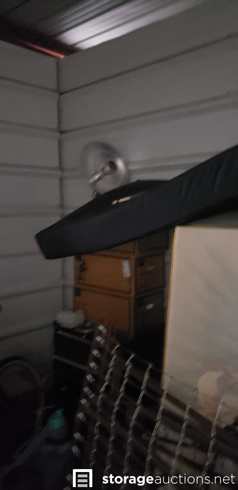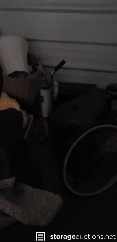 Hospital bed, oxygen tank, bike, chair, tool box.
