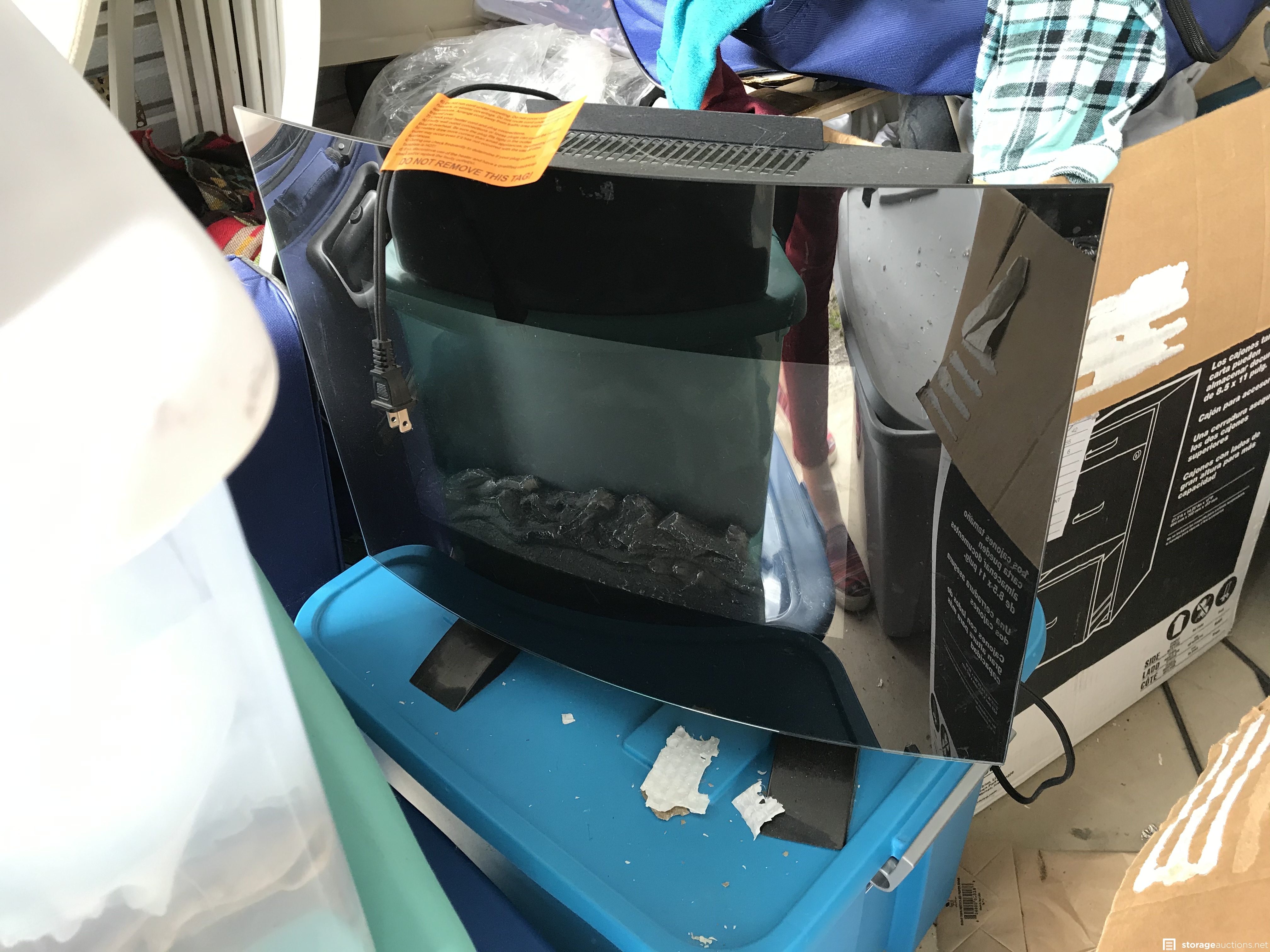 Table, chairs, electric fireplace, luggage, car seats, lamps, fan, dishes, little litton toaster oven, butter churner ect.