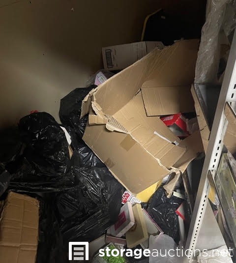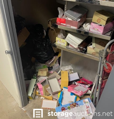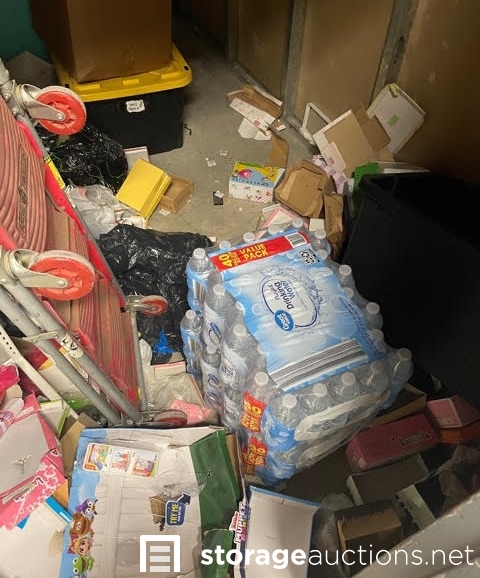 This unit appears to contain boxes, water case, display unit, dollie, and miscellaneous items.
