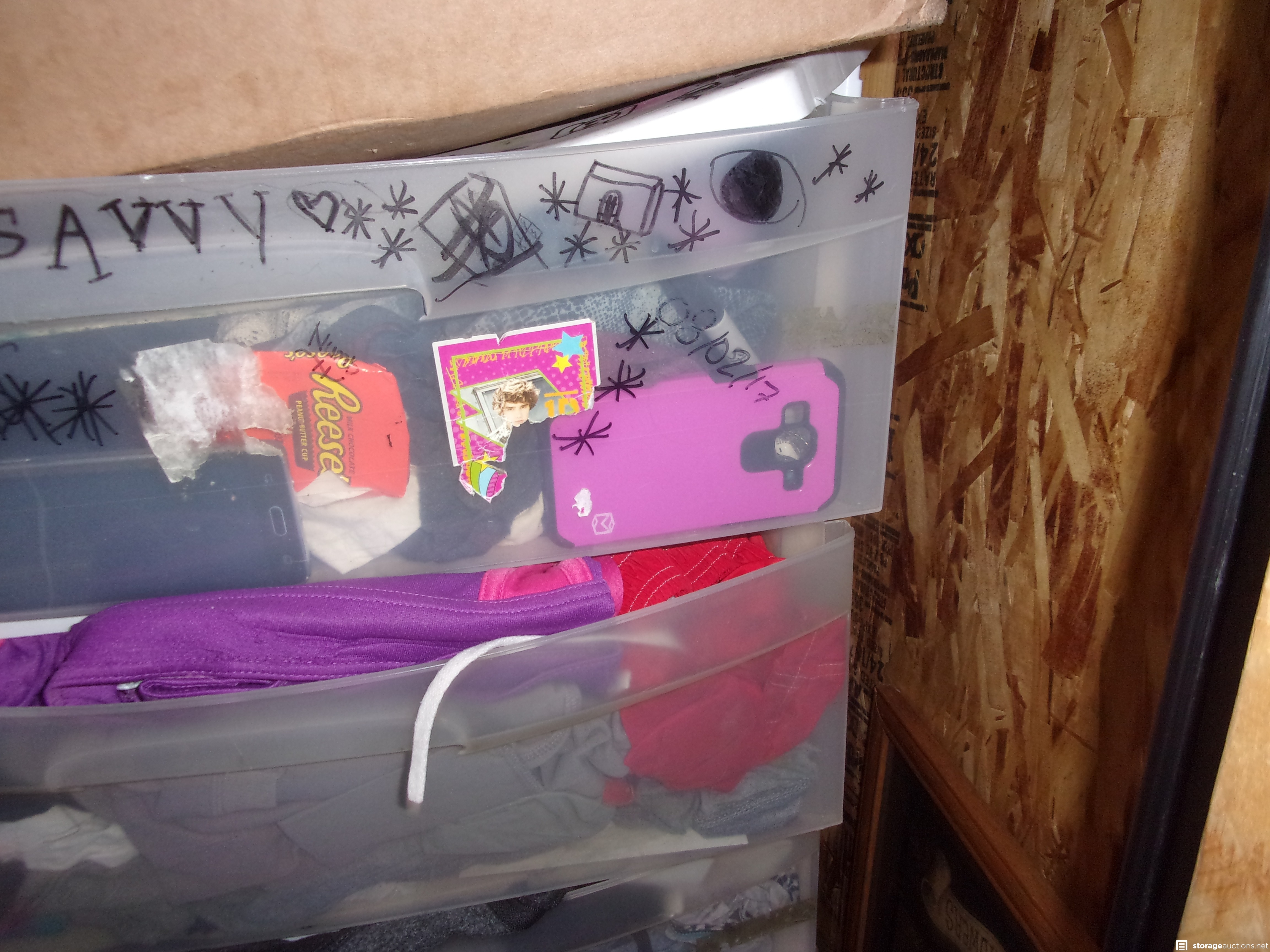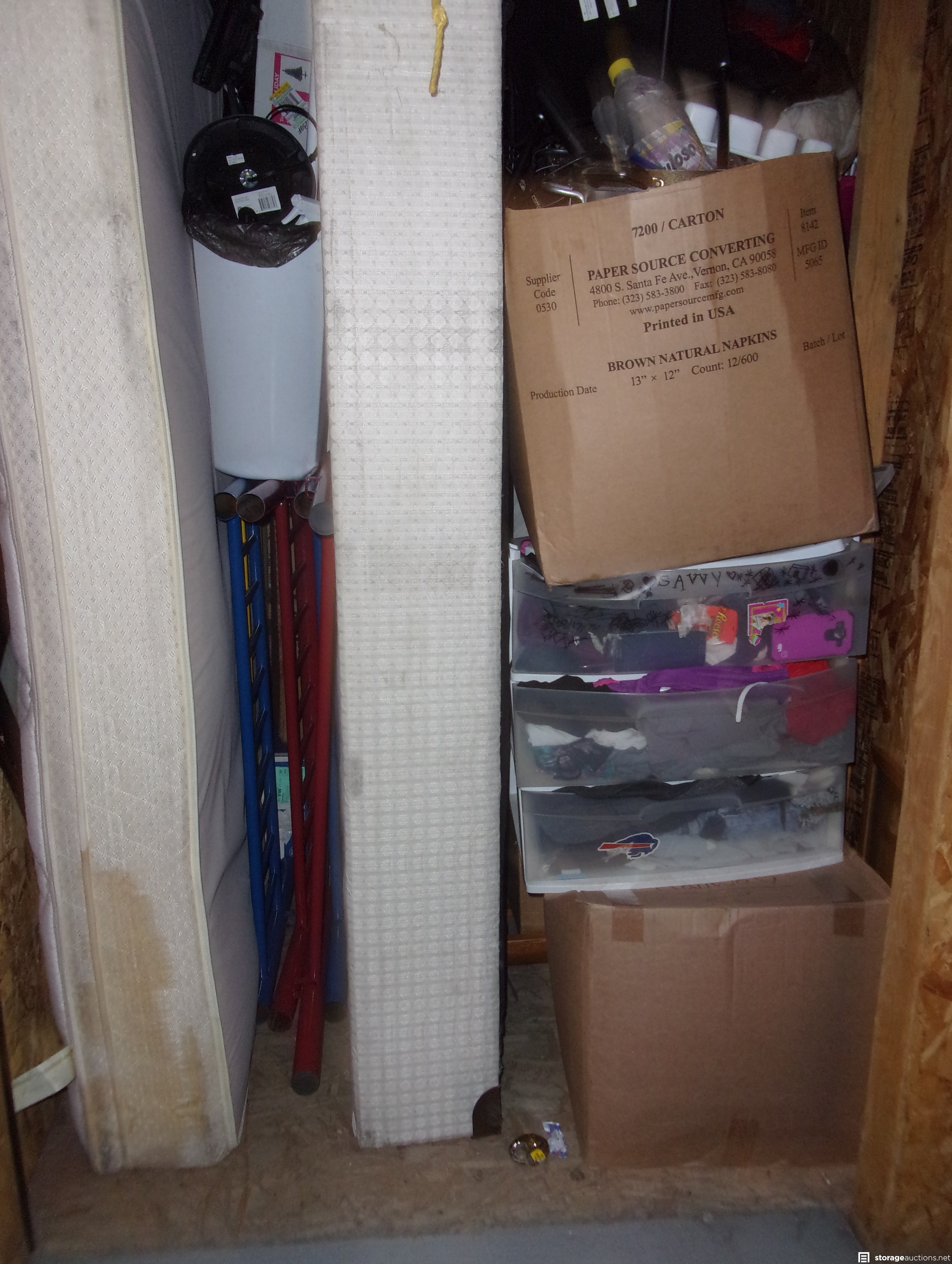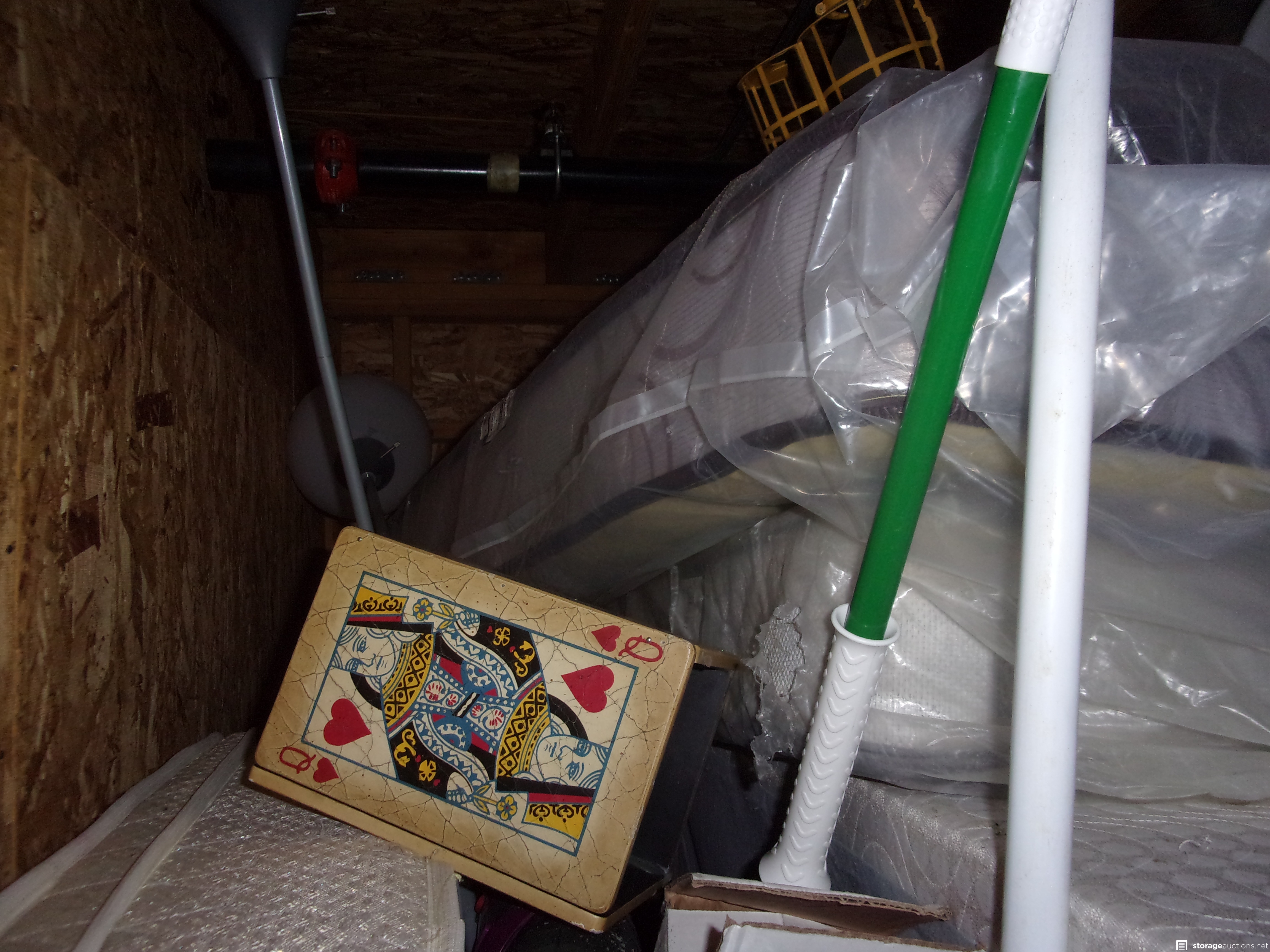Unit appears to contain, Boxes, clothing, furniture, kitchen items, lamps