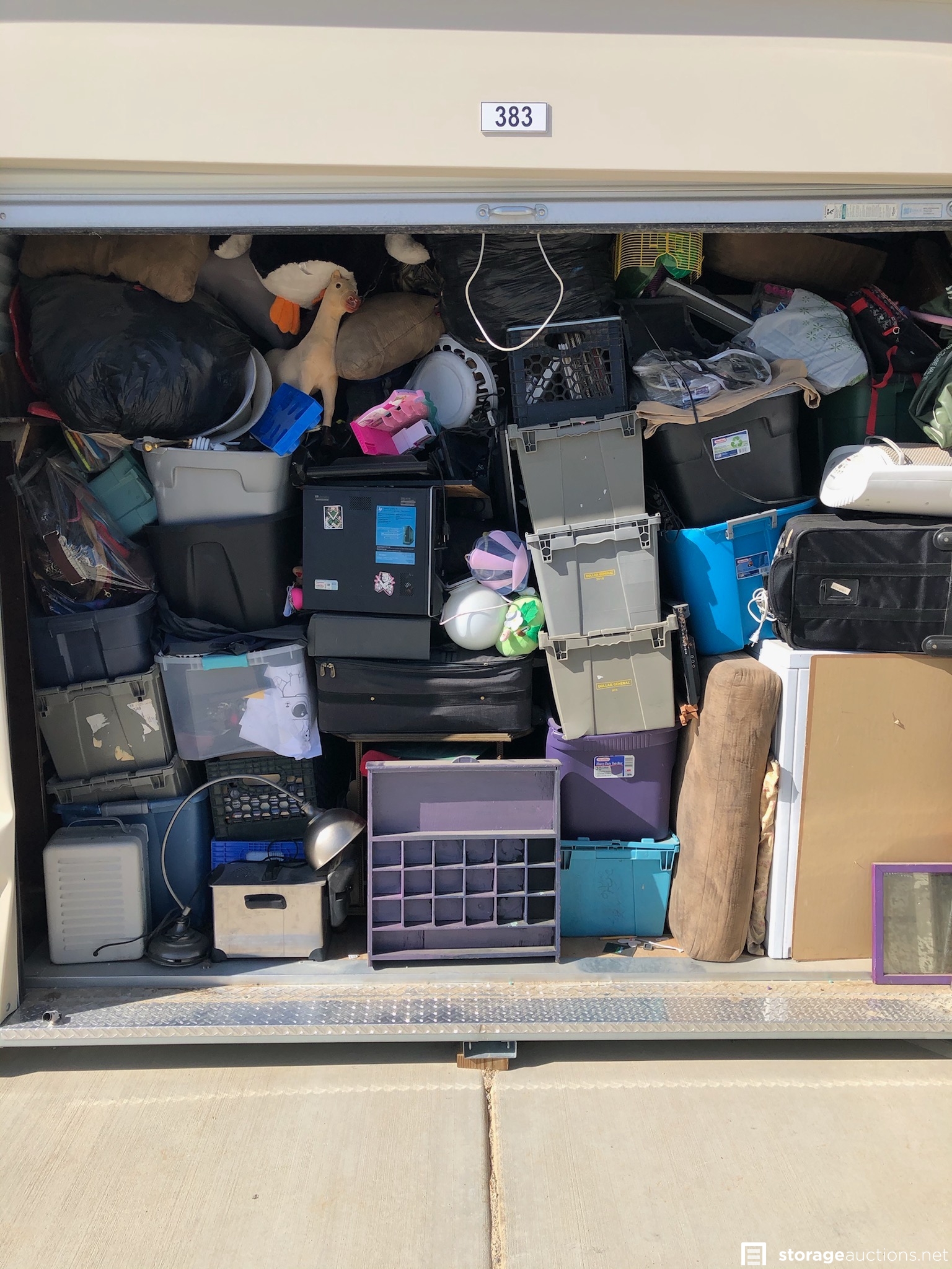 Additional Terms: **NOTICE - Defaulted tenant has legal right to cure account, thus cancelling the auction, up until cash payment is received from the winning bidder.** Buyers must be 18 years old to bid and pay winning bid. Winning bidder must pay within 48 hours in person. Cash or money order only. $100 deposit. If paying with money order, deposit must be on a separate money order. Unit must be cleaned out within 72 hours after payment. Deposit will be returned after unit is cleaned out. If unit is not cleaned out after 72 hours, unit will be considered abandoned and deposit will be kept by the storage facility. Must have a paid confirmation and valid photo ID to pick up contents of unit. All sales are final, all sales are AS IS for the entire content of unit, unless otherwise specified. Items containing personal information found within unit must be returned to the office upon clean-out of the unit. No dumping, No pets allowed. All auction unit(s) are subject to cancellation by the storage facility.