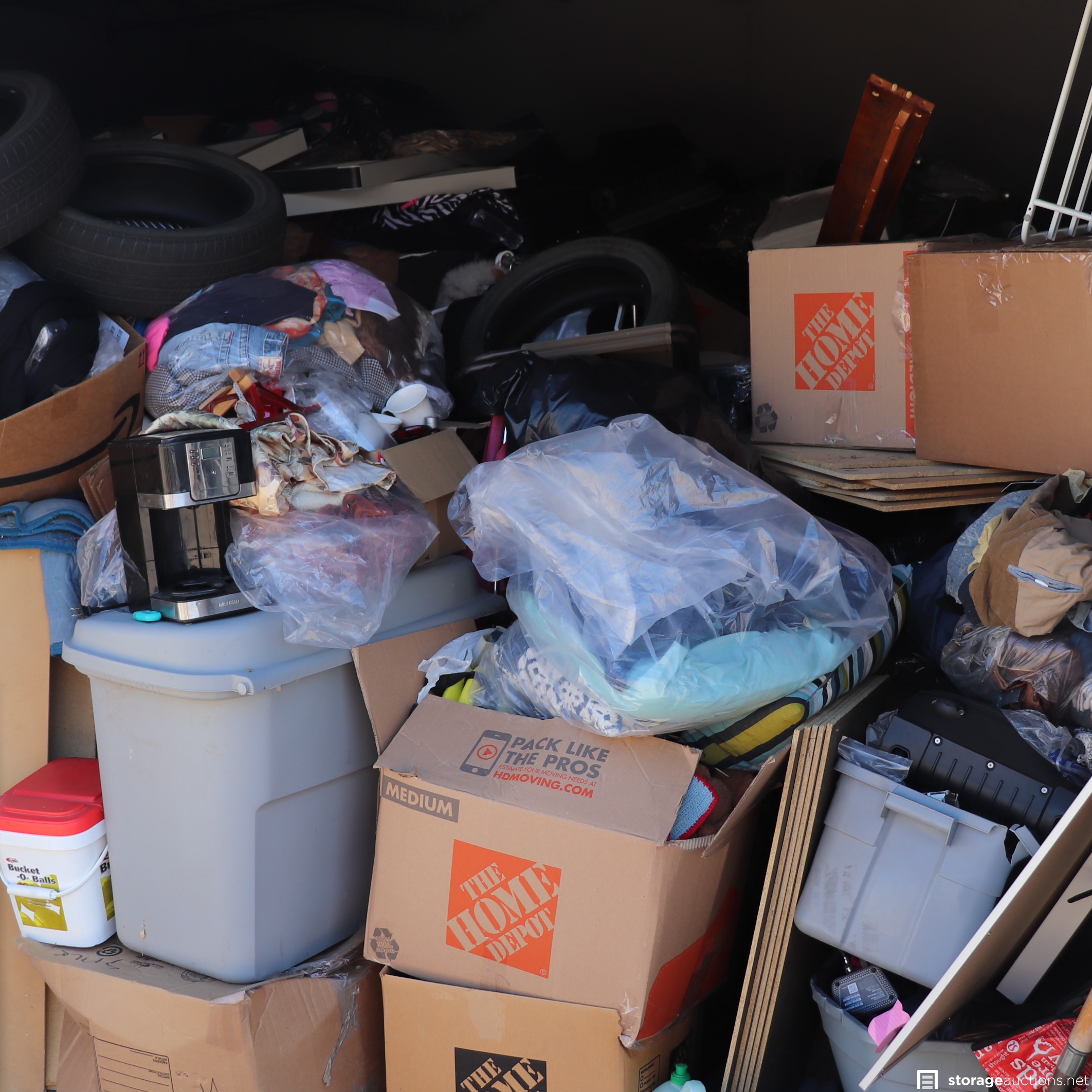 shelving, furniture, bikes, personal items, kitchen items, tires, unopened boxes, back packs, unit is very full
