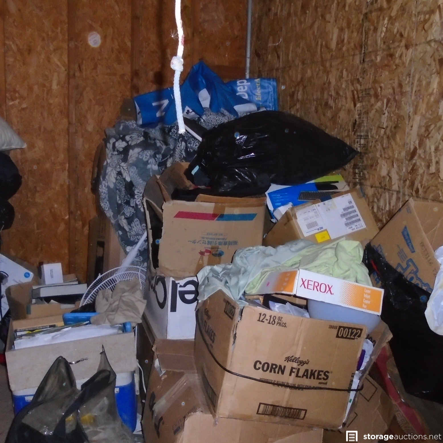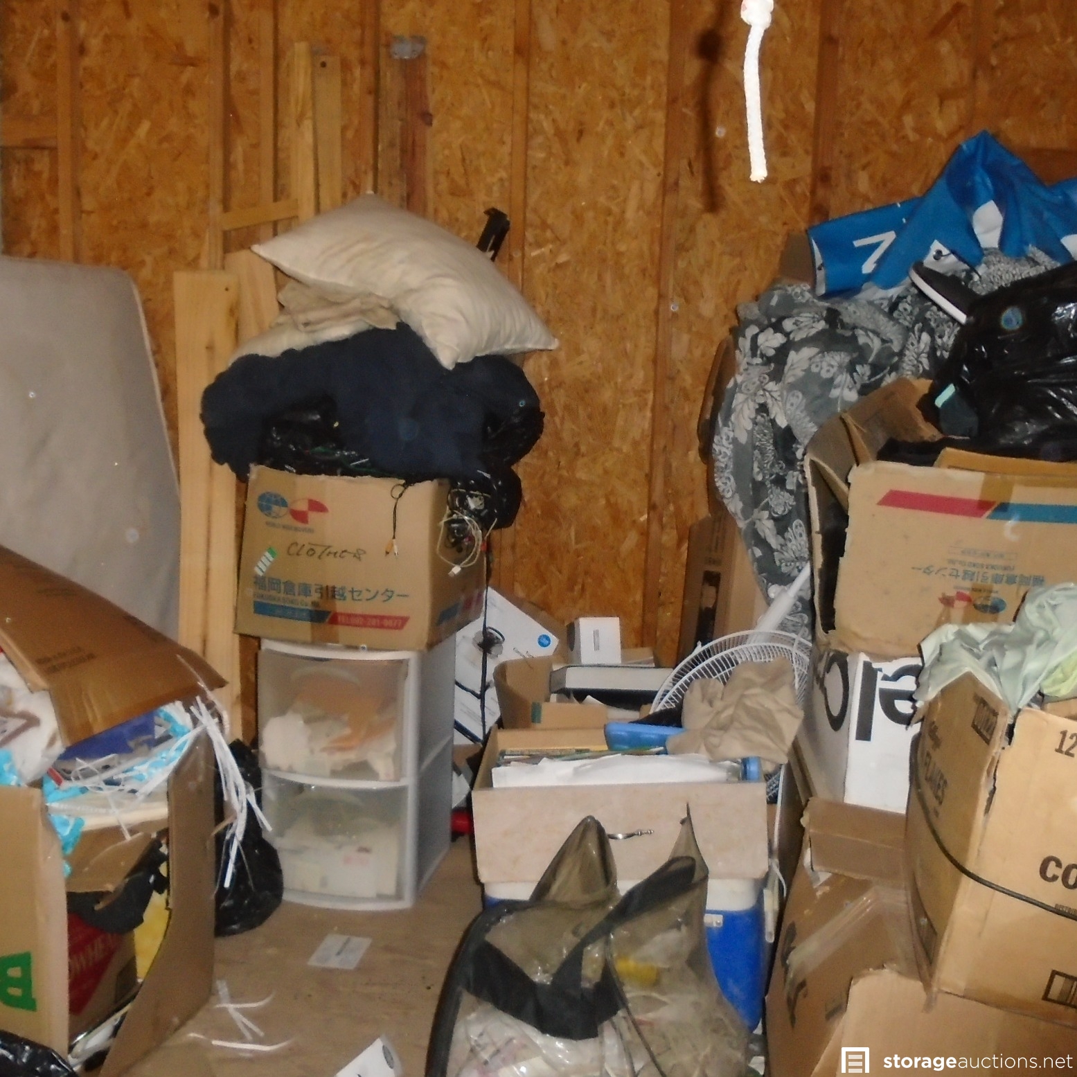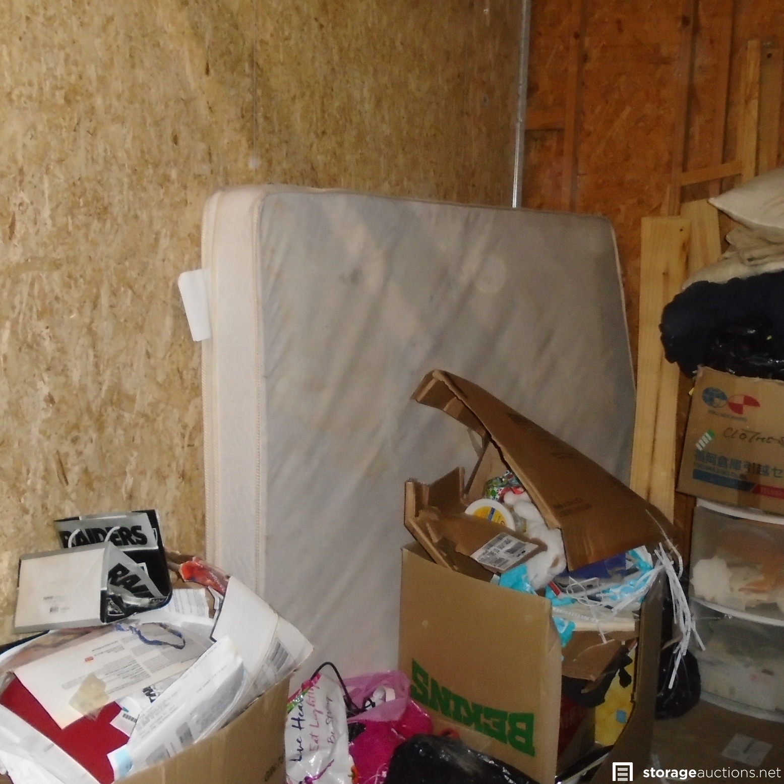 Unit appears to contain boxes, mattress, fan, very obstructed view