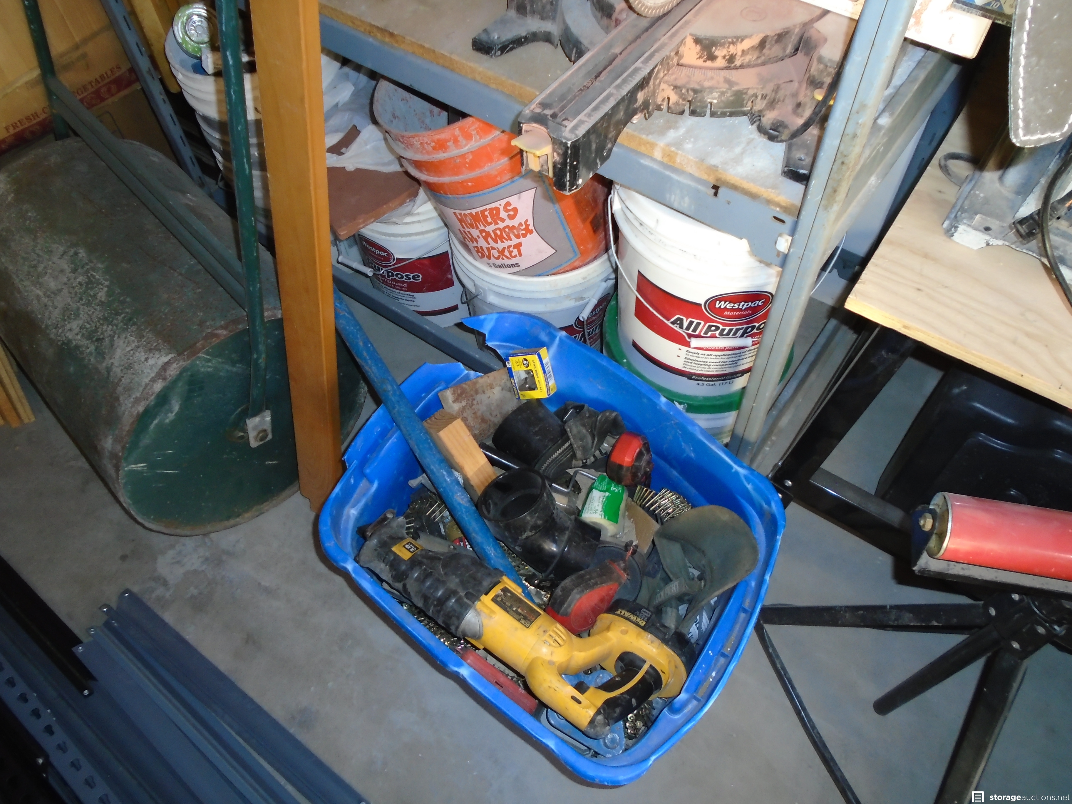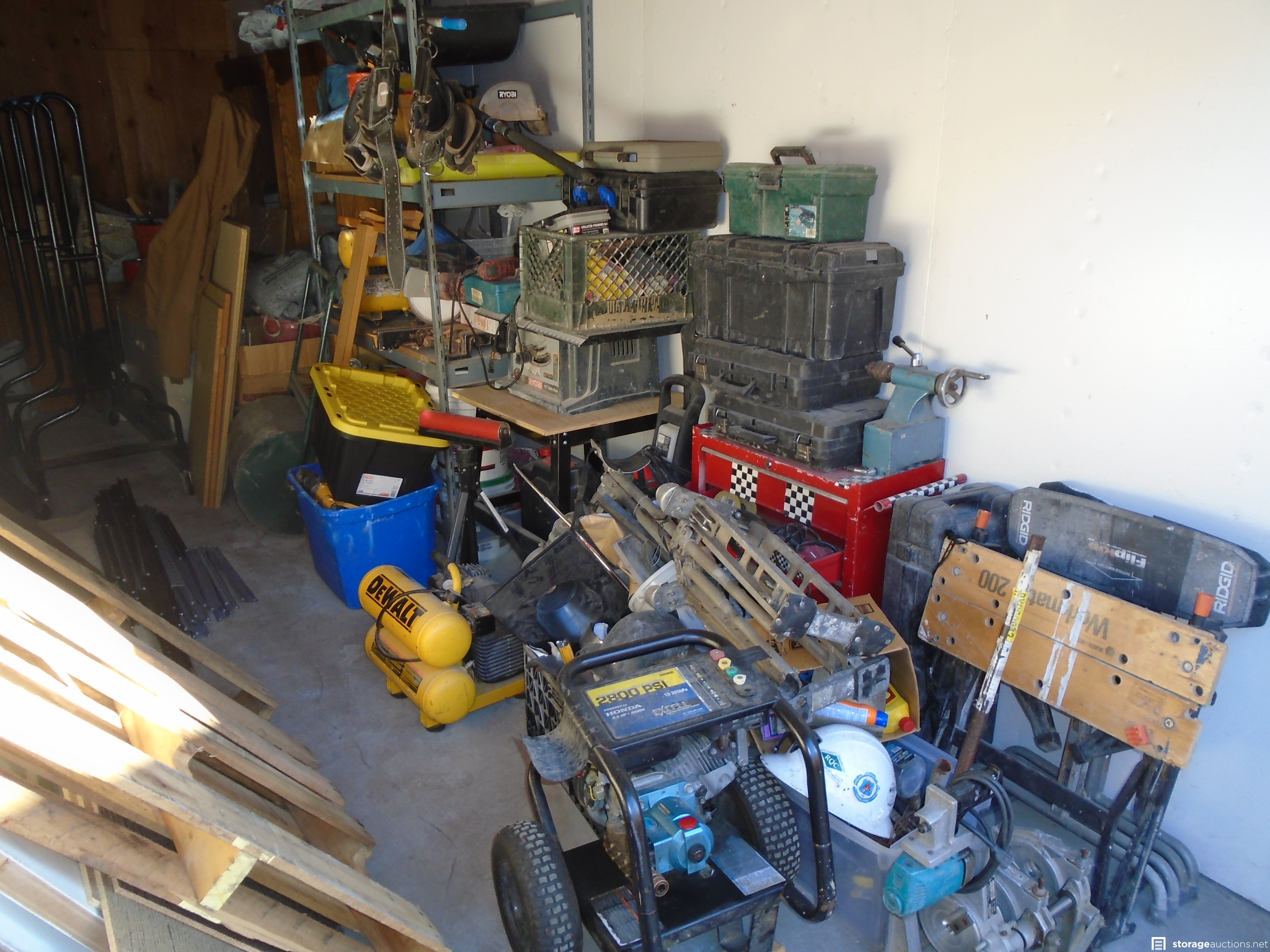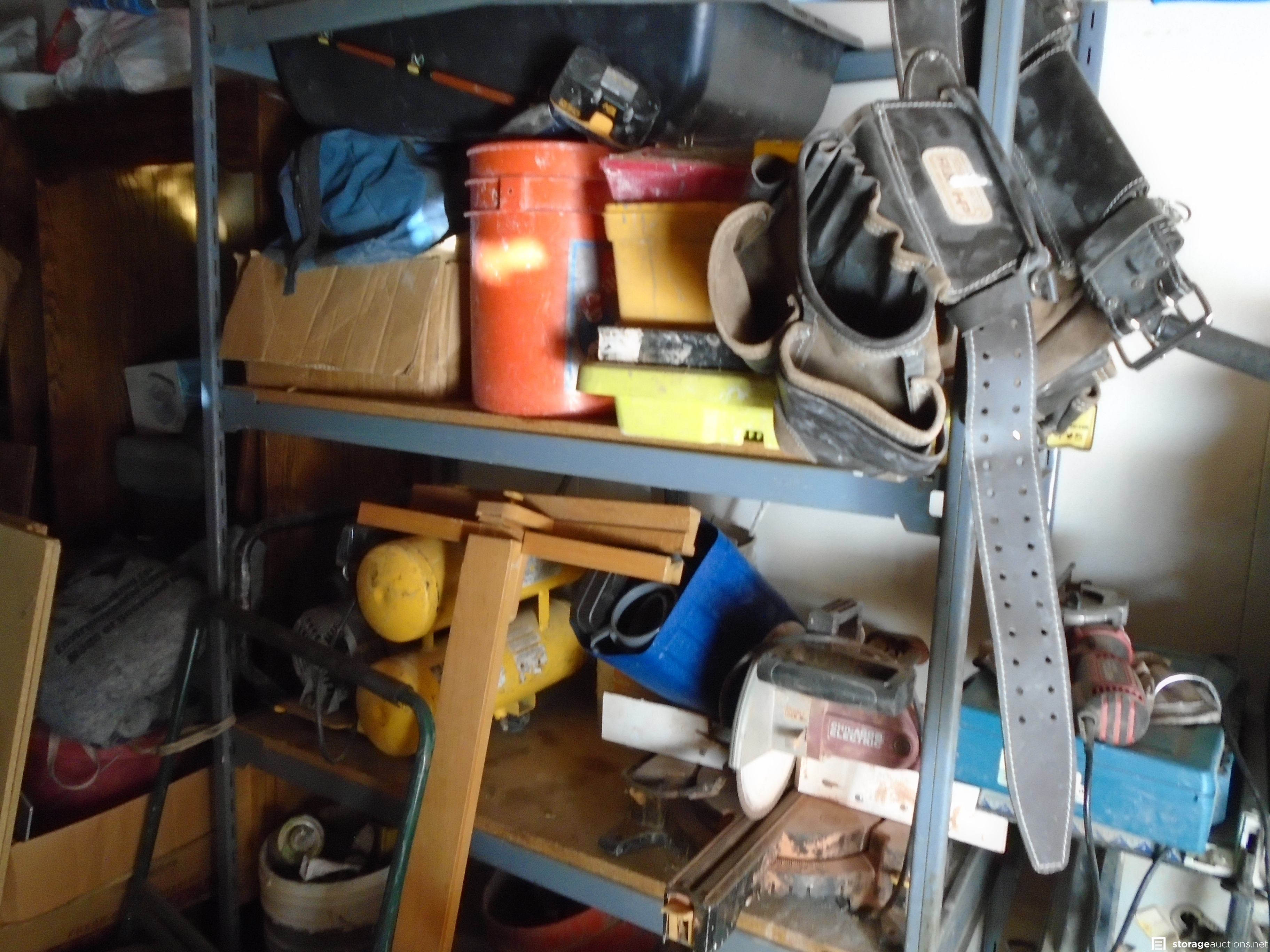 Construction Unit!!! Tools, Power tools, French doors, drills, pressure washer, scaffolding, air compressor tank, shelving, paints, football pad holder, and much more!!!