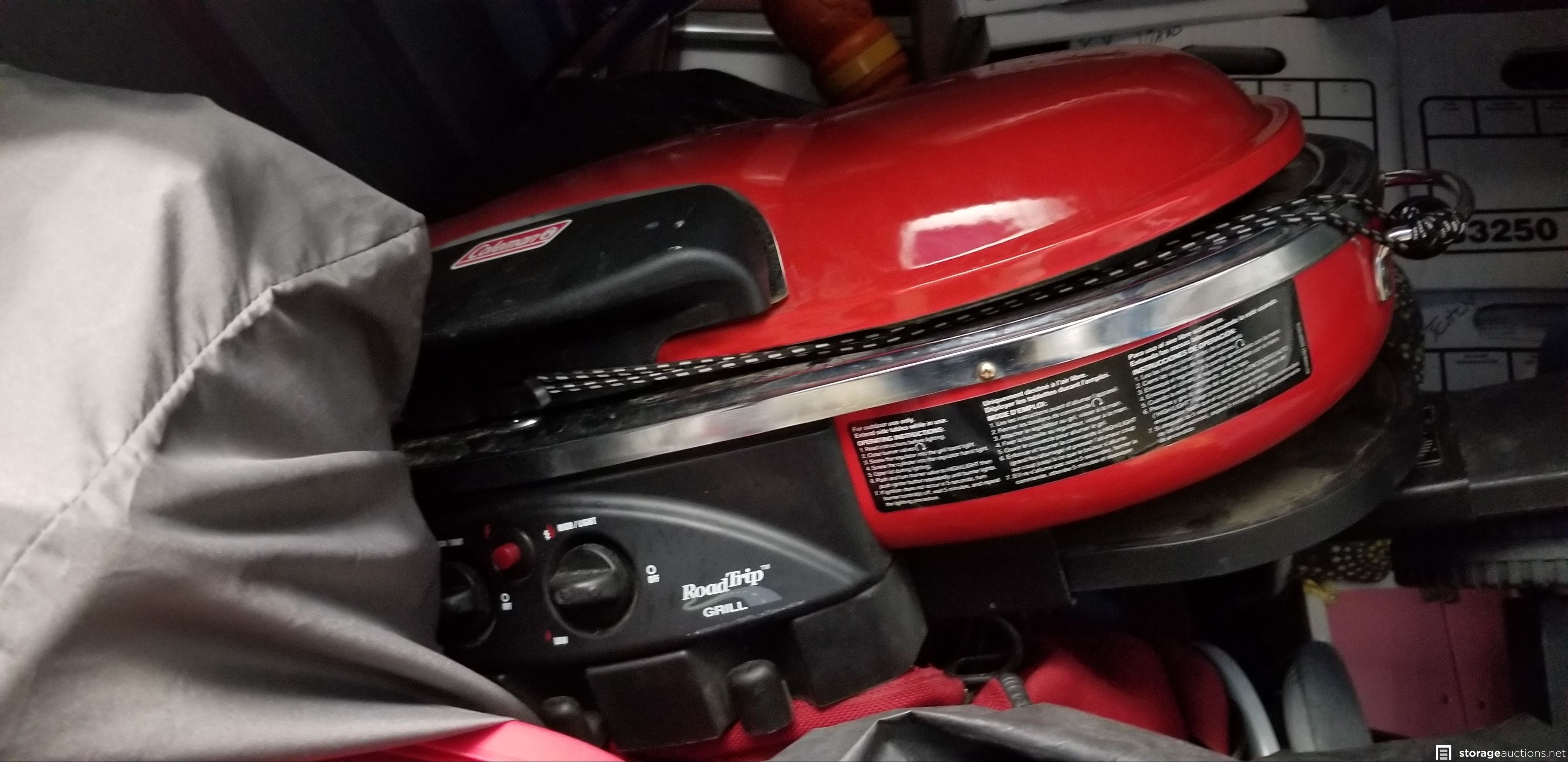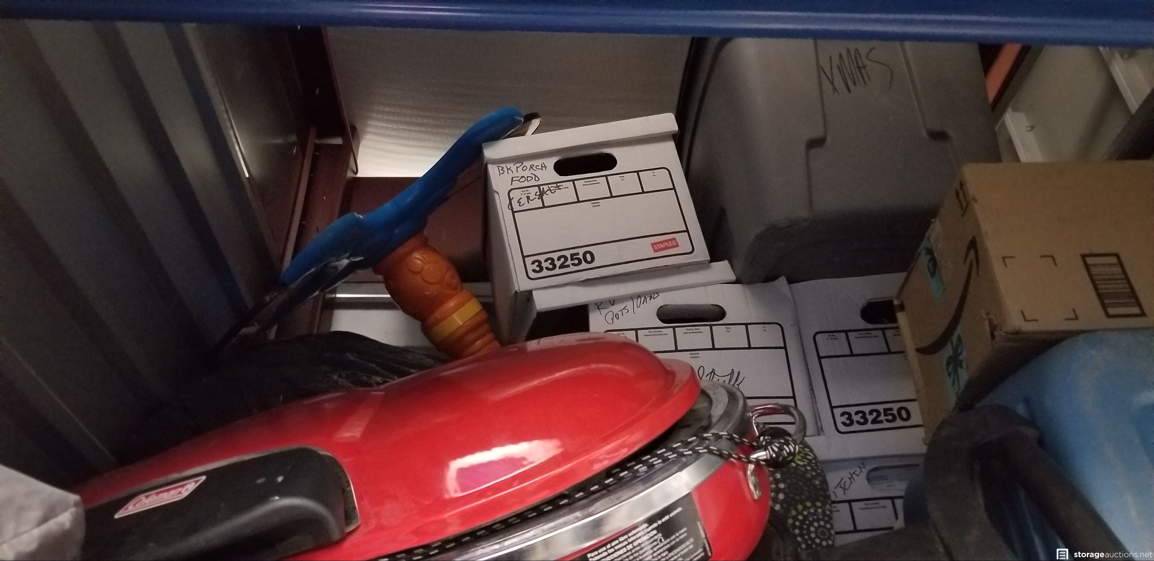 outdoor grill, storage bins, boots, totes, clothes