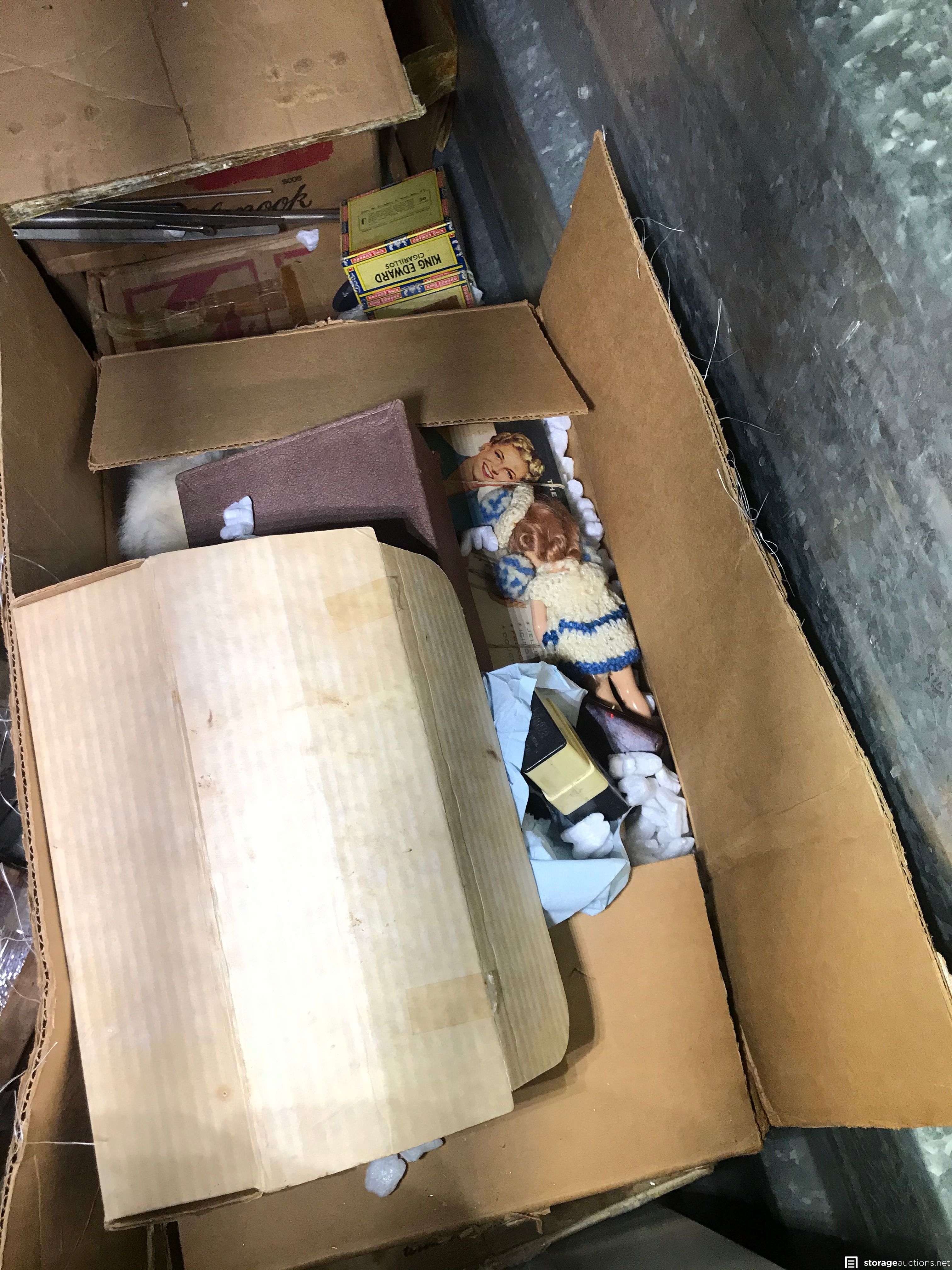 Boxes, Dolls, Gavel, Books