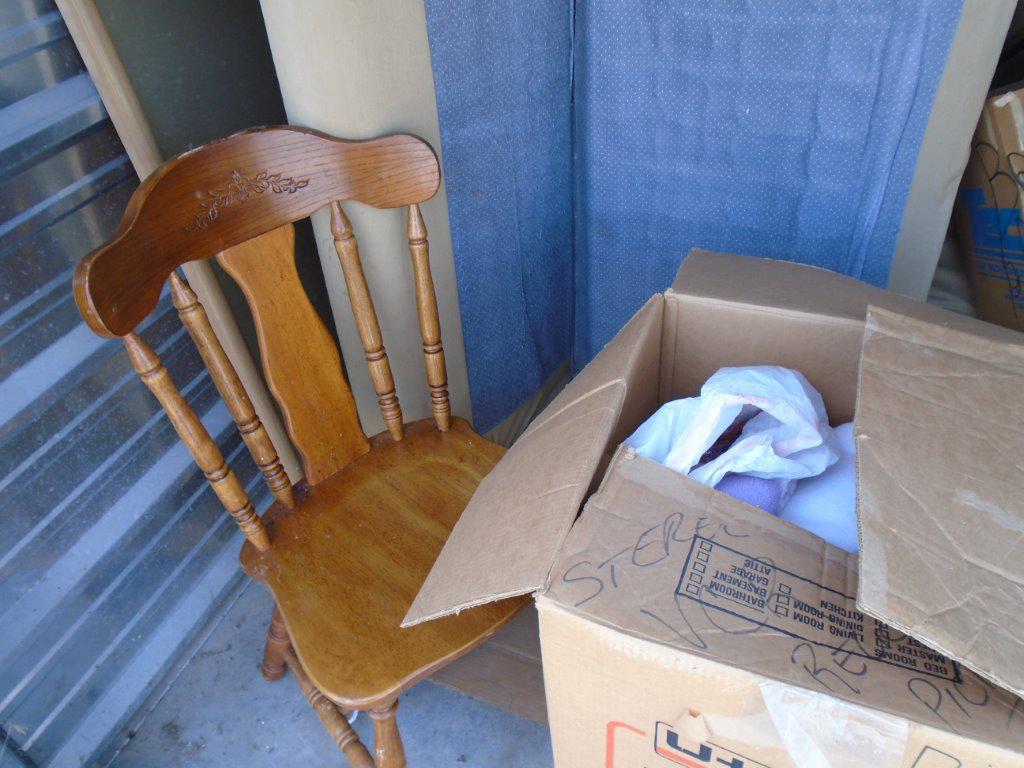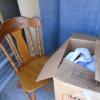 Sofa, Table, chairs, boxes of household items