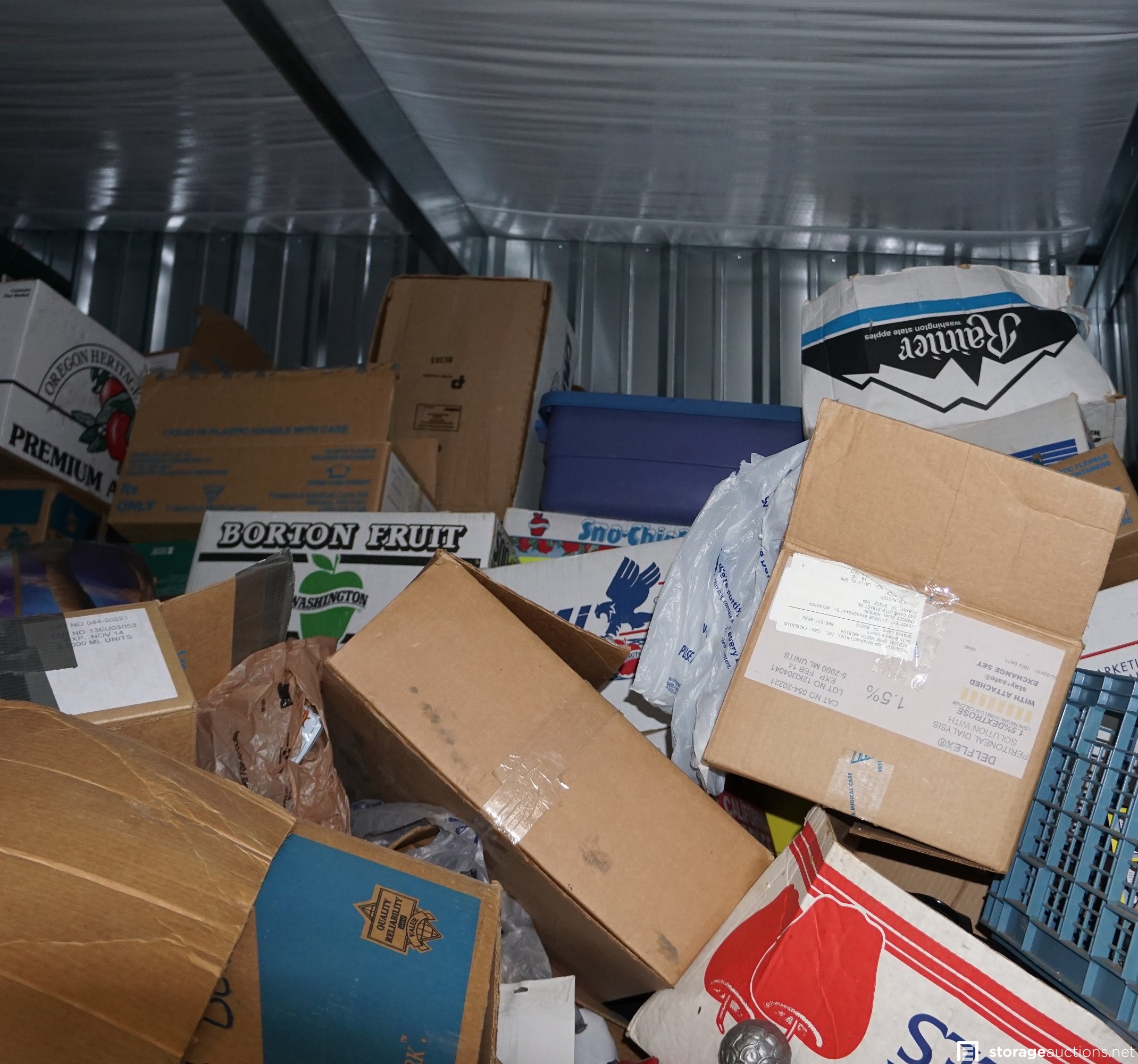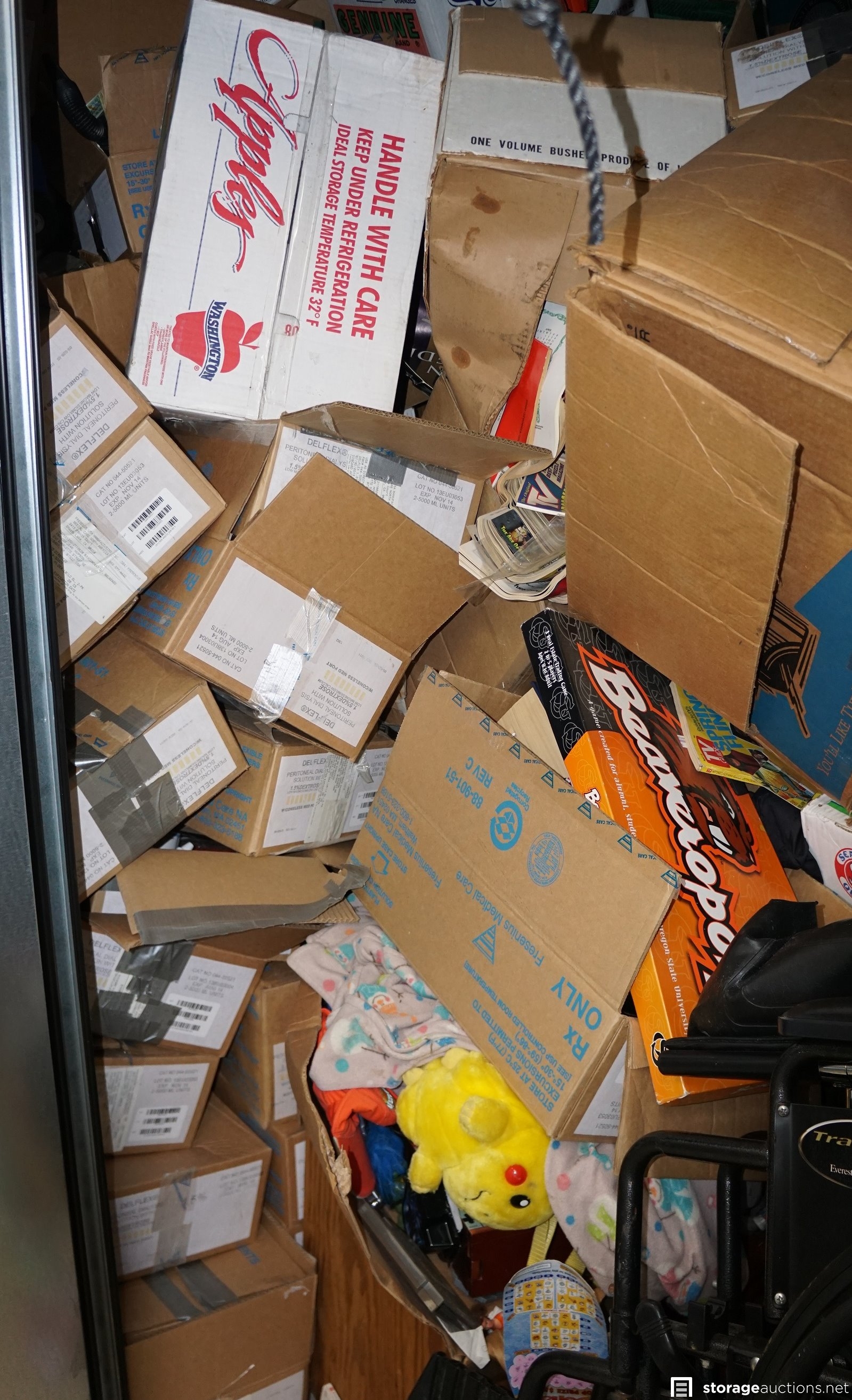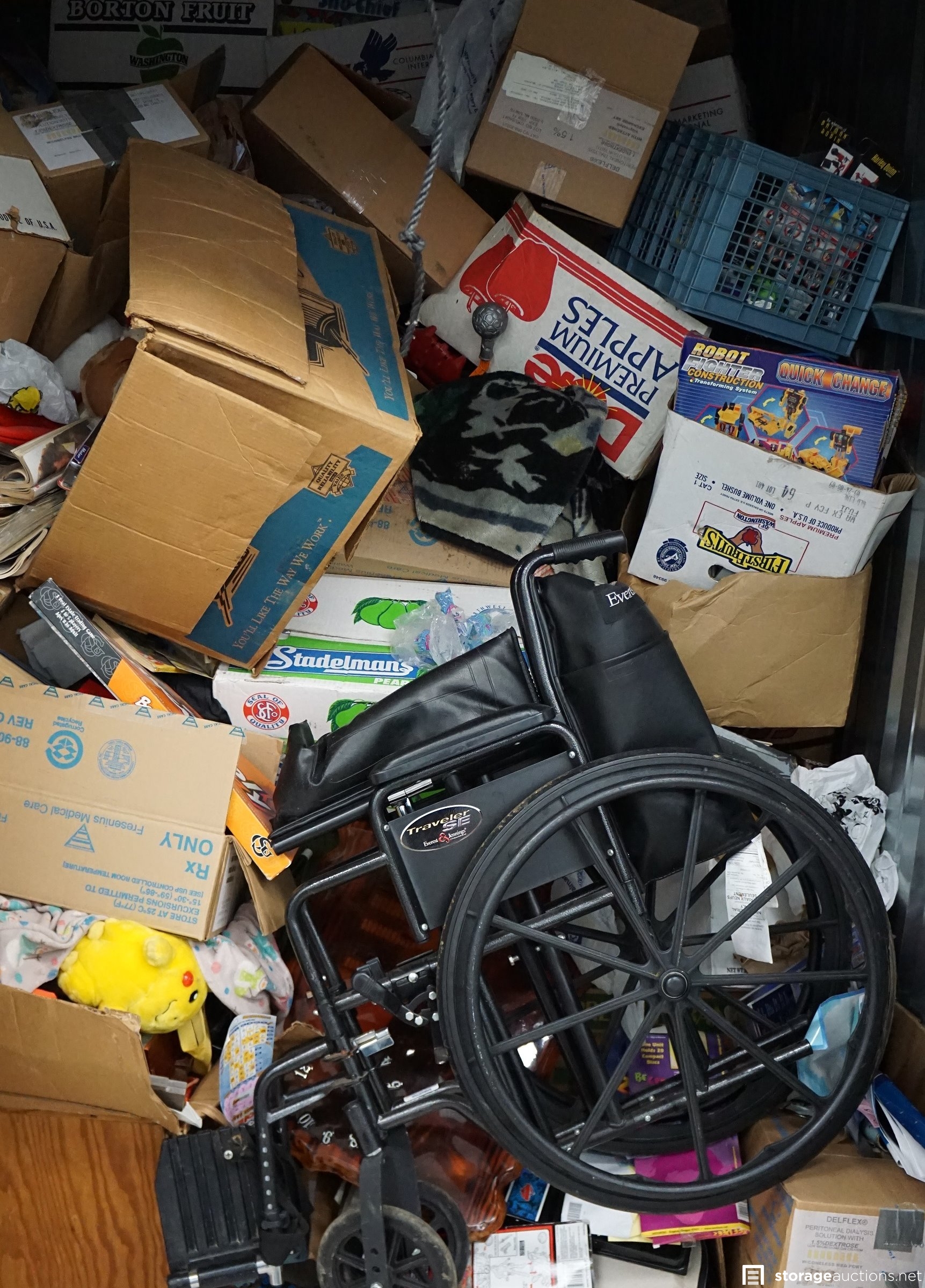 Unit appears to contain a wheel chair and lots of boxes of "who-knows-what."