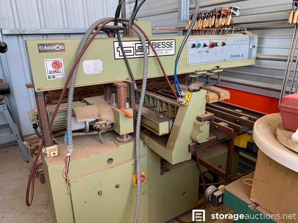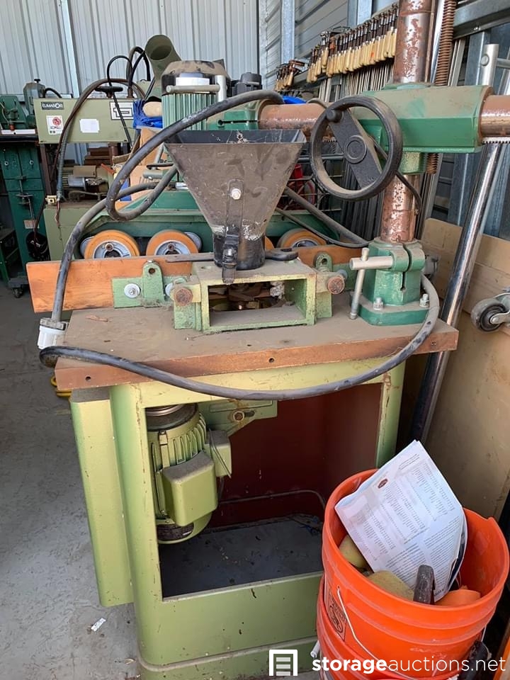 Additional Terms: There will be a 15% buyers premium on the winning bid, 10% will be collected by this platform and the additional 5% will be due 24 hours after the auction. Removal will be seven days after auction, A $500 cash cleaning deposit is required and will be refunded after space has been cleared out The seller has two private units being stored at Kalmia RV. The units contain commercial woodworking equipment. There will be a $500.00 cash cleaning deposit required. <hr> First Unit 1 Biesse N131/85 Forecon 1985 2 Birch Sheets 3 CEHISA Edgebanding Machine Made by Aswood Corp 4 Clamps, 4', 53 pieces; Miscellaneous sizes 1'-2', 40 pieces 5 Grizzly Bandsaw w/blade 18" 2 horsepower Serial Number 2066 Model ST-W8S180 6 Grizzly Router machine Class IP54 Serial 3222 Serial Number 0636725 Model TY-330A 7 Drum Sander 4 ft. Halsty Falk Motor 8 Hole Punch Rayco Model RSK 110 v 9 Mac Chainsaw 10 Pine Lumber 11 Poitras Table Saw Serial Number TS12179208 Model TS121 12 Sandler mini drum Williams & Hussey Molder SN 19088 13 Walnut Boards: 100 pieces varying widths 2 3/4 - 3 1/2, length 49 1/2" 14 Youba Double Vacuum Dust Collector 15 Youba Single Vacuum Dust Collector Second Unit 16 Large Central Machinery 13" Drill Press 16 speed 230 rpm Serial Number 0412060139 Model 38142 17 Oak & Maple crown molding 14 pieces 18 Delta Hollow Chisel Mortiser for special wood fine holes Serial Number 9718 Model 14-650 Type 2 19 Delta straight edge jointer Serial Number 822 Model 37150 20 Door Jam Templates 21 Finished & Stained Tabletops: 14 ea 38"x38"x1 3/4" 4 ea 38" x 52" x 1 3/4"; 4 ea 5" Round 22 Large Lumber Stack 23 Pipe clamps. Assorted sizes, 30 pieces 24 Birch Planks: 17 pieces 6"-8" width, 96" length, 1 1/4" thick 25 Small clamps 26 Drawer/cabinet panels stained: 25 ea 23"x23"x3/8; 5 ea 15 3/4"x15 3/4" 27 Dual Tank Compressor Portable Not in storage units, in garage 28 SCM SI 16 WA Sliding Table Saw Serial Number AB74665 29 Delta 8" Professional Jointer Delta Professional Jointer Model 37-380 30 Vacuum Dust Collector 31 Freud 1/2" Router Model FT 2000E freud FT2000E router