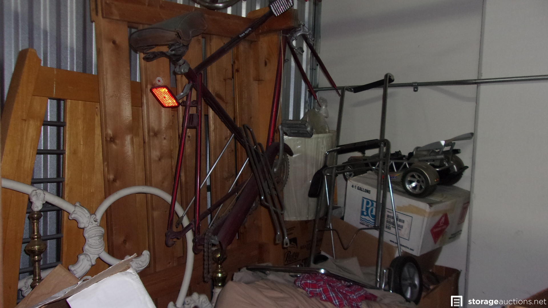 WOOD HEAD BOARD, SMALL OLD T.V. , TOYS CARS, LAMP. BICYCLE PARTS. BOXES, ELECTRICAL MACHINE, COOLER, DRESSERS, BOOTS, TOOL BOX.