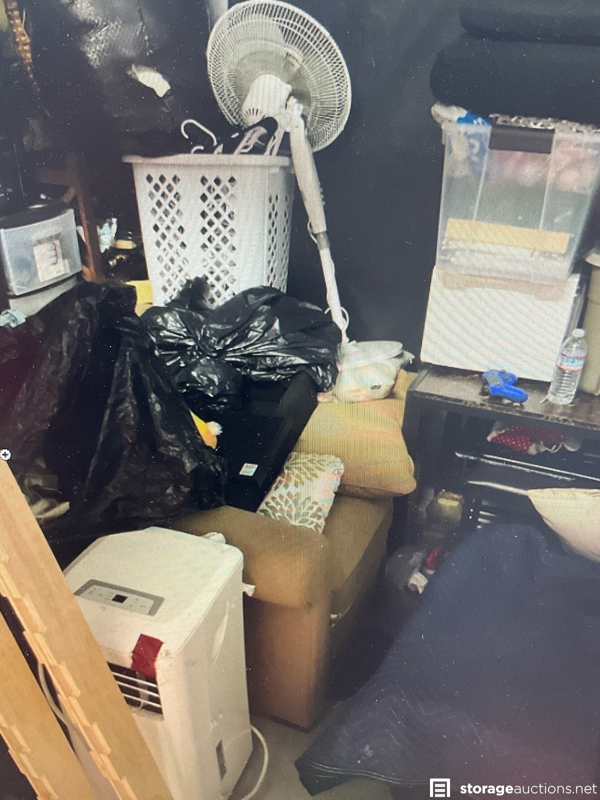 Plastic Totes, Paint Sprayer, A/C Unit, Couch, Shelf, Fan, Hamper,Black Plastic Bags, Paint Supplies, Shoes,Table, Microwave, Picture,Loveseat, Toaster, Mini Shop Vac