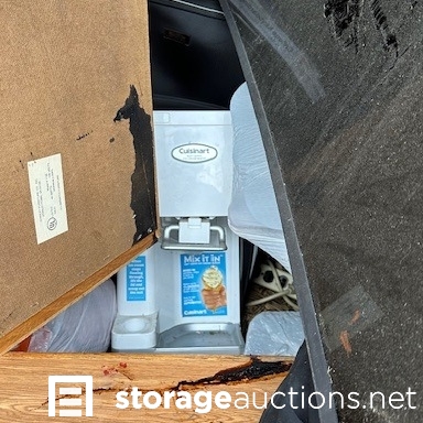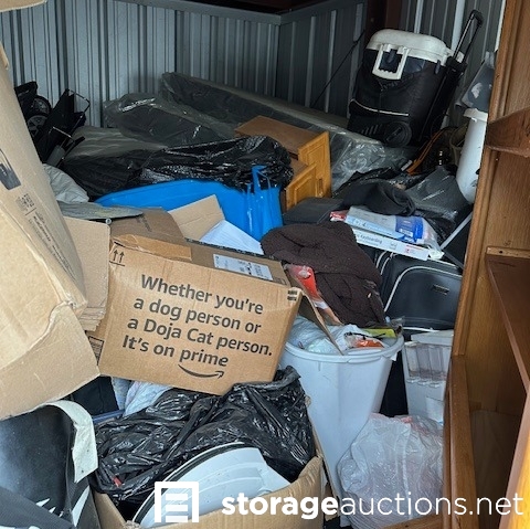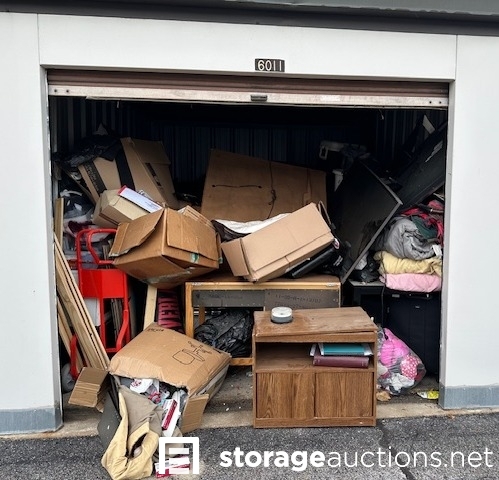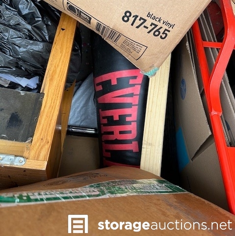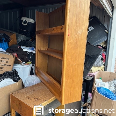 This unit is full - it has a wooden desk with top shelf, TV stand, stroller, mattresses, cooler, 2 flat screen TV's, punching bag, 2 microwaves, dollie, and lots of boxes is what we can see!