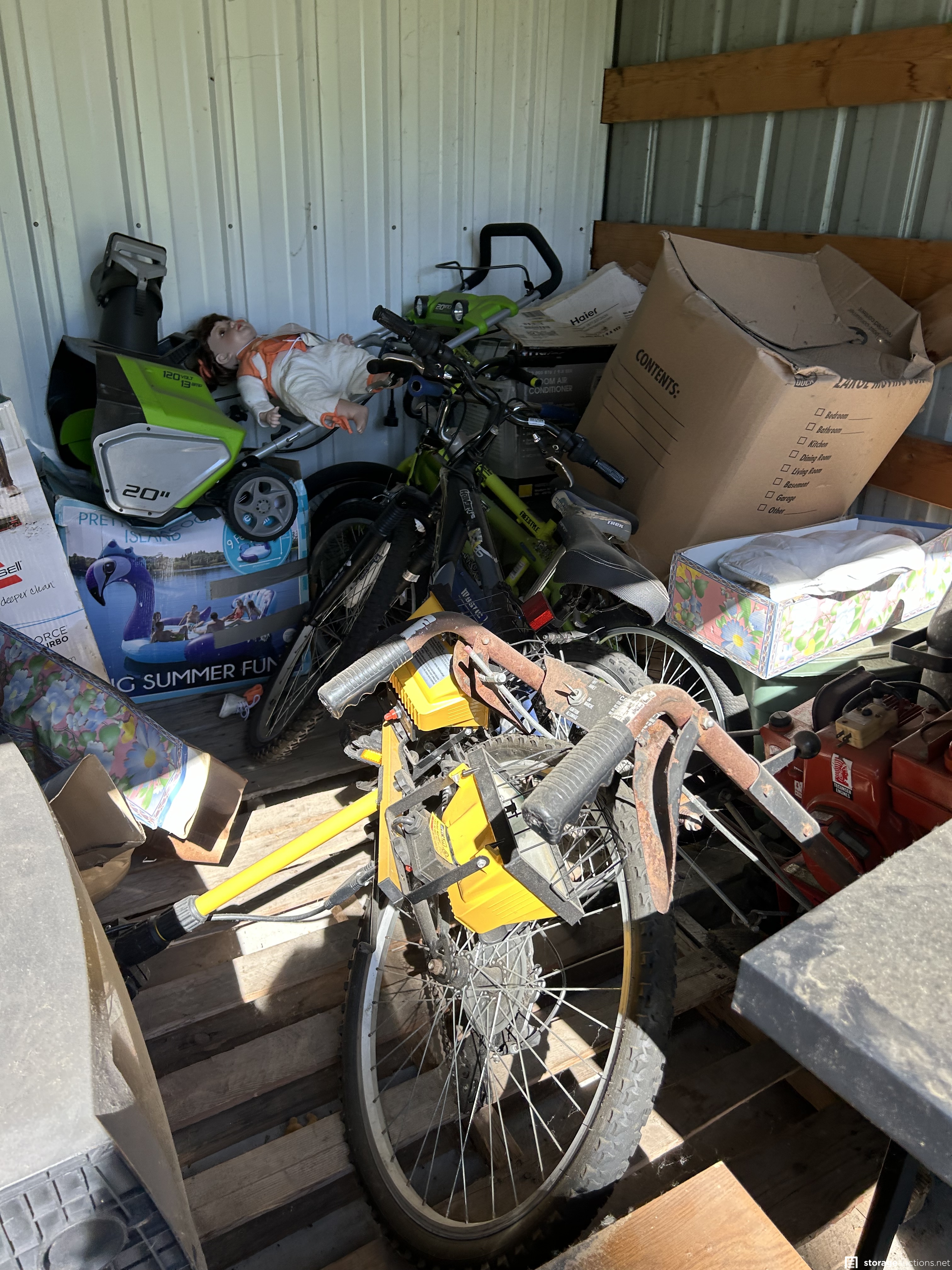 Microwave, toro snowblower, Murray weed whacker, electric snow thrower, full size cot frame, Hyper bicycle, kids Trek bicycle, ES20 Freestyle kids bicycle, collectible dolls, room, air conditioner , fog machine, Halloween decorations, gas grill, baseball cards, old camcorders