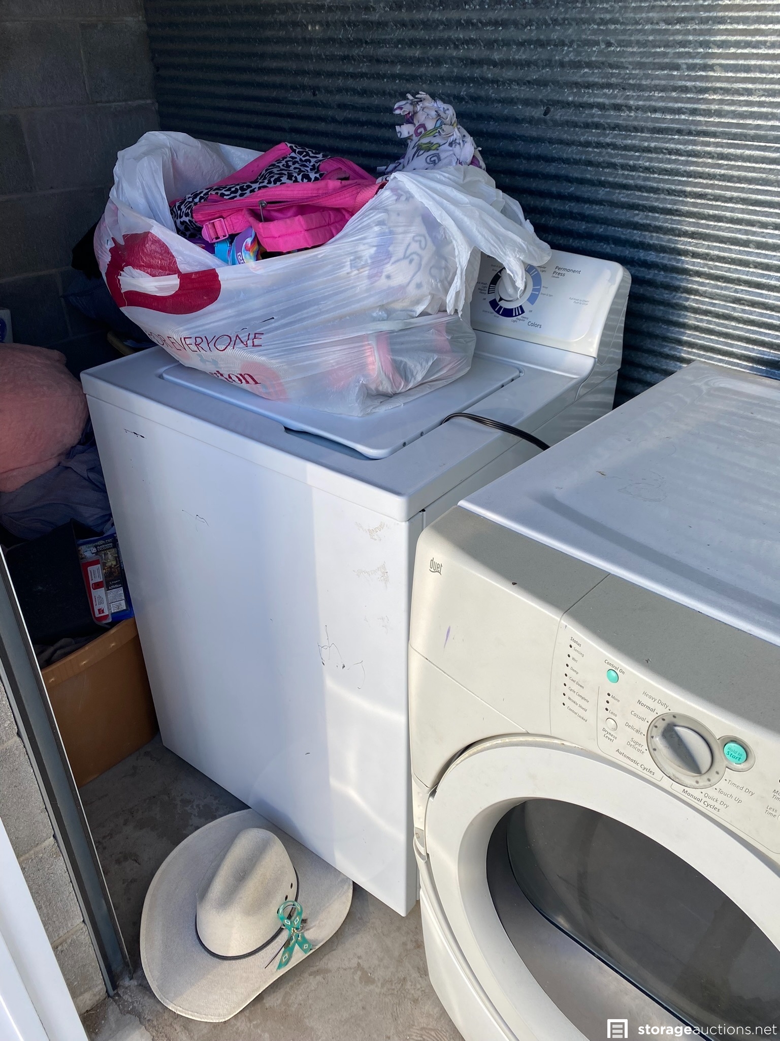 Washer and dryer, cowboy hat, Play Station 4 games, kids toys and various household goods.