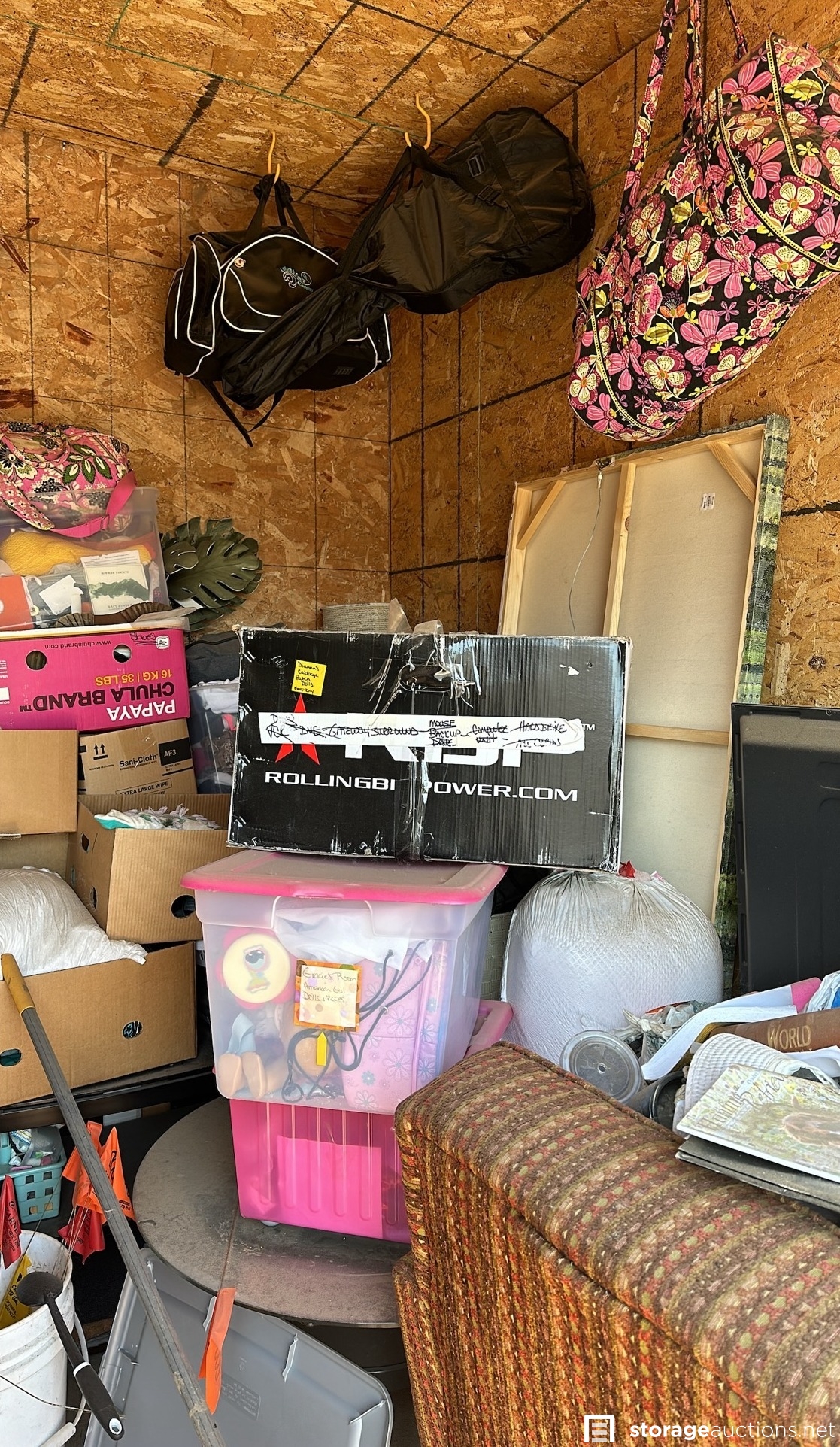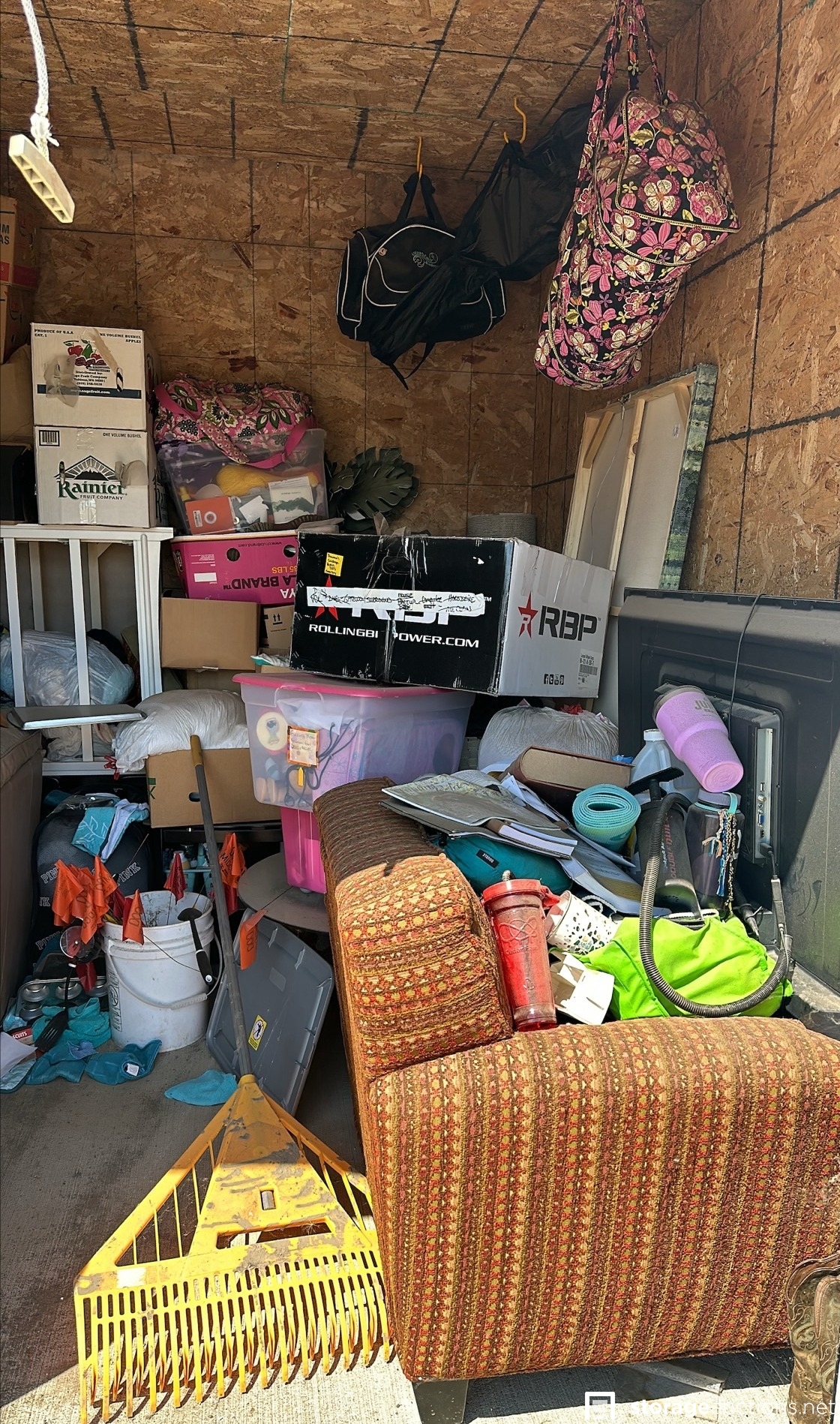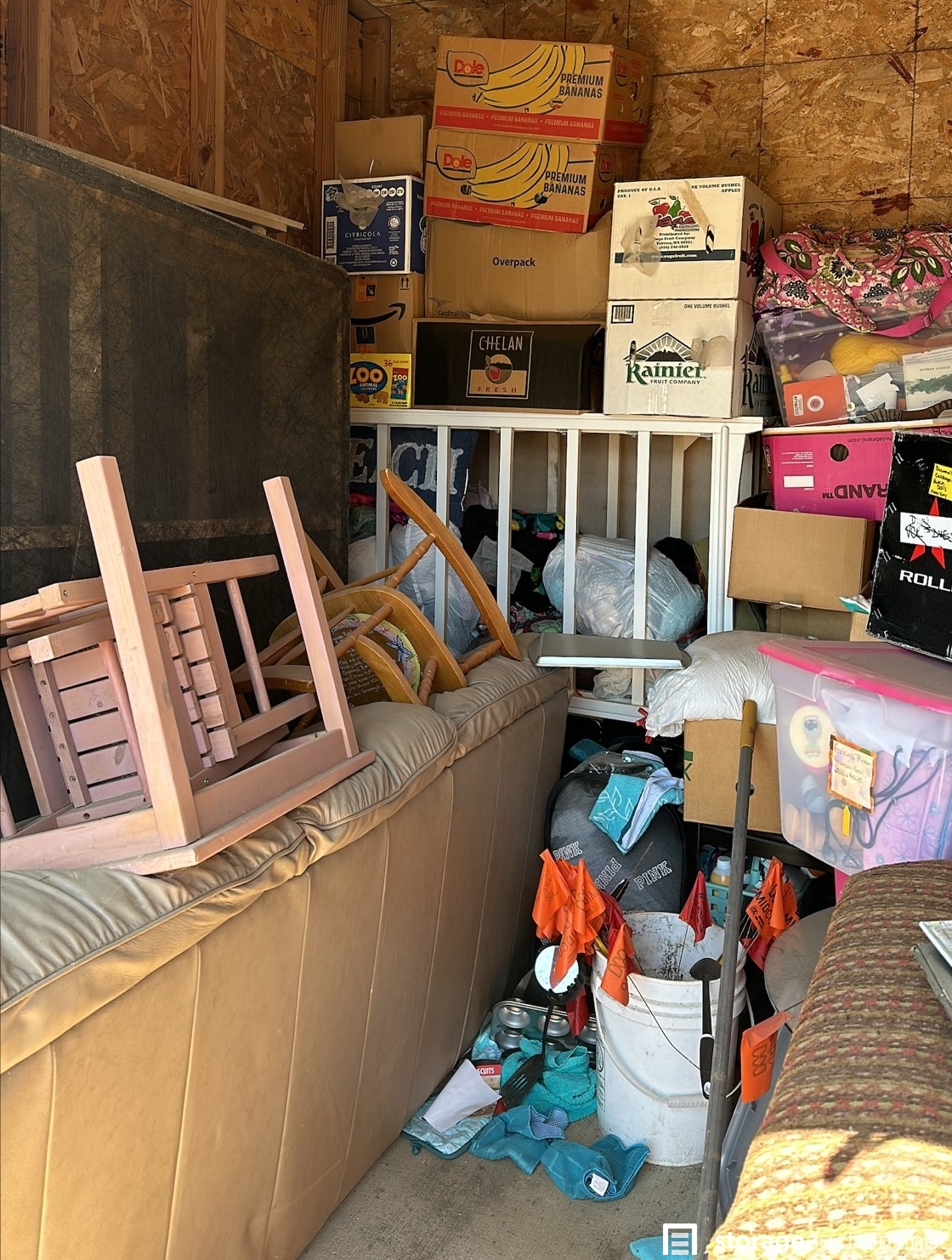furniture including couches, mattresses, and children's chairs. Electronics, clothing, and various household goods