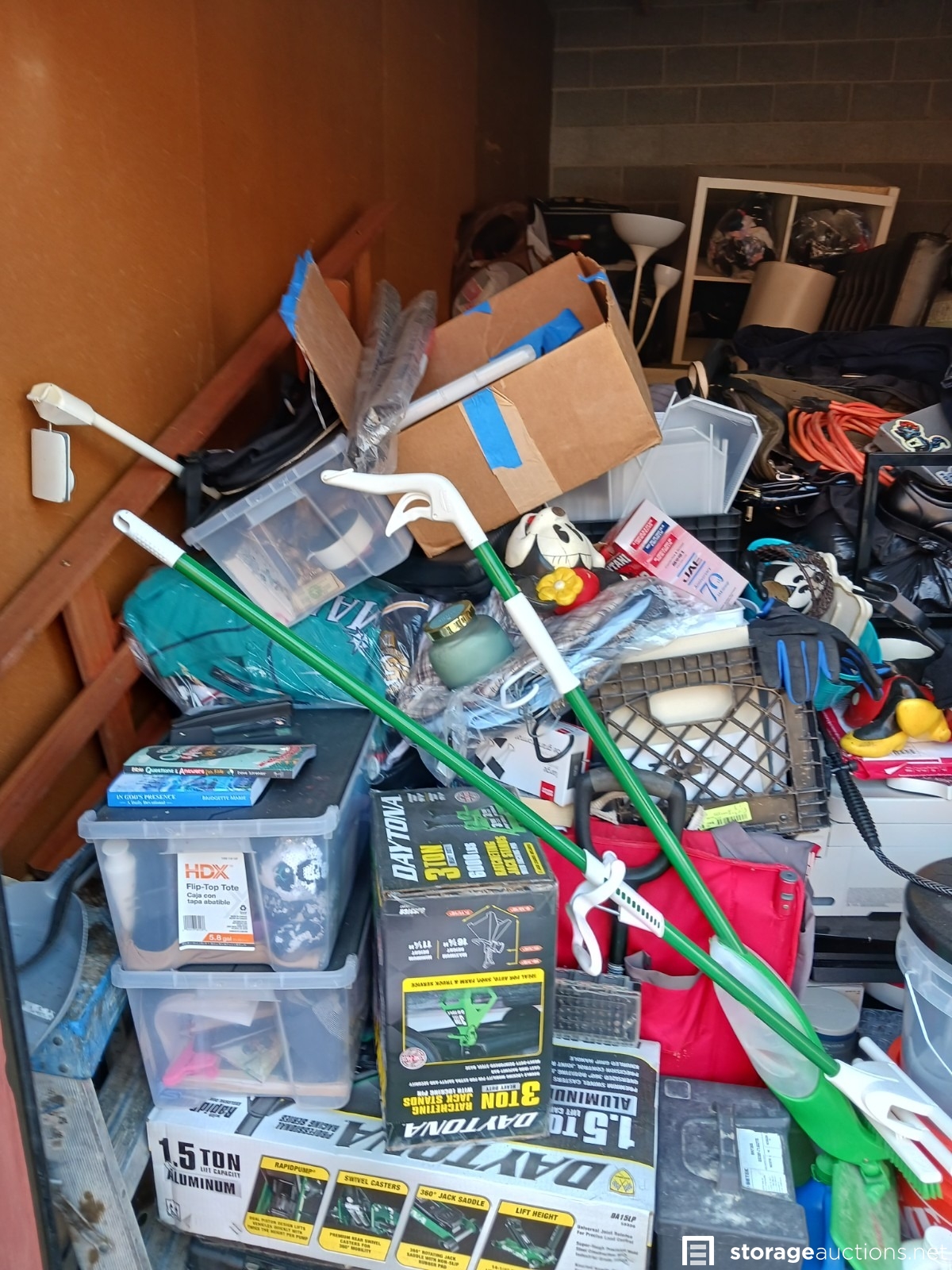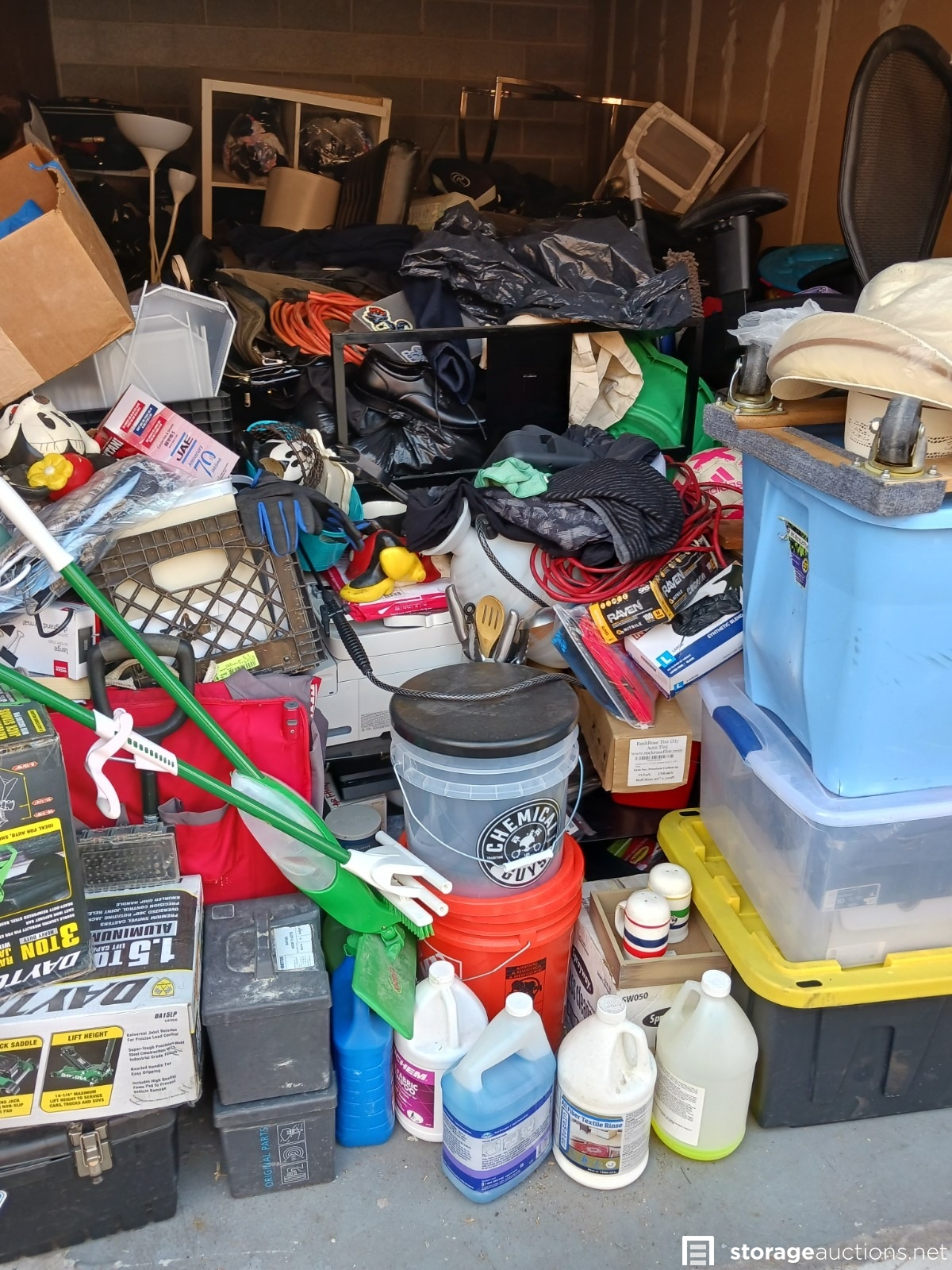 Household goods, floor jack, mickey mouse collectibles, bikes, rolling cart, suitcases, toys, sports memorabilia, clothing and misc tools