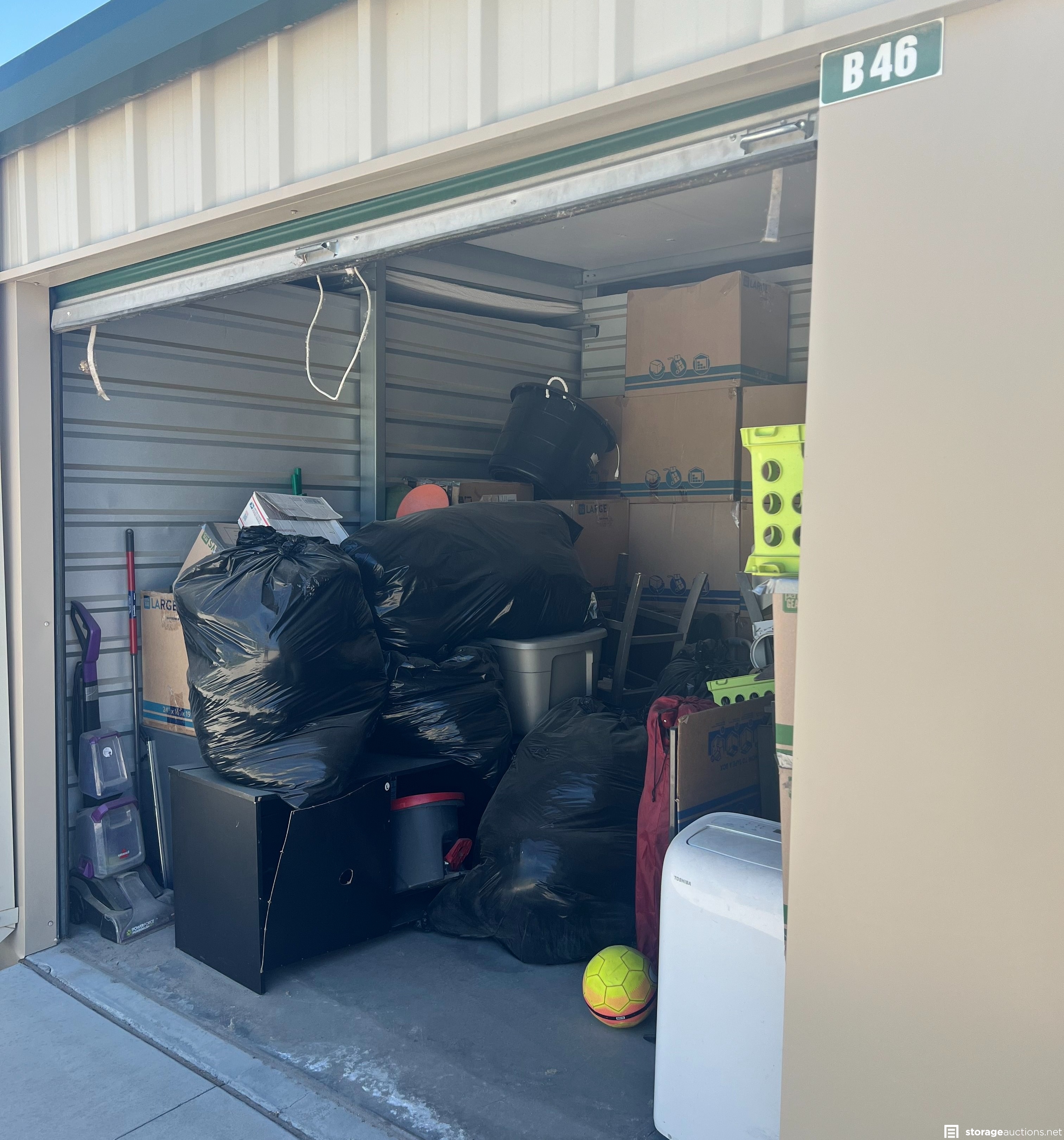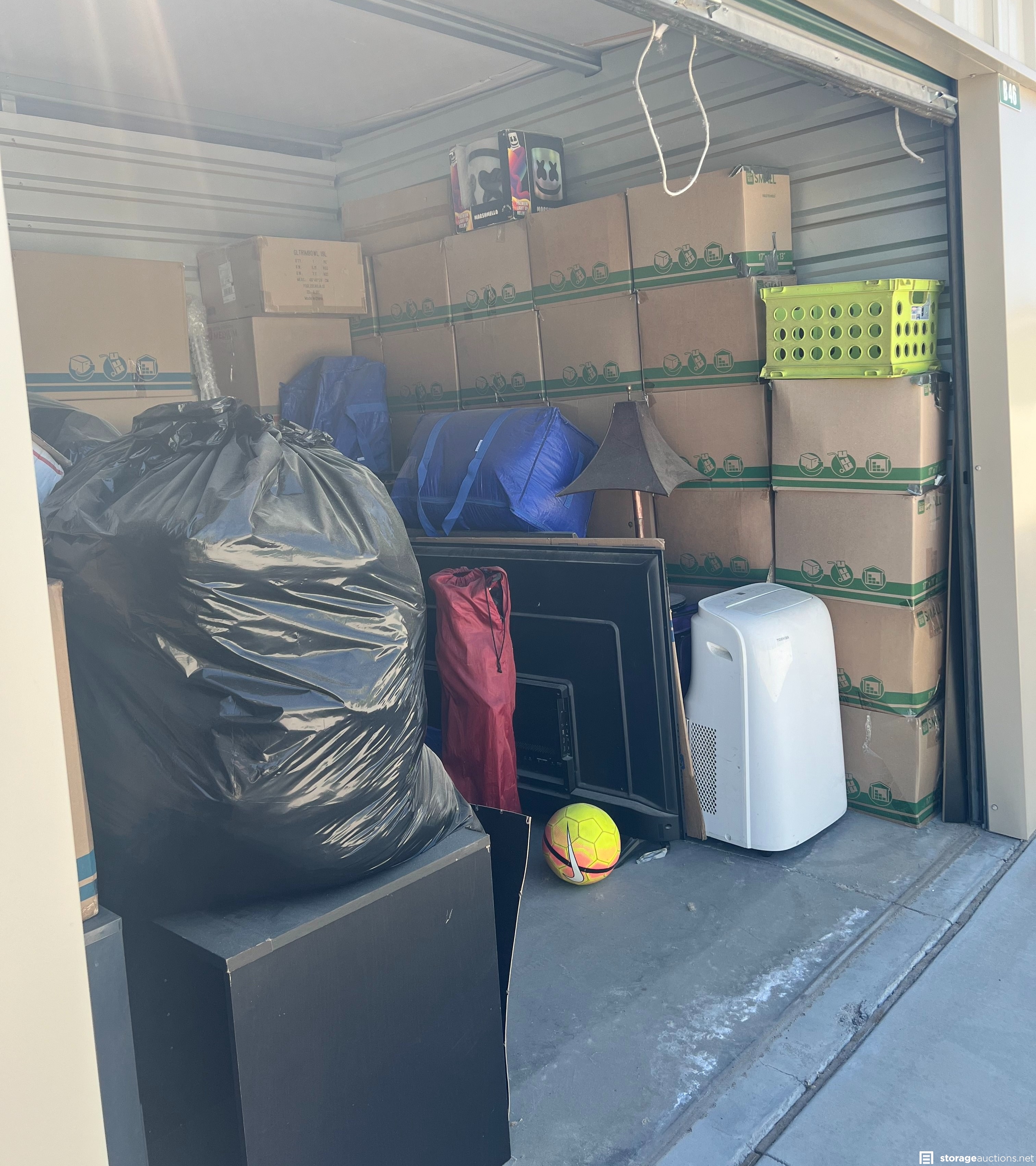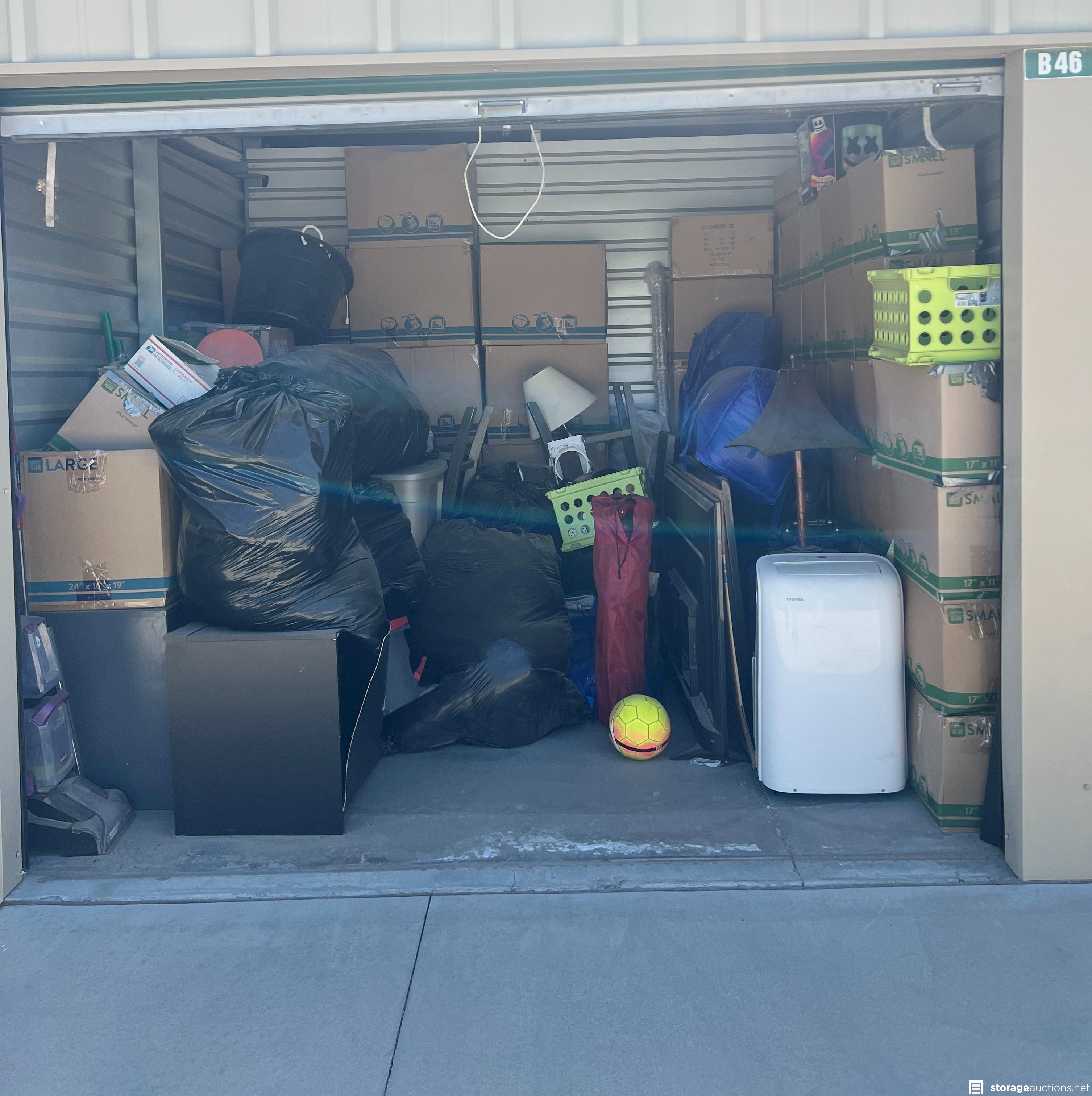 Additional Terms: **NOTICE - Defaulted tenant has legal right to cure account, thus cancelling the auction, up until cash payment is received from the winning bidder.** Buyers must be 18 years old to bid and pay winning bid. Winning bidder must pay within 48 hours in person. Cash or money order only. $300 deposit. If paying with money order, deposit must be on a separate money order. Unit must be cleaned out within 72 hours after payment. Deposit will be returned after unit is cleaned out. If unit is not cleaned out after 72 hours, unit will be considered abandoned and deposit will be kept by the storage facility. Must have a paid confirmation and valid photo ID to pick up contents of unit. All sales are final, all sales are AS IS for the entire content of unit, unless otherwise specified. Items containing personal information found with in unit must be returned to the office upon clean-out of the unit. No dumping, No pets allowed. All auction unit(s) are subject to cancellation by the storage facility.