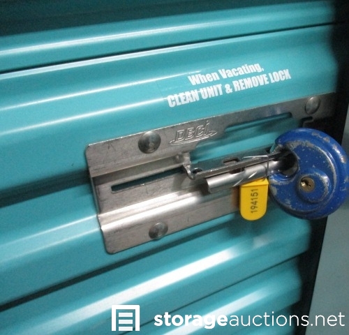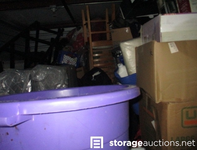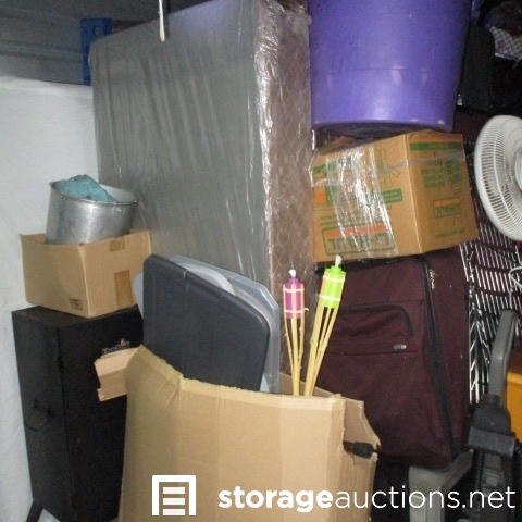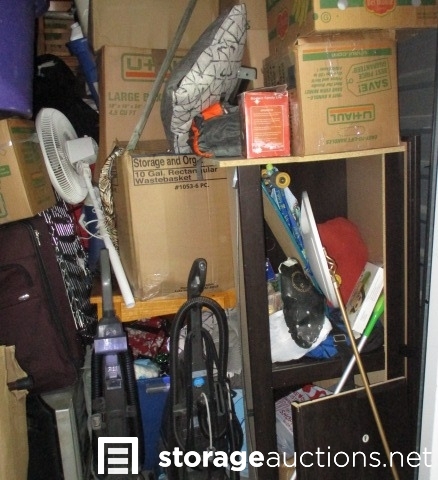 Unit looks to contain: Smoker, boxes, luggage. vacuum, carpet cleaner, tv, chairs