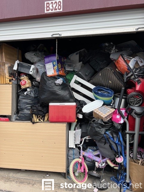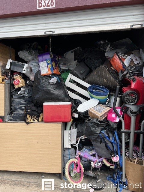 Unit appears to have kids bike and kids car, furniture, exercising equipment, and many odds and ends