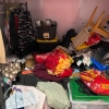 Clothes, Blankets, Furniture, Clothing rack, Car speakers, Solar panels, Storage bins, Vacuum, Outdoor grill.