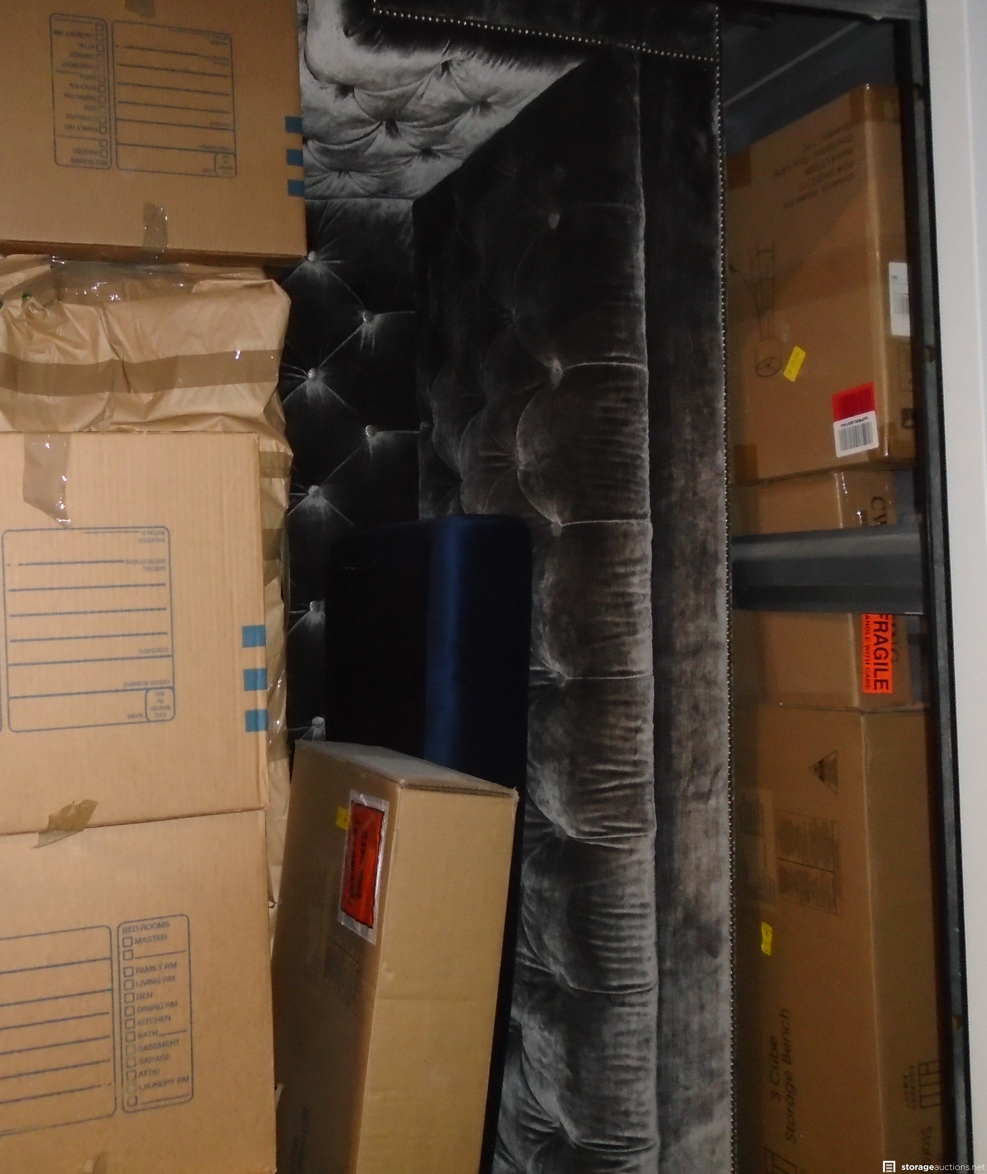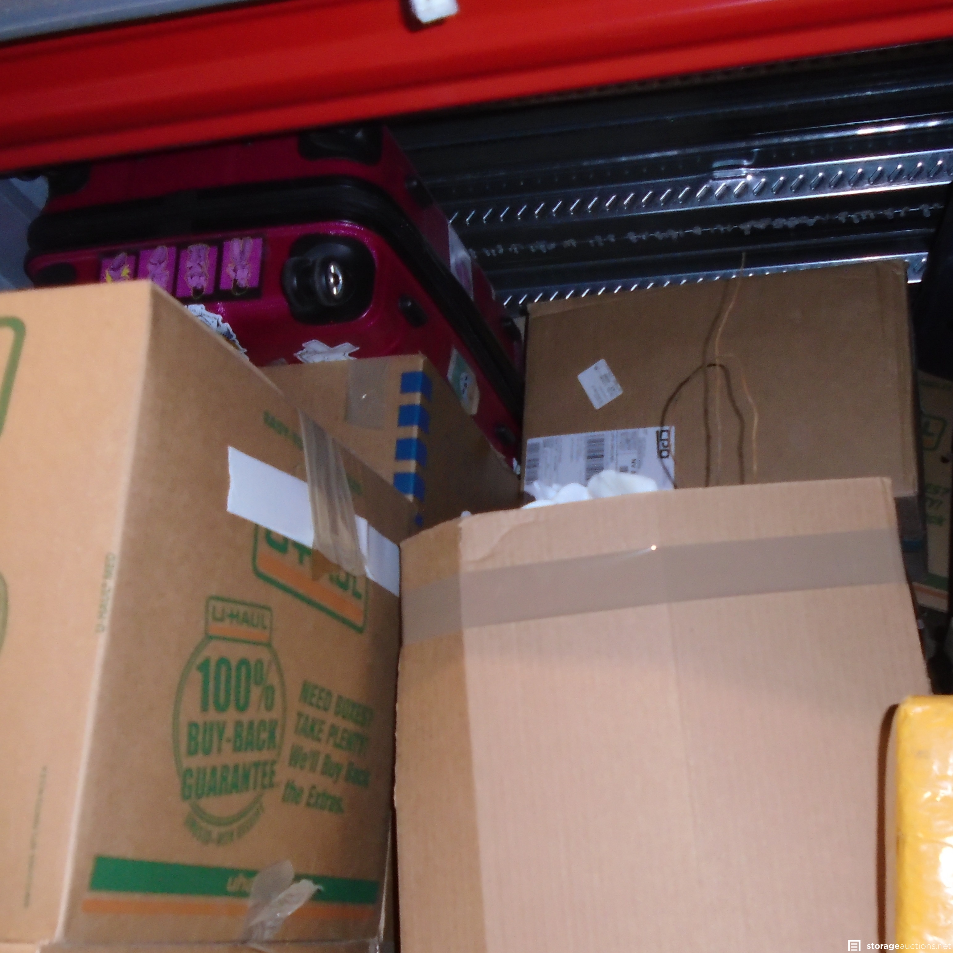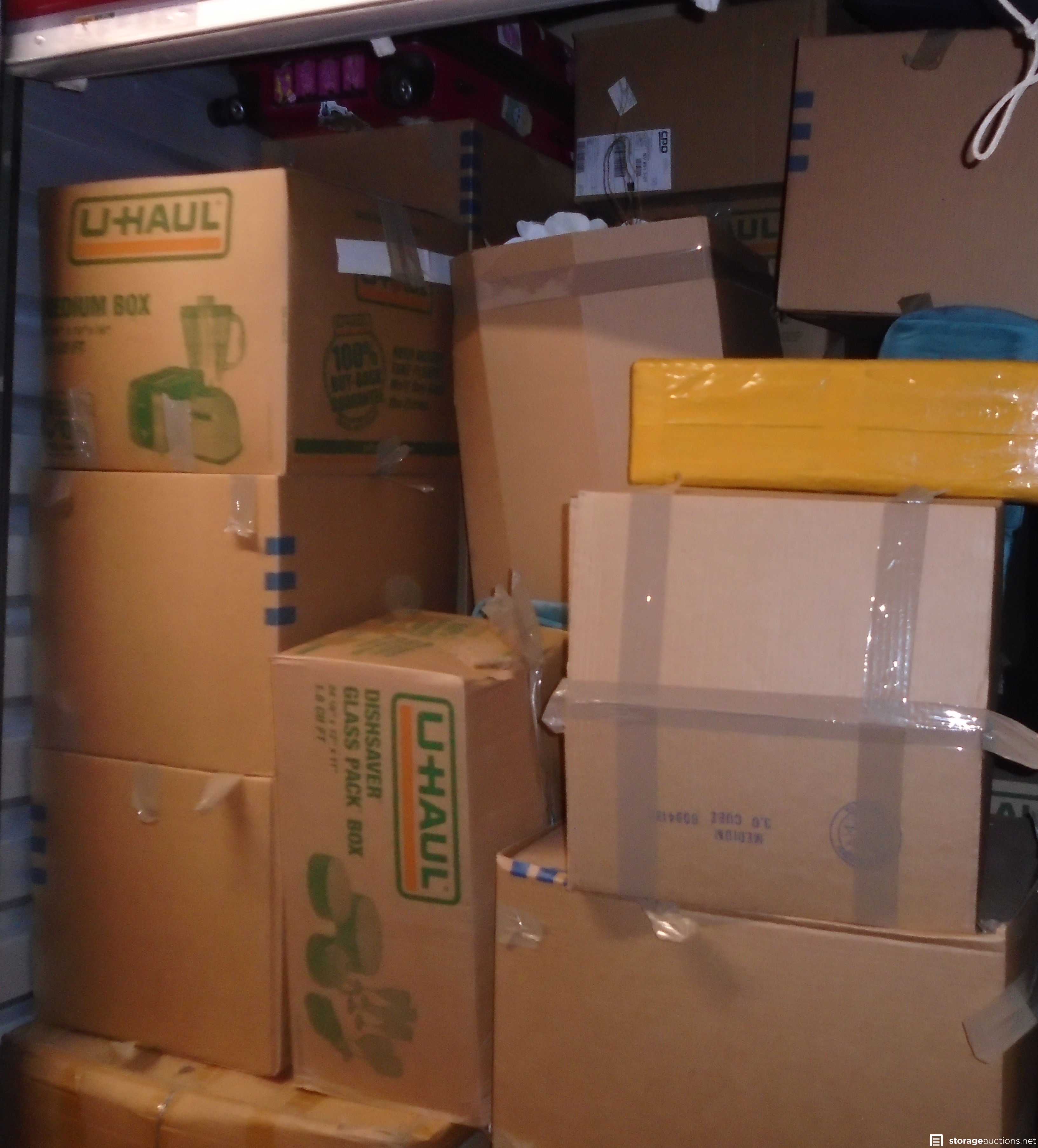Unit is full of boxes. Unit appears to have couch and suitcases.