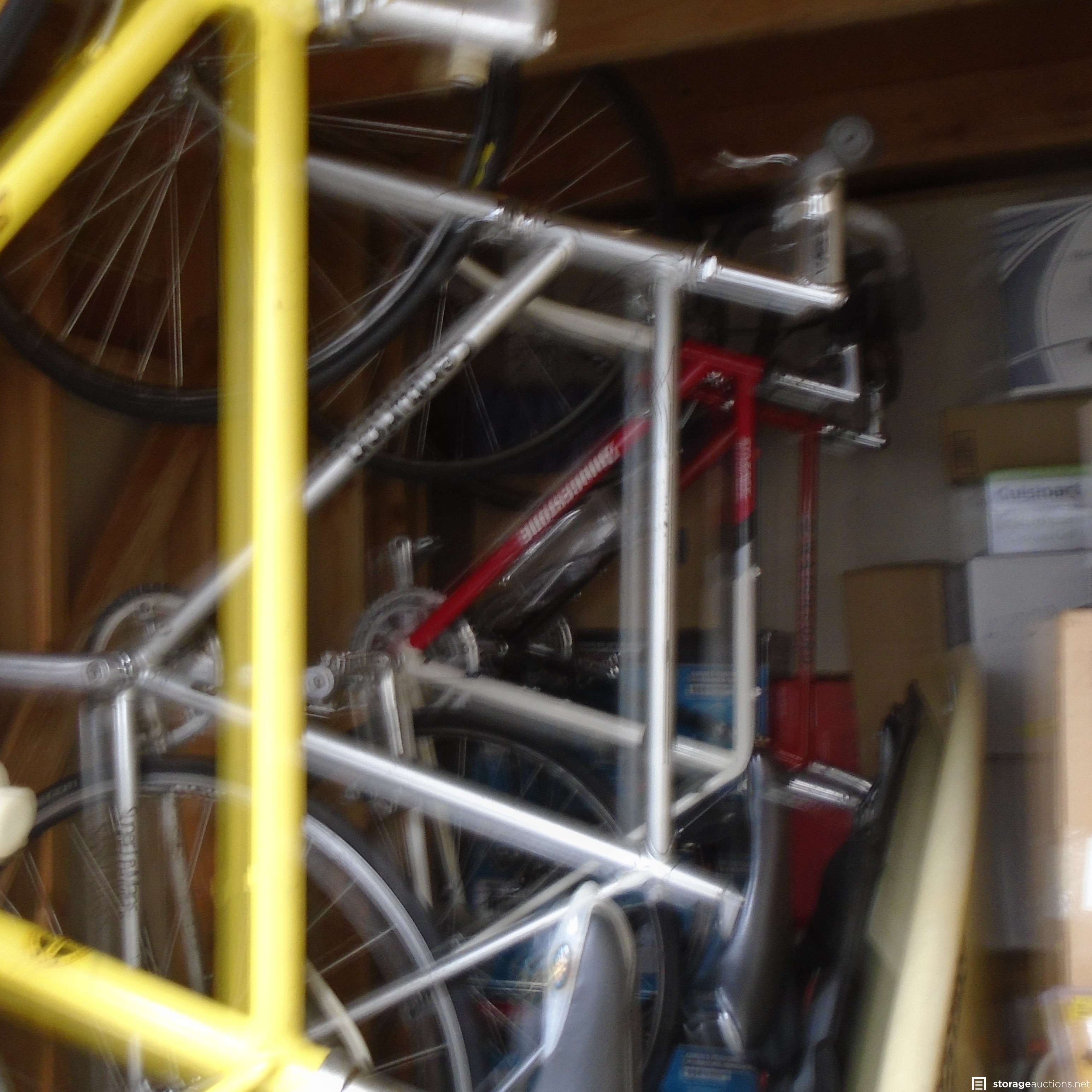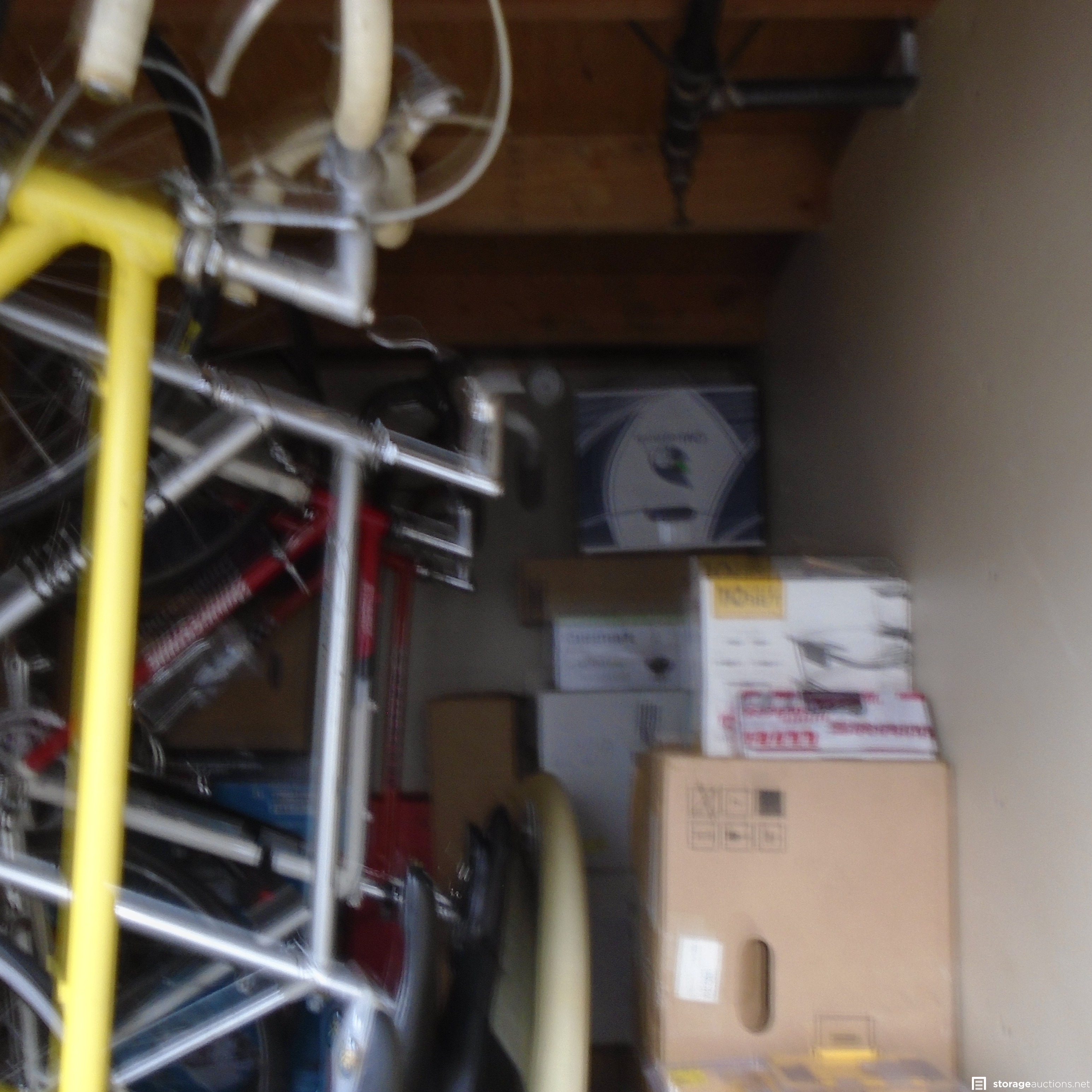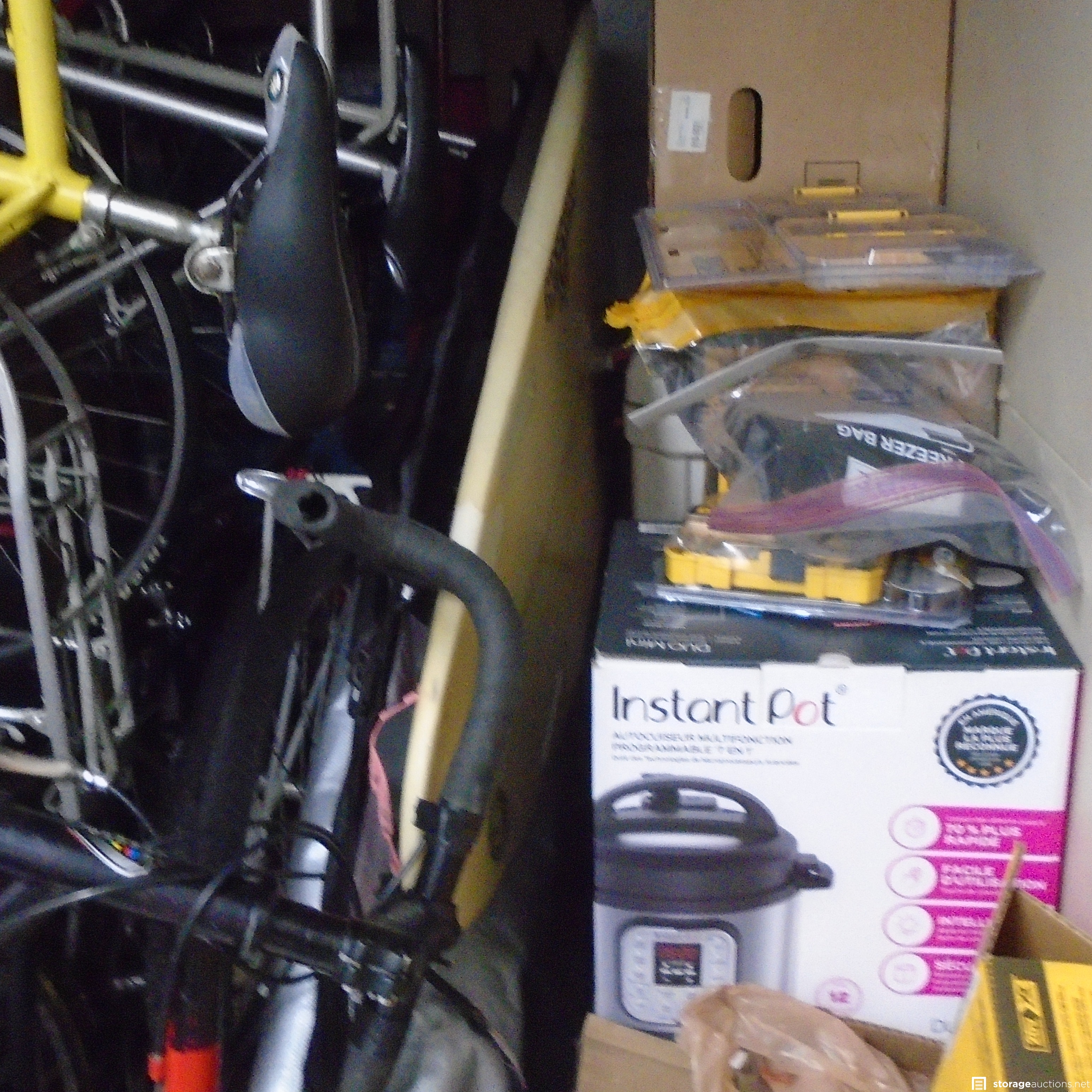 Unit Appears to have many New in the box appliances, tools, power tools, hand tools, tool box, surfboard, boxes, bicycles.