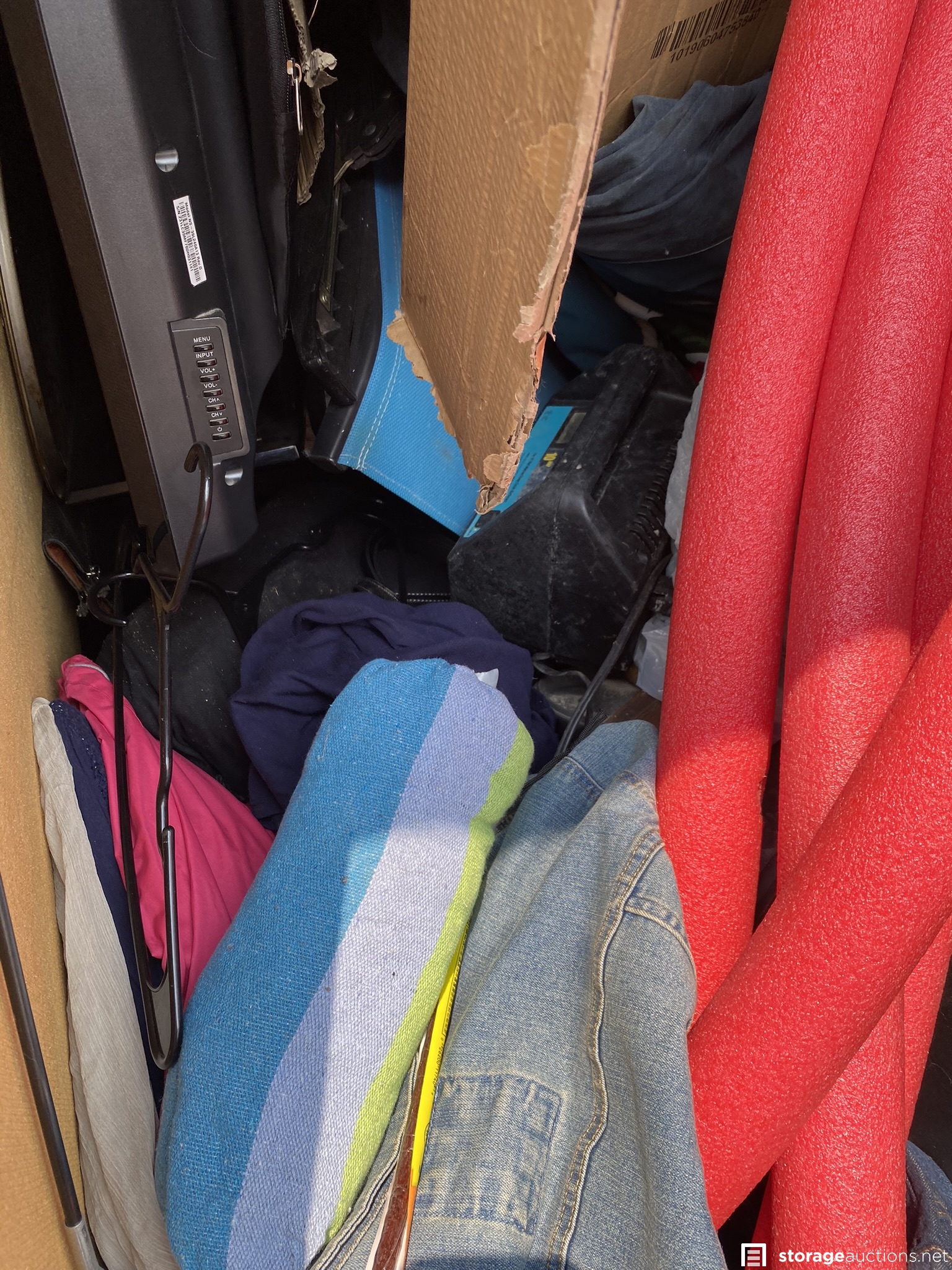Large dresser, TV, tools and various household goods.