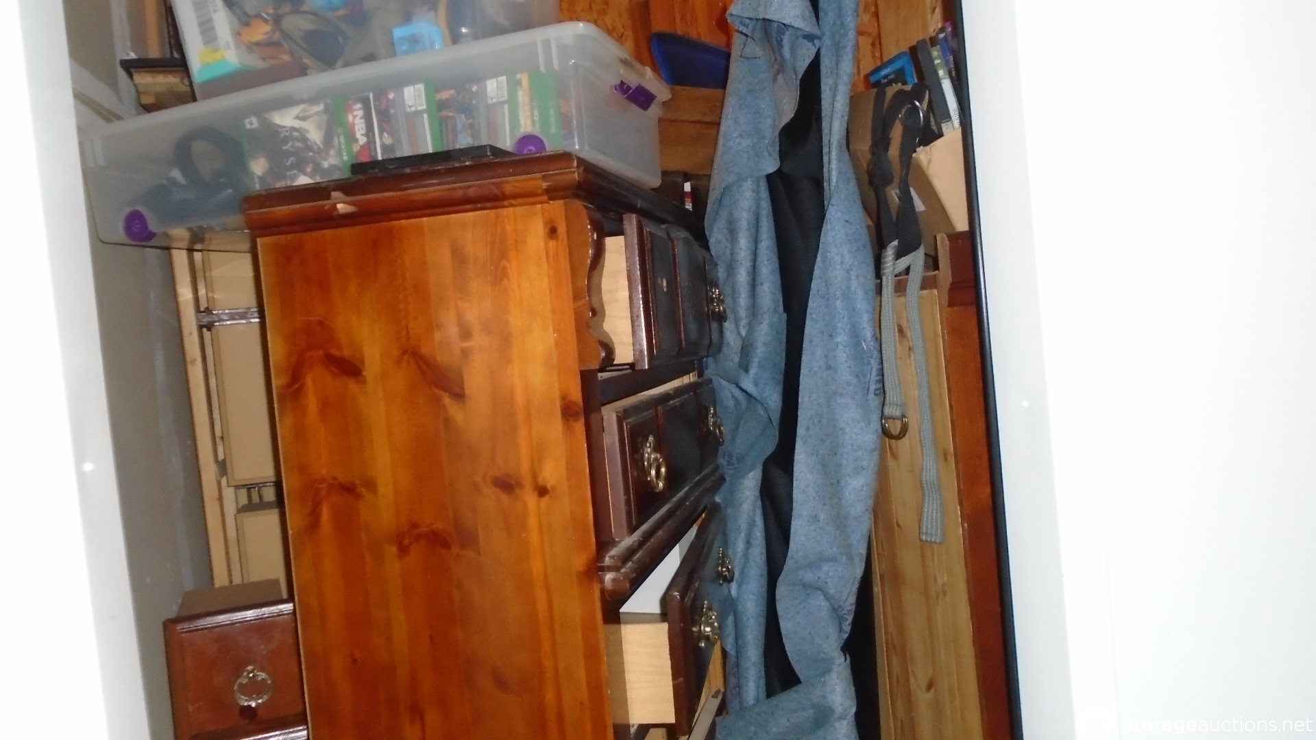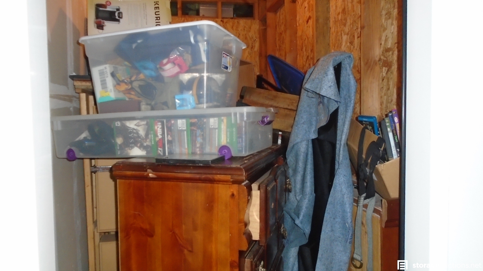 Unit appears to contain: Dresser, Xbox games and controllers, tv stand, fan, boxes and Keurig coffee machine