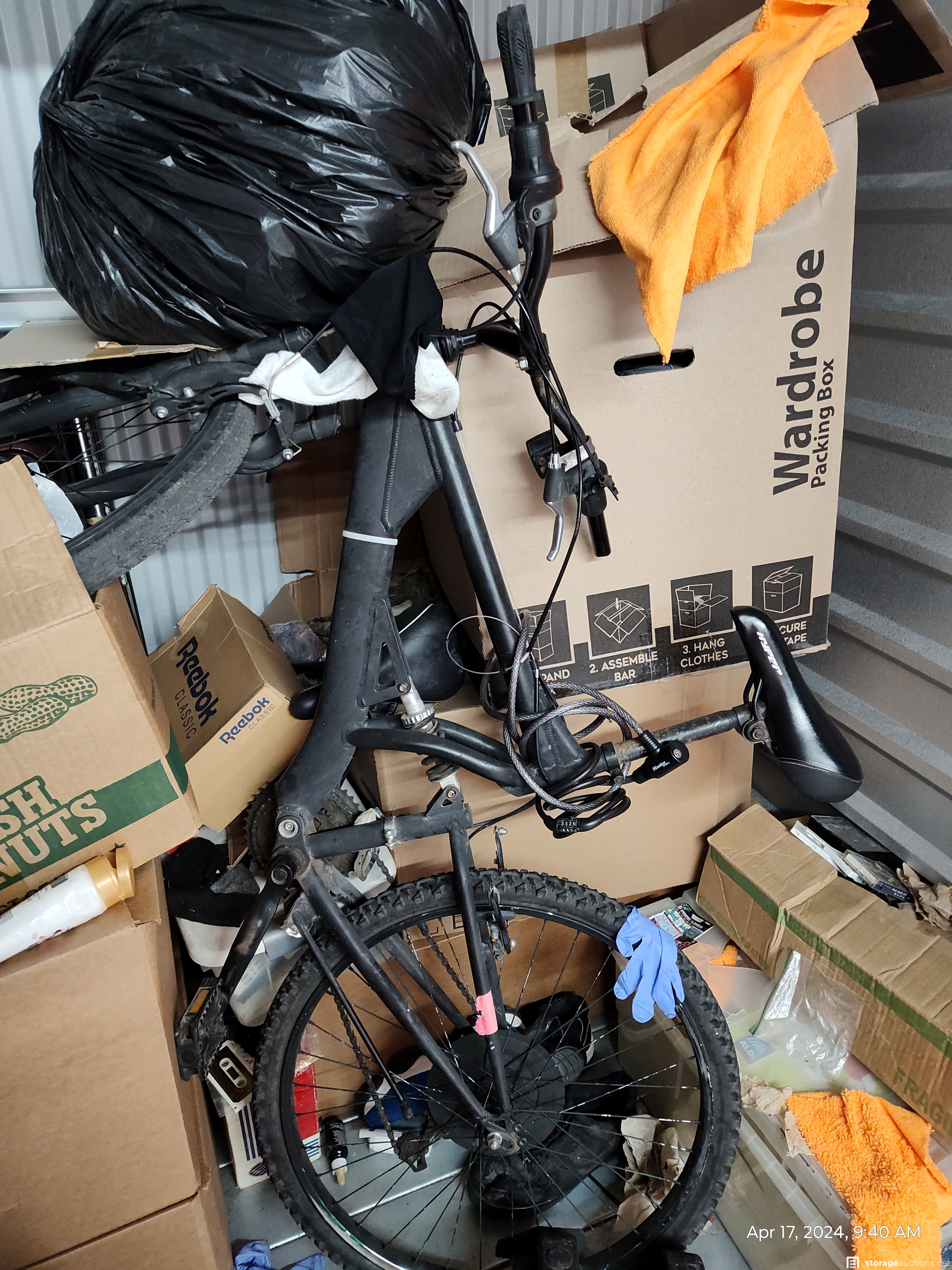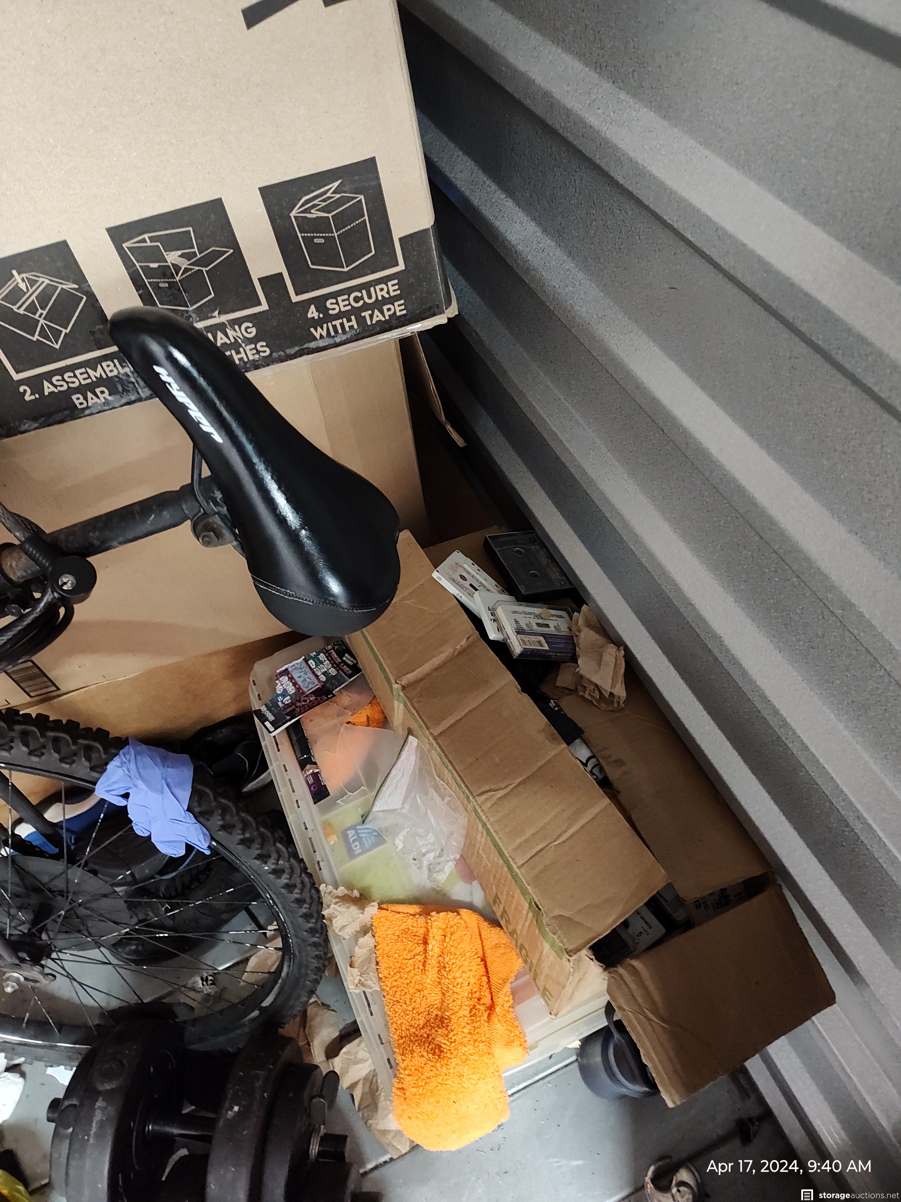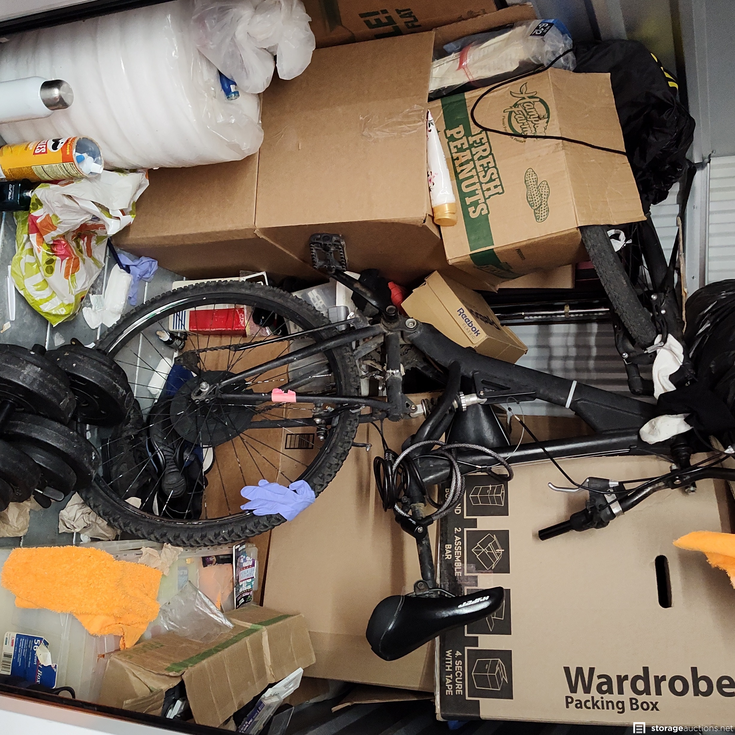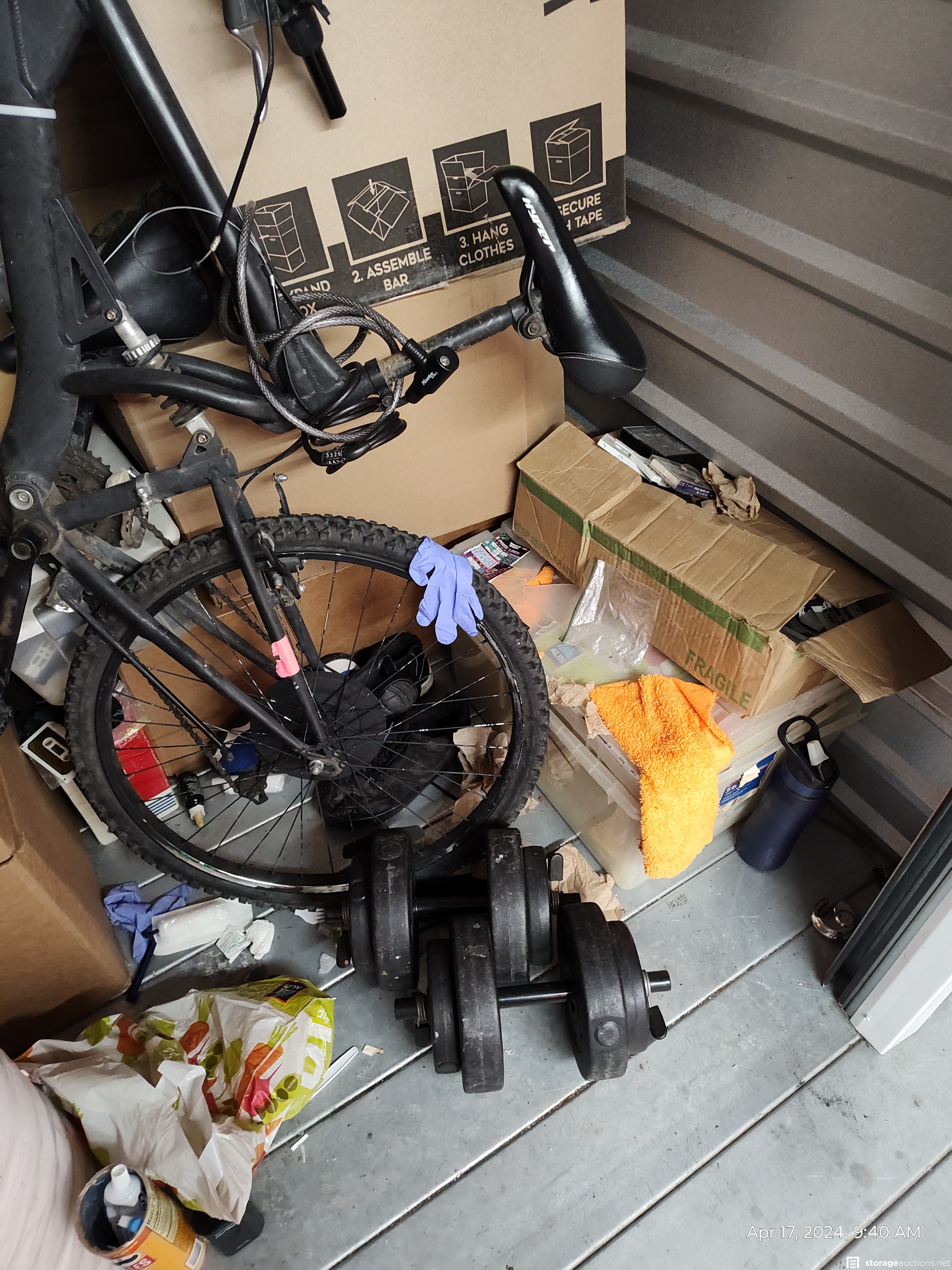 This unit has a mountain bike, Boxes, Weights