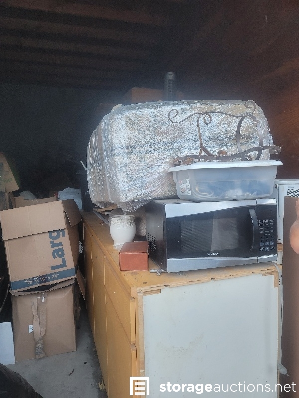 Microwave, Boxes, Totes, File Cabinets, Household Furniture, Chairs, see pictures.