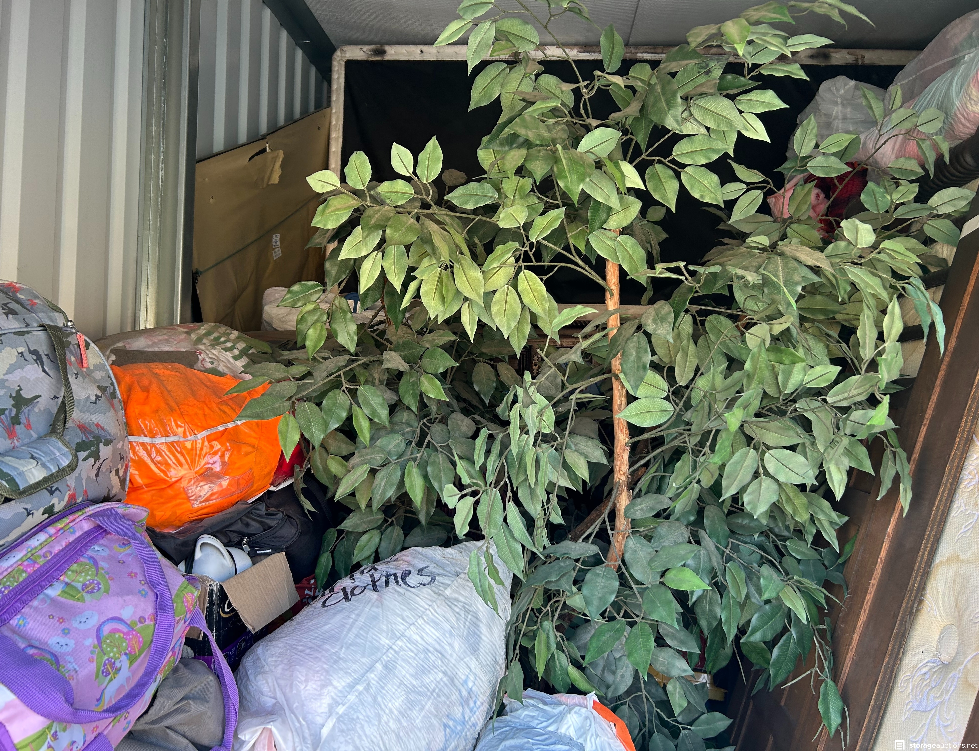 bed set, furniture, fake plants, fan, boxes, bags, hover board, purses, backpacks, dishware, totes, vacuum, wall art,