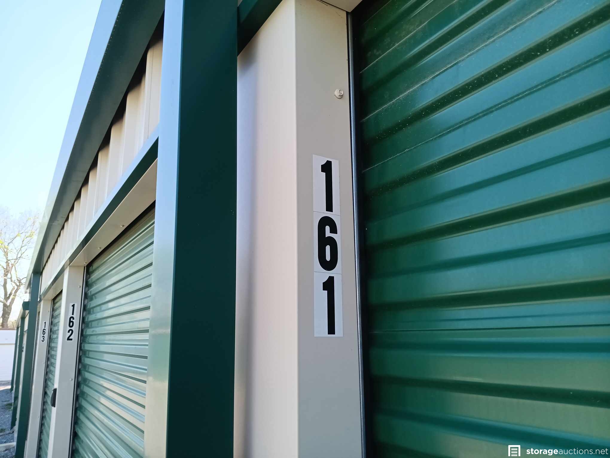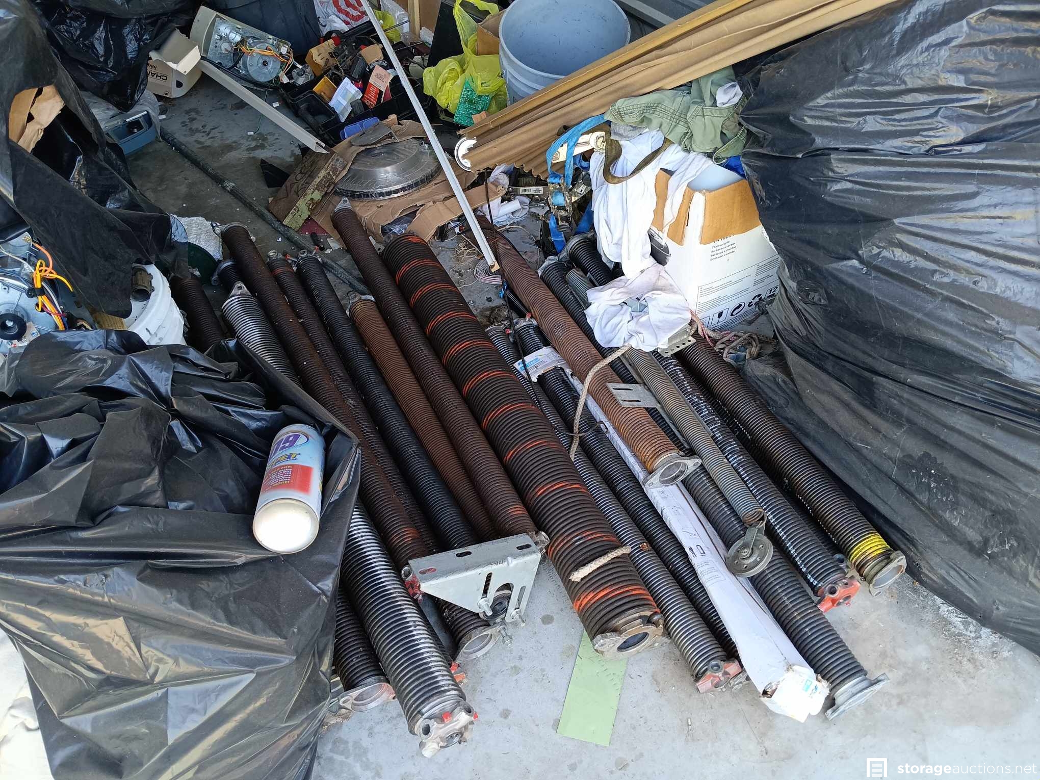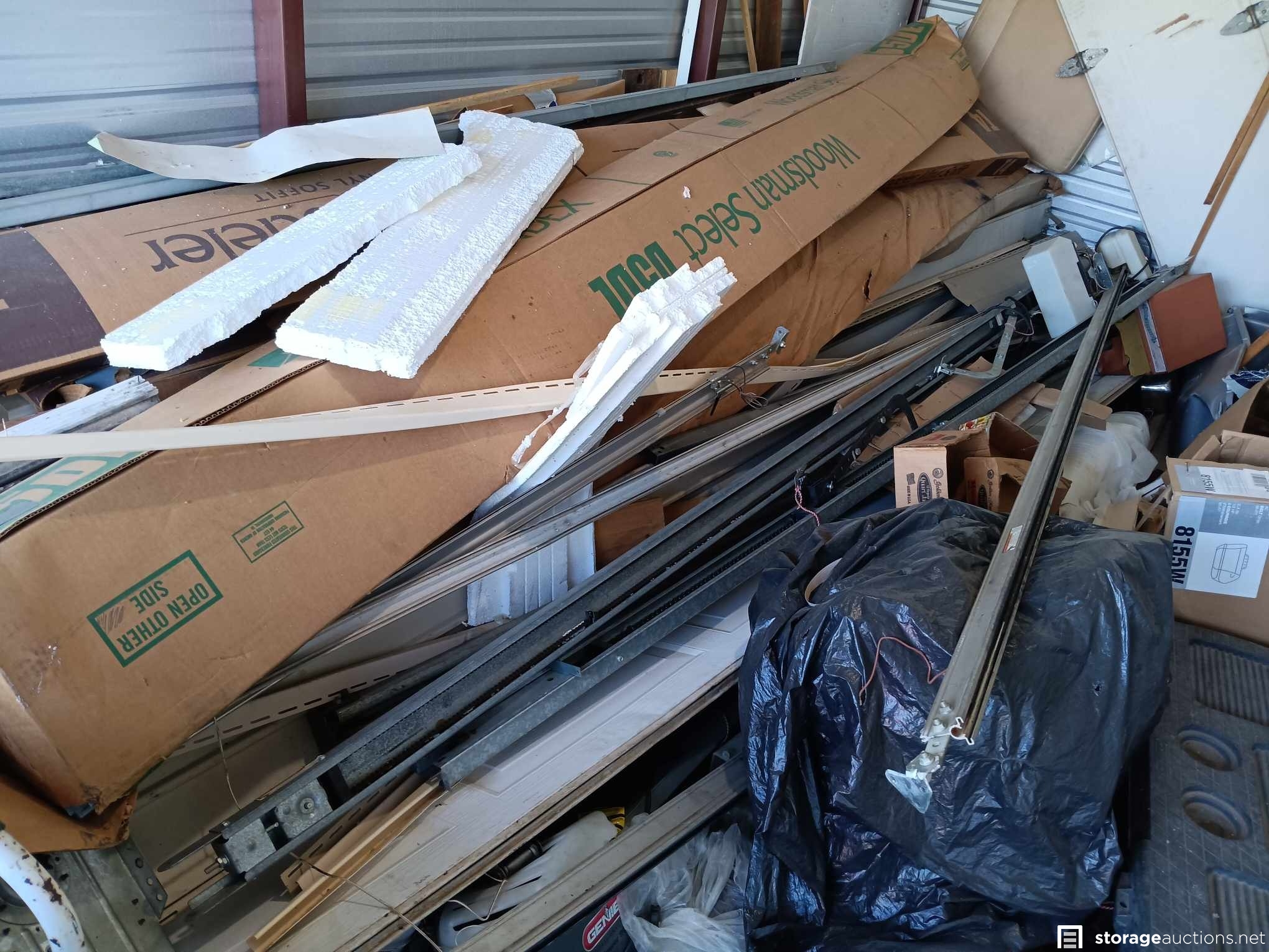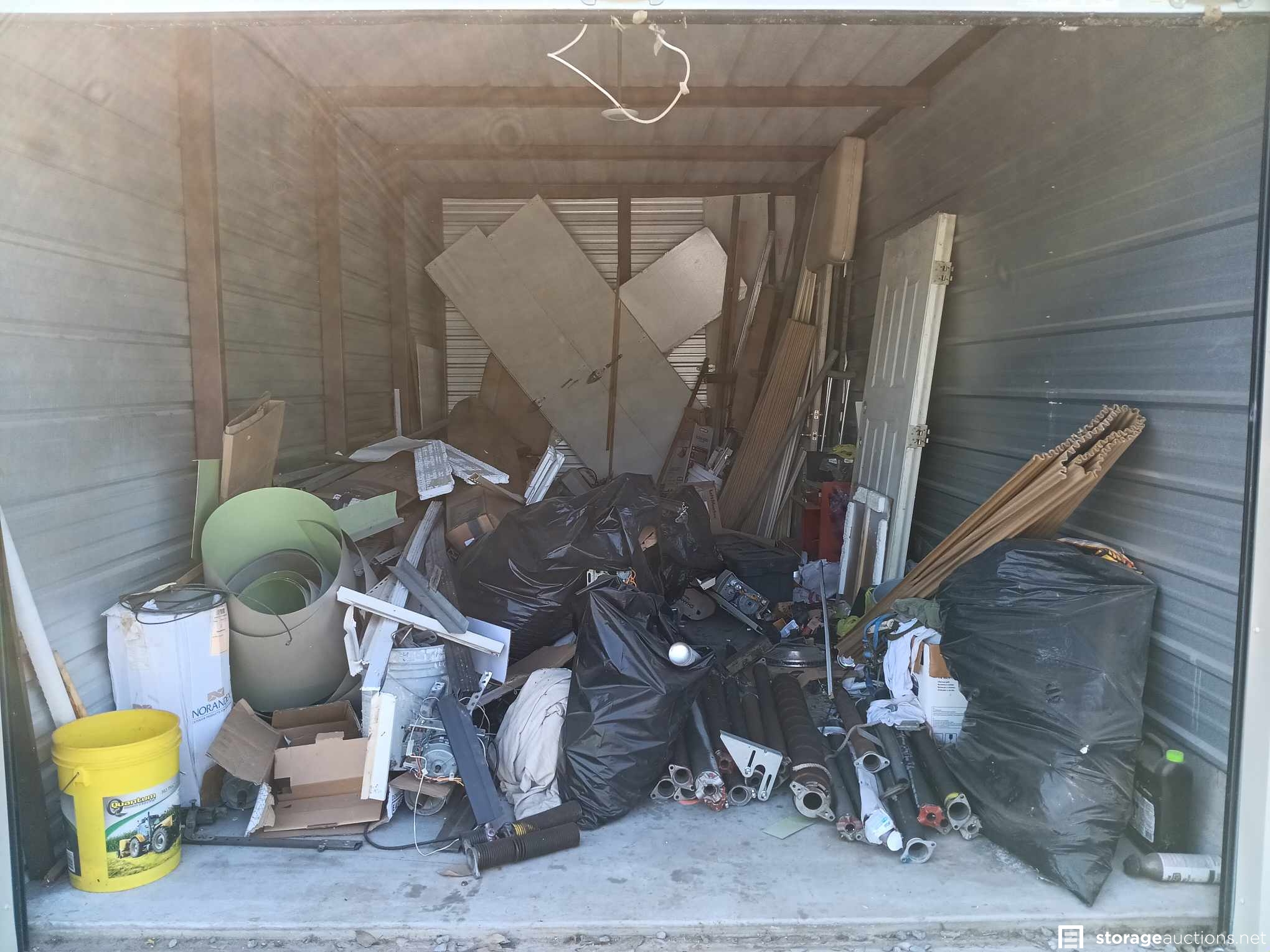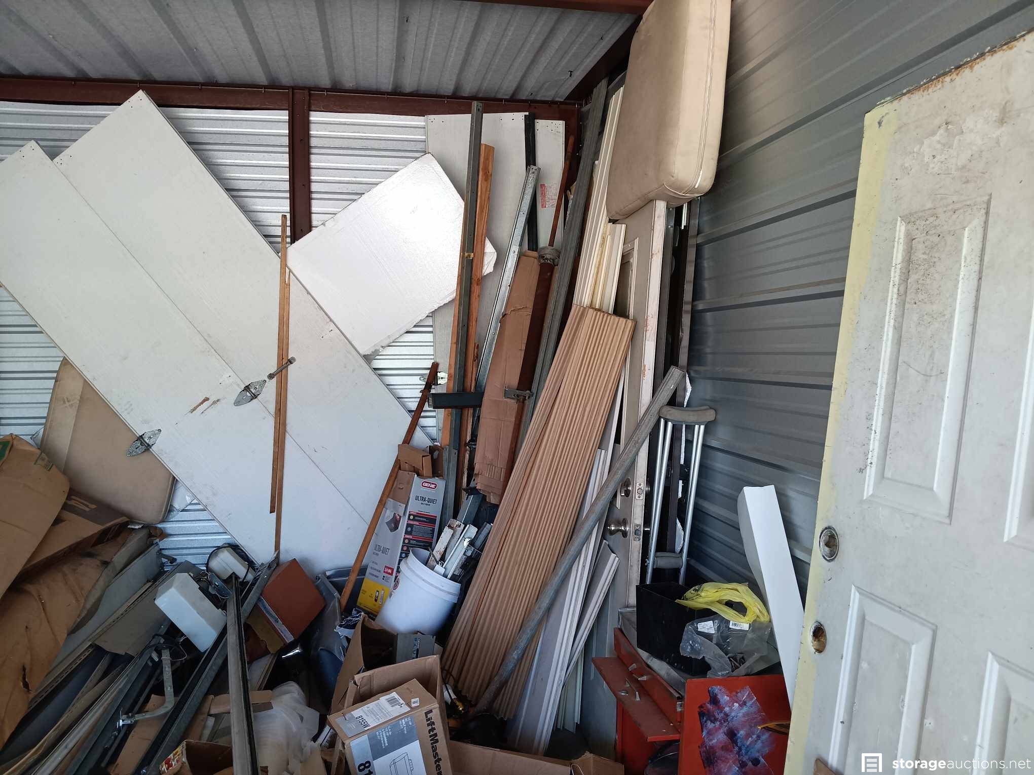 Unit appears to contain garage door pieces, doors, wood, tools, etc.