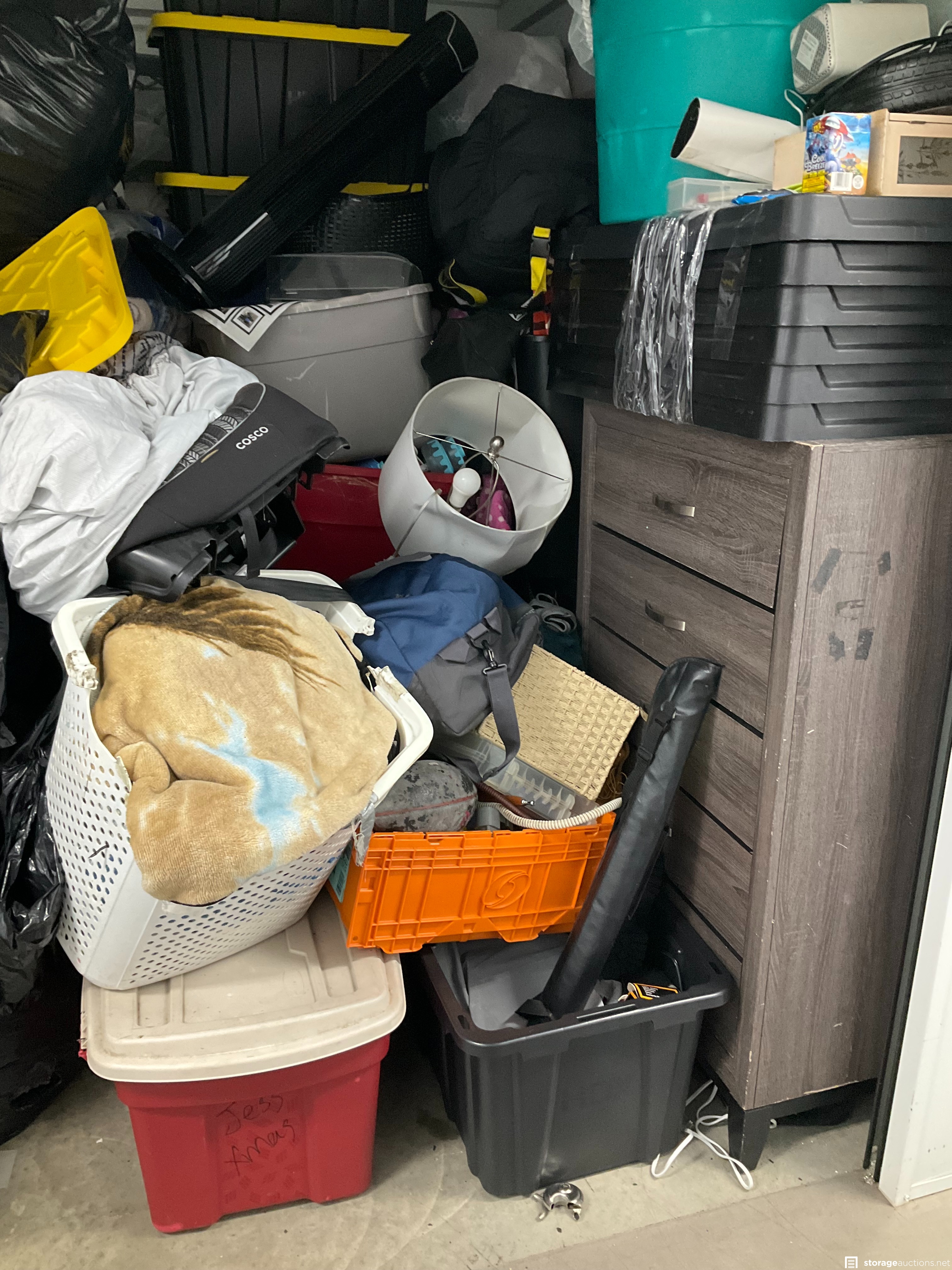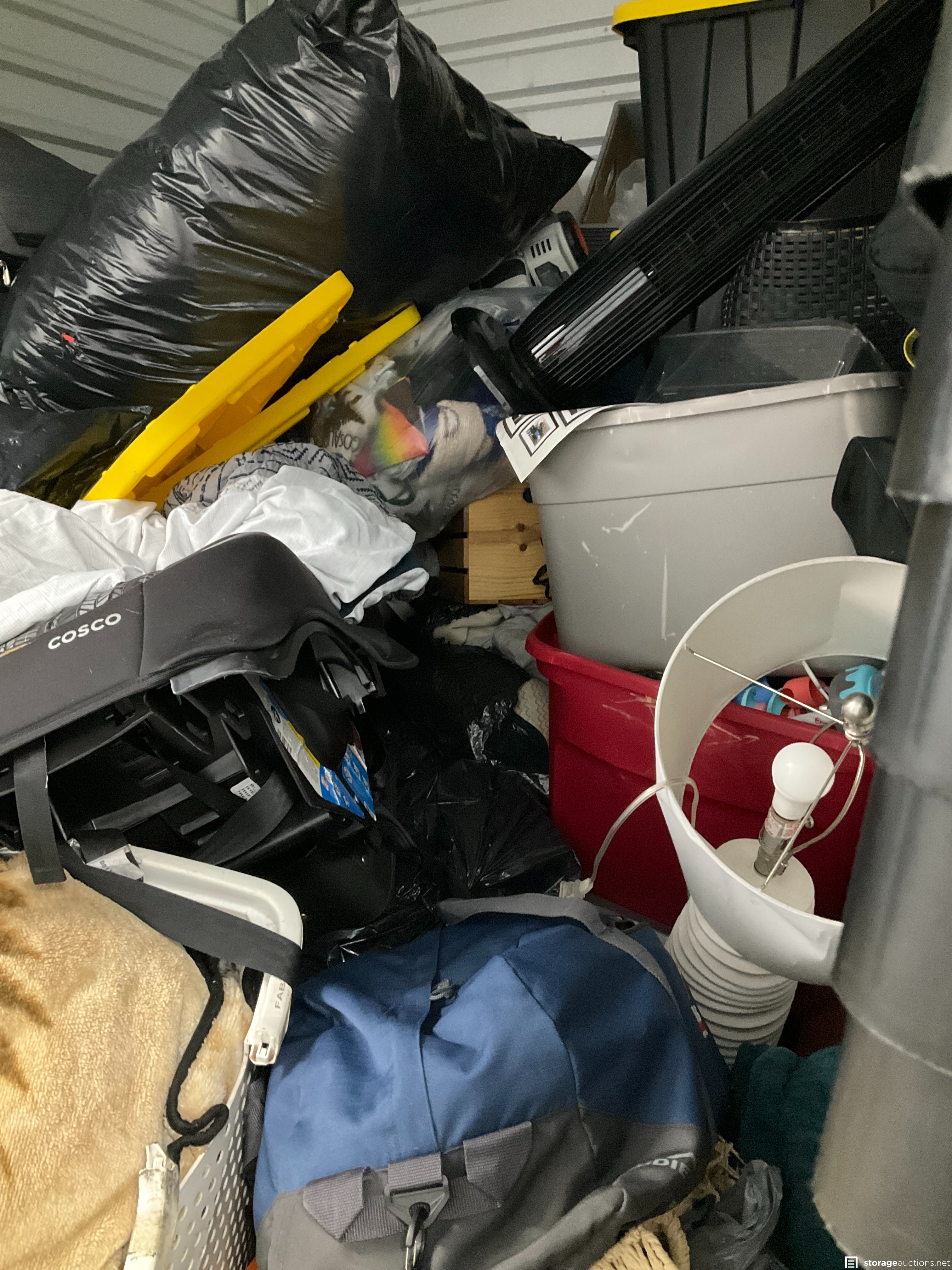 Baby Items, Bags, Basket, Lamp, Mattress, Night Stand, Child Car Seat, Clothing/ Shoes, Dresser, Fan, Totes, Trash Bags.