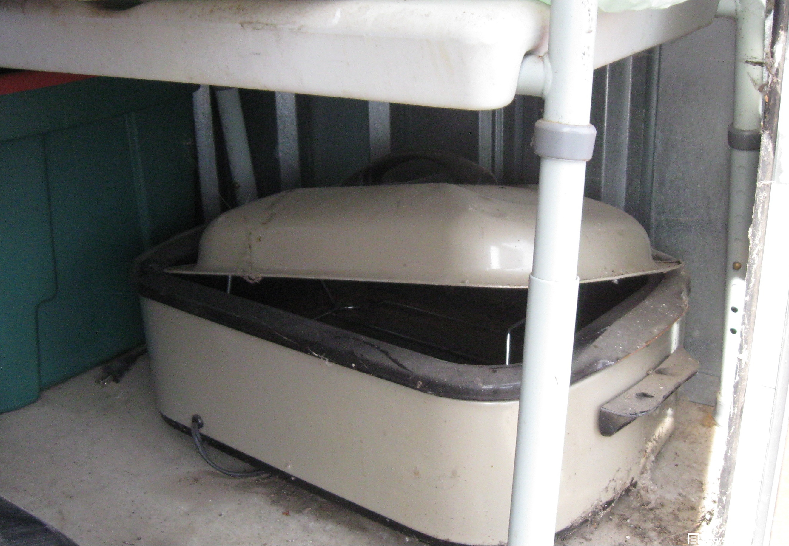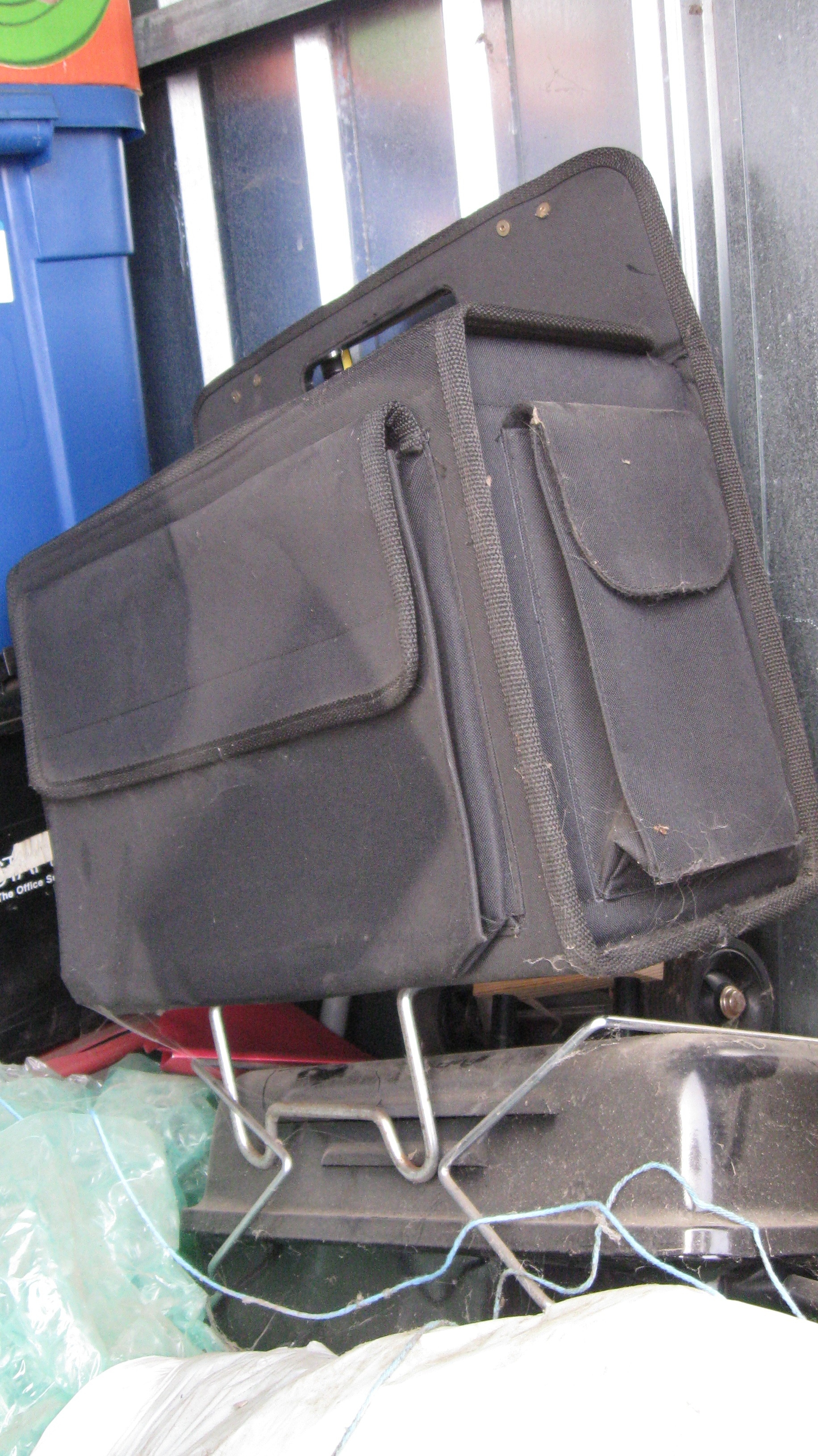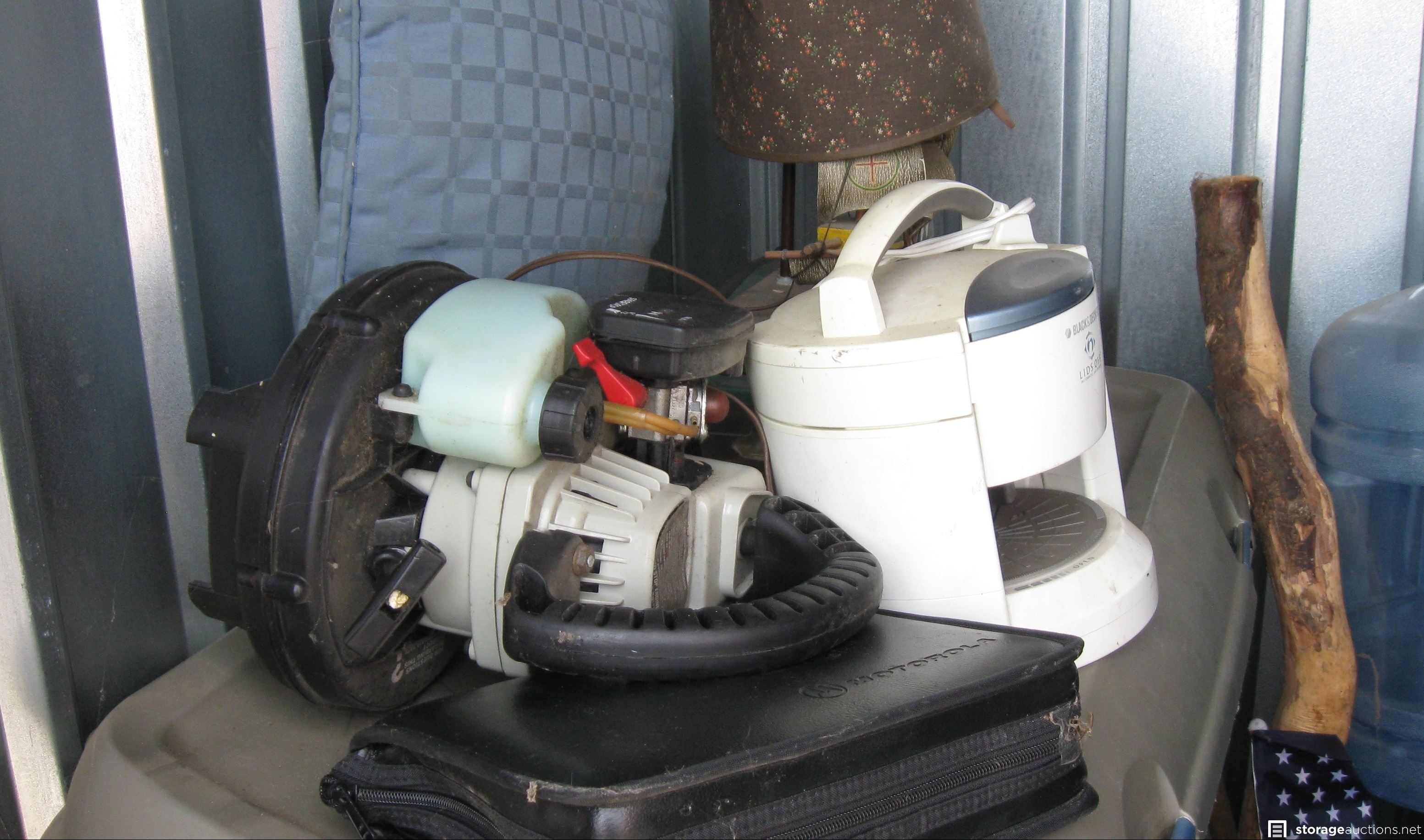 Unit appears to contain; vacuum, small propane barbecue, roaster, computer bag,, magazine holder, lamp, and a few bins, Motorola portable phone.