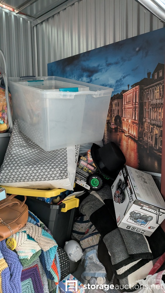 Additional Terms: 1. We reserve the right to refuse Unit appears to contain: Air fryer, shoes,clothes, blanket, and a hand basket.service to anyone at any time for any reason. Auctions are public, but do not guarantee that all the members of the public can participate. 2. TERMS: CASH ONLY on award of bid. All units must be paid for immediately no later than 5:45 pm on the day that Auction Bid is accepted. Winning bidder must appear in person with valid ID to pay and arrange for the clearance of the unit contents. 3. At discretion of Auctioneer, a minimum $200.00 refundable cleaning deposit per unit is required. CASH ONLY. The Storage Facility may charge a higher deposit on extra-large units. Do not use the facility???s dumpsters for trash. All items must be removed from the premises within 72 hours from winning bid. 4. Bidder agrees, understands and abides by all rules and regulations posted by the facility. The Bidder shall have access to the facility and the unit only during posted office hours 9am to 6pm Monday through Saturday. 5. All units are sold ???AS IS, WHERE IS.??? Storageauctions.net, Facility Owner, Manager, or Agent makes no guarantees as to the contents of units. Box buyers: beware of the possibility that all boxes may be full of trash or empty. If so, they are still yours since unit is sold ???AS IS.??? Newspaper legal ad may not agree with the goods in the unit. Do not speculate on what may be in the units. In accordance to Federal laws we are restricted from selling Alcohol, Tobacco, Firearms, Explosives and Controlled Substances. You are required to surrender these items to the Storage Co. and they will be surrendered to the proper authorities. 6. All sales are final. No refunds, exchanges, or credits of any kind will be made. 7. All personal papers (birth certificates, tax records, pictures, yearbooks, checking account information, etc.) found in storage unit should be returned to the storage company. If any of these terms are unacceptable or offensive to you, do not participate in the sale. 8. Bidder shall be responsible for anyone who is acting on behalf of bidder in any capacity and shall indemnify the storage facility, its Owner, Managers, and Agents, and Employees, etc. for any action whatsoever that may be born in any manner and hereby waive any claims against the storage facility. This waiver and responsibility shall also include any personal property damage, property damage to the self-storage facility, its representatives, employees, occupants and customers. 9. The storage company is not responsible for losses due to fire, theft, vandalism, mysterious disappearances or any other events. Bidder shall provide insurance for losses incurred before, during and after sale. 10. The storage company reserves the right to bid. 11. Storage Company???s liability for undeliverable units is limited to monies collected for purchase of unit(s) and cleaning deposit(s) only. The Storage Company will make all reasonable efforts to deliver unit or units to successful bidders. Bidder does not own these items until they are totally removed from the facility. The facility can claim items at any time without notice until they are totally removed. Any items that have been abandoned after 72 hours will be construed as abandoned property. Storage Company reserves the right to refuse to rent Storage Units to Auction Buyers. Bidder will not be refunded bid price and/or cleaning deposit. 12. The ultimate responsibility of the unit being emptied and cleaned is that of the buyer. The buyer is responsible no matter what arrangements have been made to have the unit emptied. Legal action will be taken against the buyer, for costs and/or time involved in cleaning any debris left behind. The bidder hereby agrees that the terms and conditions above as part of the Auction Terms & Conditions.