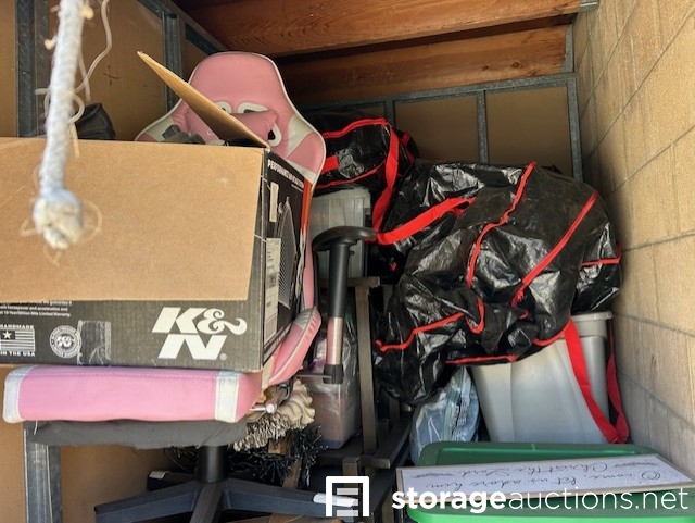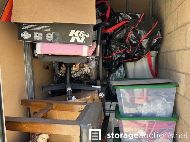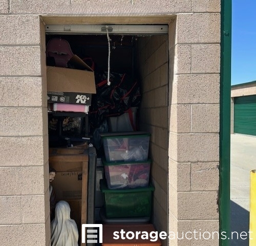 Additional Terms: VERY IMPORTANT - READ BEFORE YOU BID: -ALL ALCOHOL WILL BE REMOVED AFTER SALE -Contact the facility immediately when auction ends to arrange payment for and pick up of the unit contents - You will not be allowed to enter the storage unit or touch any items prior to bidding -StorageAuction.net has final say on all issues including whether to refuse a bid if a bidder has disrupted an auction or violated our Terms of Use PAYMENT AND TERMS: -Buyers must be at least 18 years old to bid -You must have a Paid Invoice in order to pick up unit contents -If you have an Unpaid Invoice, please update your credit card in your account and click Pay Now to generate a Paid Invoice -You must provide a valid Photo I.D. to the Site Manager -A refundable cleaning deposit may also be charged -Sales tax will be charged at the facility's office at the time of purchase unless a copy of a resale license is provided. -Immediate payment is required prior to gaining access to the unit -Sales are final and bids are for the entire unit -You must bring your own lock to secure the unit PICK UP AND DISPOSAL: -You must remove all contents and broom sweep the unit within the required clean-out time -You are not allowed to use the on-site dumpsters -If you would like to rent the unit after the auction, the manager can assist you -Smoking is prohibited on the property -Please advise the manager once you have completely emptied the unit. The manager will inspect that the unit is clean and then refund your cleaning deposit -Do not park in customer parking -No pets allowed at facility -Respect the property, managers, tenants, and other buyers at all times. Please do not show up to the facility with out making the proper arrangements -PERSONAL ITEMS FOUND WITHIN THE UNIT SHOULD BE RETURNED TO THE SITE MANAGER IMMEDIATELY. Thank you!