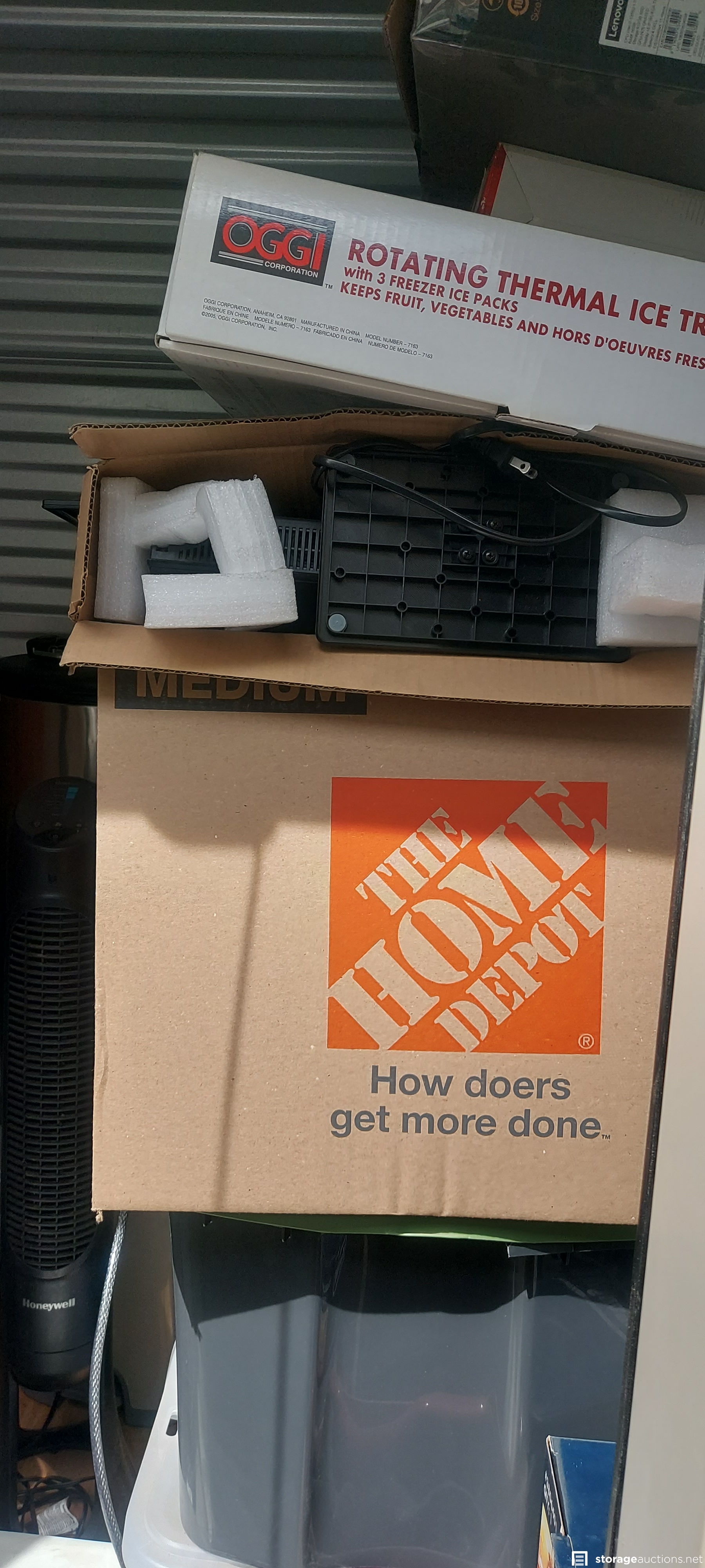 totes, printers, boxes, monitor, TV, vacuum and heater