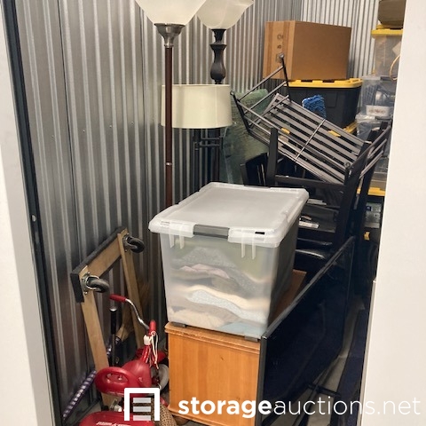 Additional Terms: VERY IMPORTANT - READ BEFORE YOU BID: -Contact the facility immediately when the auction ends to arrange payment for and pick up of the unit contents -You will not be allowed to enter the storage unit or touch any items prior to bidding -StorageAuction.net has final say on all issues including whether to refuse a bid if a bidder has disrupted an auction or violated our Terms of Use PAYMENT AND TERMS: -Buyers must be at least 18 years old to bid -You must have a Paid Invoice in order to pick up unit contents -If you have an Unpaid Invoice, please update your credit card in your account and click Pay Now to generate a Paid Invoice -You must provide a valid Photo I.D. to the Site Manager -A refundable cleaning deposit may also be charged -Sales tax will be charged at the facility's office at the time of purchase unless a copy of a resale license is provided.-Immediate payment is required prior to gaining access to the unit -Sales are final and bids are for the entire unit -You must bring your own lock to secure the unit PICK UP AND DISPOSAL: -You must remove all contents and broom sweep the unit within the required clean-out time -You are not allowed to use the on-site dumpsters -If you would like to rent the unit after the auction, the manager can assist you -Smoking is prohibited on the property -Please advise the manager once you have completely emptied the unit. The manager will inspect that the unit is clean and then refund your cleaning deposit -Do not park in customer parking -No pets allowed at the facility -Respect the property, managers, tenants, and other buyers at all times. Thank you!