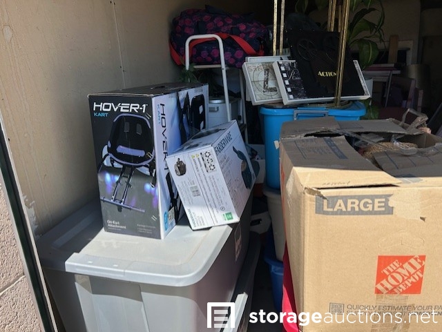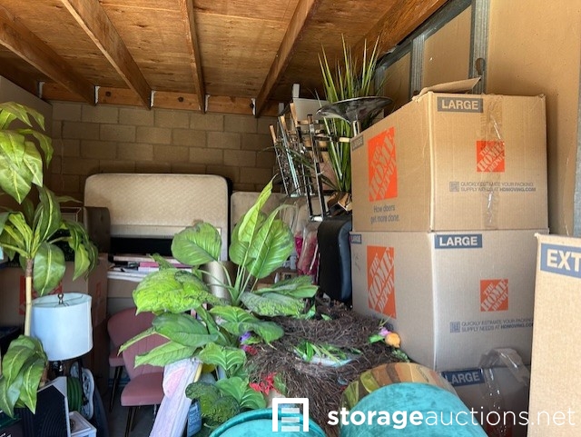 Additional Terms: VERY IMPORTANT - READ BEFORE YOU BID: -ALL ALCOHOL WILL BE REMOVED AFTER SALE -Contact the facility immediately when auction ends to arrange payment for and pick up of the unit contents - You will not be allowed to enter the storage unit or touch any items prior to bidding -StorageAuction.net has final say on all issues including whether to refuse a bid if a bidder has disrupted an auction or violated our Terms of Use PAYMENT AND TERMS: -Buyers must be at least 18 years old to bid -You must have a Paid Invoice in order to pick up unit contents -If you have an Unpaid Invoice, please update your credit card in your account and click Pay Now to generate a Paid Invoice -You must provide a valid Photo I.D. to the Site Manager -A refundable cleaning deposit may also be charged -Sales tax will be charged at the facility's office at the time of purchase unless a copy of a resale license is provided. -Immediate payment is required prior to gaining access to the unit -Sales are final and bids are for the entire unit -You must bring your own lock to secure the unit PICK UP AND DISPOSAL: -You must remove all contents and broom sweep the unit within the required clean-out time -You are not allowed to use the on-site dumpsters -If you would like to rent the unit after the auction, the manager can assist you -Smoking is prohibited on the property -Please advise the manager once you have completely emptied the unit. The manager will inspect that the unit is clean and then refund your cleaning deposit -Do not park in customer parking -No pets allowed at facility -Respect the property, managers, tenants, and other buyers at all times. Please do not show up to the facility with out making the proper arrangements -PERSONAL ITEMS FOUND WITHIN THE UNIT SHOULD BE RETURNED TO THE SITE MANAGER IMMEDIATELY. Thank you!