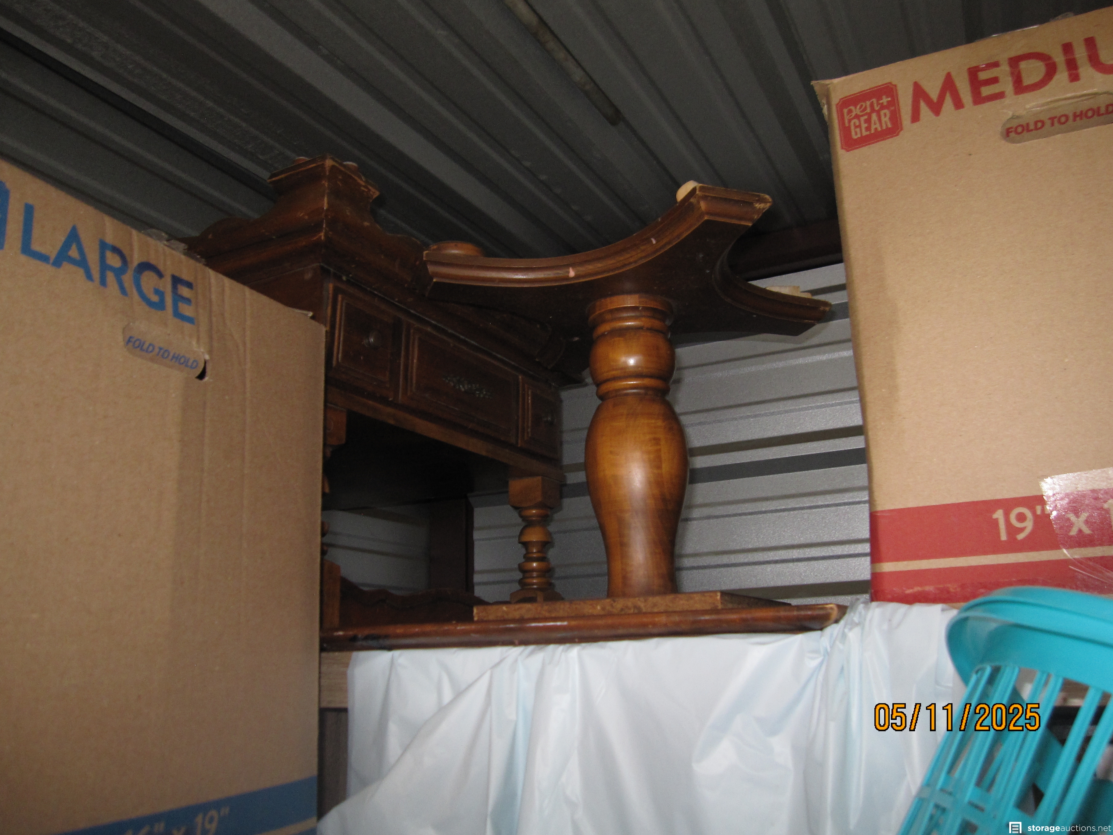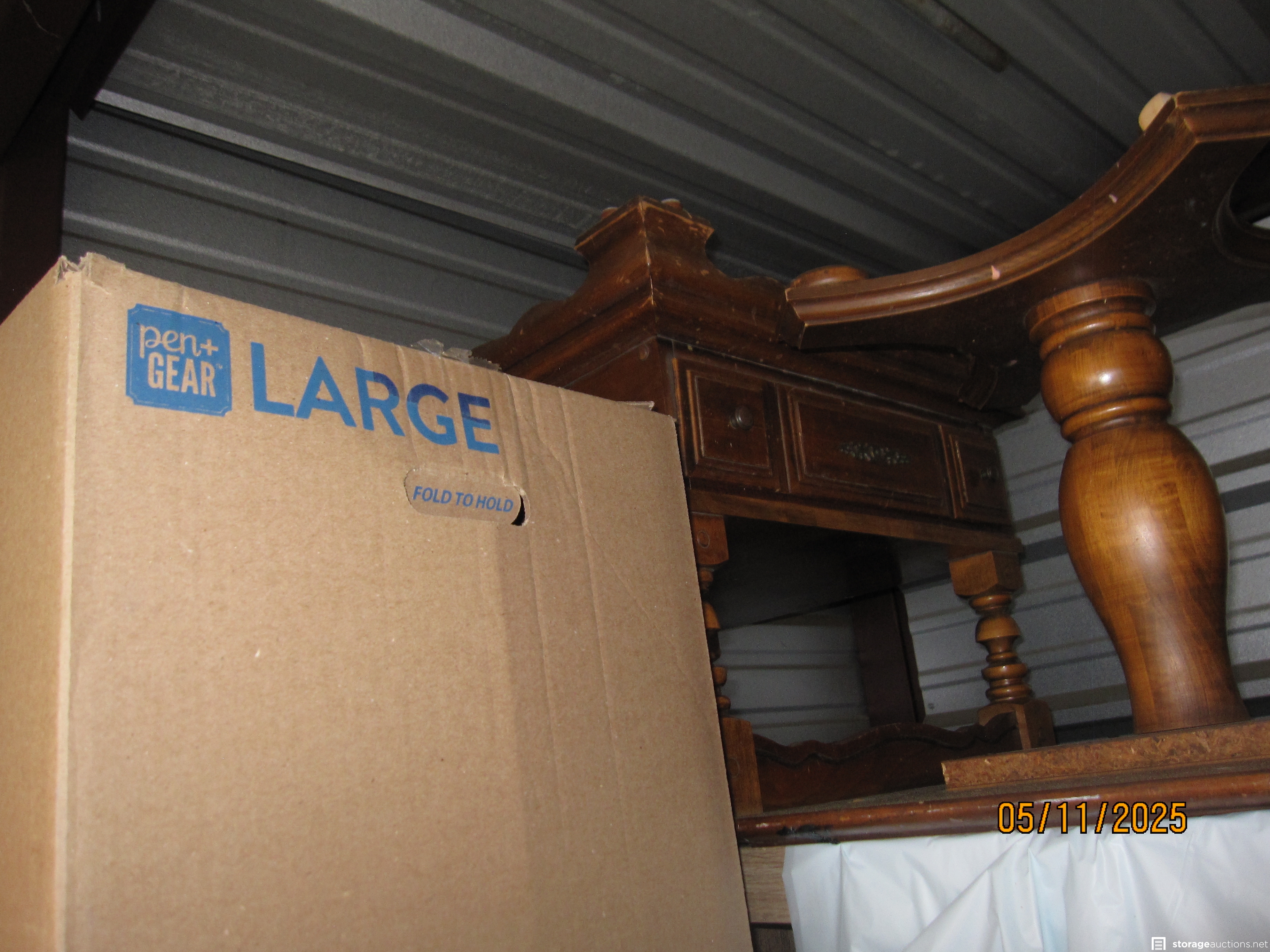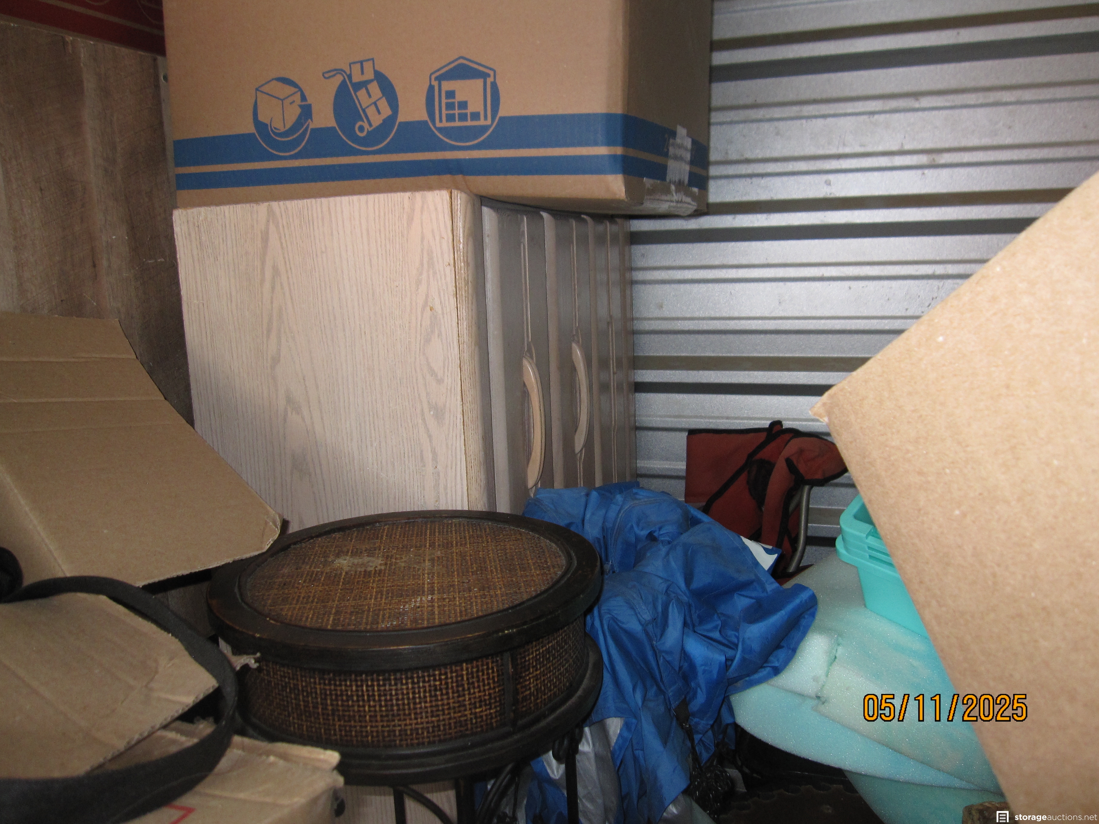 Everything in this unit is in neat boxes other than furniture. Can't tell the contents. You can see that someone cared enough to buy all consistent boxes and pack and store very neatly! Someone cared about the condition of their stuff! Unit is packed FULL of boxes of whatever.
